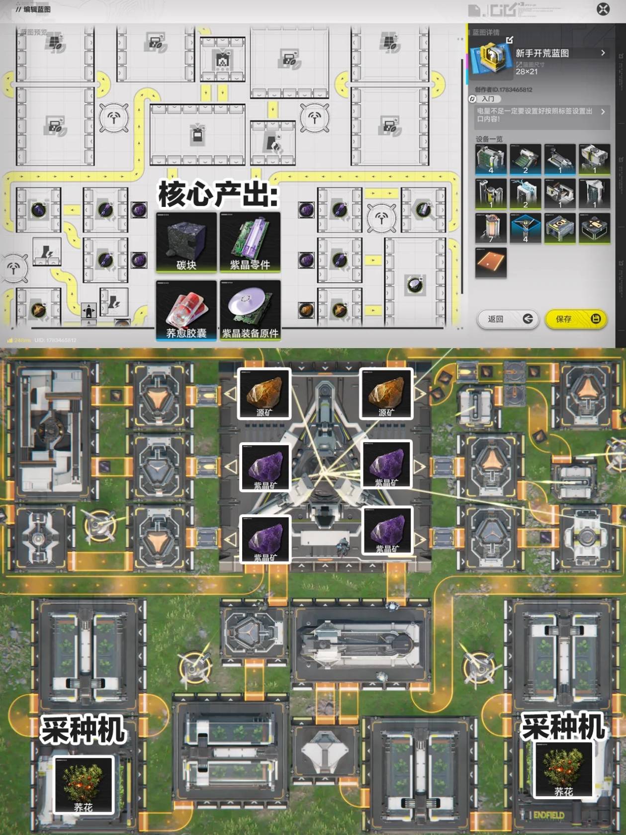正文摘要:《明日方舟:終末地》四號谷地藍圖配置 快速閱讀精華 🚀 快速導入藍圖: 進入「共享藍圖」頁面,直接貼上藍圖碼即可複製!🔧 設備不足免煩惱: 藍圖會自動轉為待建造狀態,點選「設備製造」補足即可。🔑 核心產線優化: 初期建議:EF01o5u22o5946EIieO (蕎愈膠囊等)、EF013Eo553E1OaU0579 (工業爆炸物等)。確保礦產能充足。中期升級:解鎖源石研究園後,改用高效藍圖如 EF011I9331I7uU730O7 (低/中容谷地電池)、EF01I43EEI4029E5o08 (藍鐵裝備原件) 等。 💡 小撇步: 放置藍圖前,務必確認取貨口設定正確,並檢查礦機產能是否能滿足供電與生產需求。若產能不足,請增設「電驅礦機」! 本文章目錄.article-toc { border: 1px solid #ddd; padding: 15px; background: #f9f9f9; border-radius: 6px; margin: 20px 0; width: 95%;}.toc-title { /* --- 以下是合併進來的 H2 樣式 --- */ font-size: 1.25em; /* 125% */ border-left: 5px solid #2A98DA; border-radius: 2px; padding: 5px 0px 5px 10px; font-weight: bold; margin: 0 0 15px 0; /* 調整了 margin,只留下方 15px */ color: #333; line-height: 1.5; background-color: #f8f8f8; /* --- 樣式合併結束 --- */}.toc-list { list-style: none; padding-left: 0;}.toc-list li { margin: 8px 0;}.toc-list a { color: #2A98DA; text-decoration: none;}.toc-list a:hover { text-decoration: underline;}.back-to-top { display: block; margin-top: 10px; font-size: 0.9em; color: #666;} 前言:高效產線是關鍵document.currentScript.previousElementSibling.href = location.href.split('#')[0] + '#intro'; 藍圖系統:快速複製與部署document.currentScript.previousElementSibling.href = location.href.split('#')[0] + '#blueprint_basic'; 初期資源加速:谷地通道與樞紐區藍圖document.currentScript.previousElementSibling.href = location.href.split('#')[0] + '#early_game_blueprints'; 中期效率提升:源石研究園解鎖後藍圖document.currentScript.previousElementSibling.href = location.href.split('#')[0] + '#mid_game_blueprints'; 四號谷地藍圖配置_常見問題Q&Adocument.currentScript.previousElementSibling.href = location.href.split('#')[0] + '#faq'; 前言:高效產線是關鍵,告別資源短缺! 各位《明日方舟:終末地》的指揮官們,是否正為四號谷地(Valley 4)前中期的產線搭建而煩惱?資源老是不夠用、產線效率遲遲無法提升?別擔心!本篇攻略將為您整理一系列經過實測驗證的藍圖配置,幫助您快速建立高效的生產線,告別資源短缺的窘境。跟著我們的指引,輕鬆滿足前中期所有資源需求! 藍圖系統:快速複製與部署,告別手動規劃! 《明日方舟:終末地》的藍圖系統是您快速部署基建的利器。一旦按照遊戲流程解鎖藍圖功能後,您就可以在「共享藍圖」頁面中,直接貼上對應的藍圖碼,輕鬆複製我們為您準備的生產線配置! 步驟一:進入共享藍圖 在基地介面找到「共享藍圖」選項並點擊進入。 步驟二:導入藍圖碼 在導入藍圖頁面中,將您取得的藍圖碼直接貼上,系統便會自動辨識並顯示該藍圖配置。 步驟三:放置與建造 即使您當前設備不足,也可以先將藍圖放置出來。它會以「待建造組」的形式顯示在基地上。與其互動後,點擊「設備製造」,製造並提交所需設備即可逐步完成建設。 建置藍圖前的重要檢查事項 為確保您的產線能順利運作,我們建議在放置藍圖前,務必進行以下兩項檢查: 確認取貨口物品: 請務必確保所有產線的取貨口已調整為正確的目標物品。這是避免產線卡住的關鍵! 檢查採礦產能: 生產線的運作仰賴穩定的礦物供應。請檢查您當前的採礦產能是否足以供電與滿足製作需求。 解決方案: 若發現源礦(Source Ore)和紫晶礦(Violet Crystal Ore)等關鍵礦物的產能不足,建議立即在聚集地增設電驅礦機(Electric Mining Machine),以確保原料供應無虞。 初期資源加速:谷地通道與樞紐區藍圖,助您快速起步! 對於剛解鎖谷地通道(Valley Pass)與樞紐區(Hub Zone)的指揮官們,我們推薦以下兩組藍圖,它們能幫助您在遊戲初期快速獲取關鍵資源。請記得,務必及時將運輸線拉到礦區並提升礦物產能,才能發揮這些藍圖的最大效益! 藍圖碼: EF01o5u22o5946EIieO 主要產出: 蕎愈膠囊、紫晶零件、紫晶裝備原件、碳塊、源礦 《明日方舟:終末地》四號谷地藍圖配置重點回顧 📦 善用藍圖系統: 透過複製藍圖碼,能大幅減少手動規劃產線的時間與精力,讓您更專注於其他遊戲內容。 ⚡ 產能是基礎: 無論是初期還是中期,穩定的礦物產能都是所有生產線的基石。務必確保電驅礦機的數量充足,並及時拉線連接礦區。 🔄 彈性調整: 隨著遊戲進度推進,特別是解鎖新區域和新礦物後,請記得適時替換舊有藍圖,升級為更高效的配置,以滿足不斷增長的資源需求。 以下廣告滑動後還有帖子內容var custom_call_MIR = function (params) {if ( params === null || params.hasAd === false ) {var divRowSide;for (let index = 0; index < ONEADs.length; index++) {if (ONEADs[index].pub.player_mode === "mobile-inread") {divRowSide = ONEADs[index].pub.slotobj;}}var ins = document.createElement('ins');ins.className = 'clickforceads';ins.setAttribute('style', 'display:inline-block;');ins.setAttribute('data-ad-zone', '18264');divRowSide.appendChild(ins);var js = document.createElement('script');js.async = true;js.type = 'text/javascript';js.setAttribute('src', '//cdn.holmesmind.com/js/init.js');js.onload = function(){console.log('[ONEAD MIR] ClickForce Loaded');};divRowSide.appendChild(js);}};var _ONEAD = {};_ONEAD.pub = {};_ONEAD.pub.slotobj = document.getElementById("oneadMIRDFPTag");_ONEAD.pub.slots = ["div-onead-ad"];_ONEAD.pub.uid = "1000509";_ONEAD.pub.external_url = "https://onead.onevision.com.tw/";_O