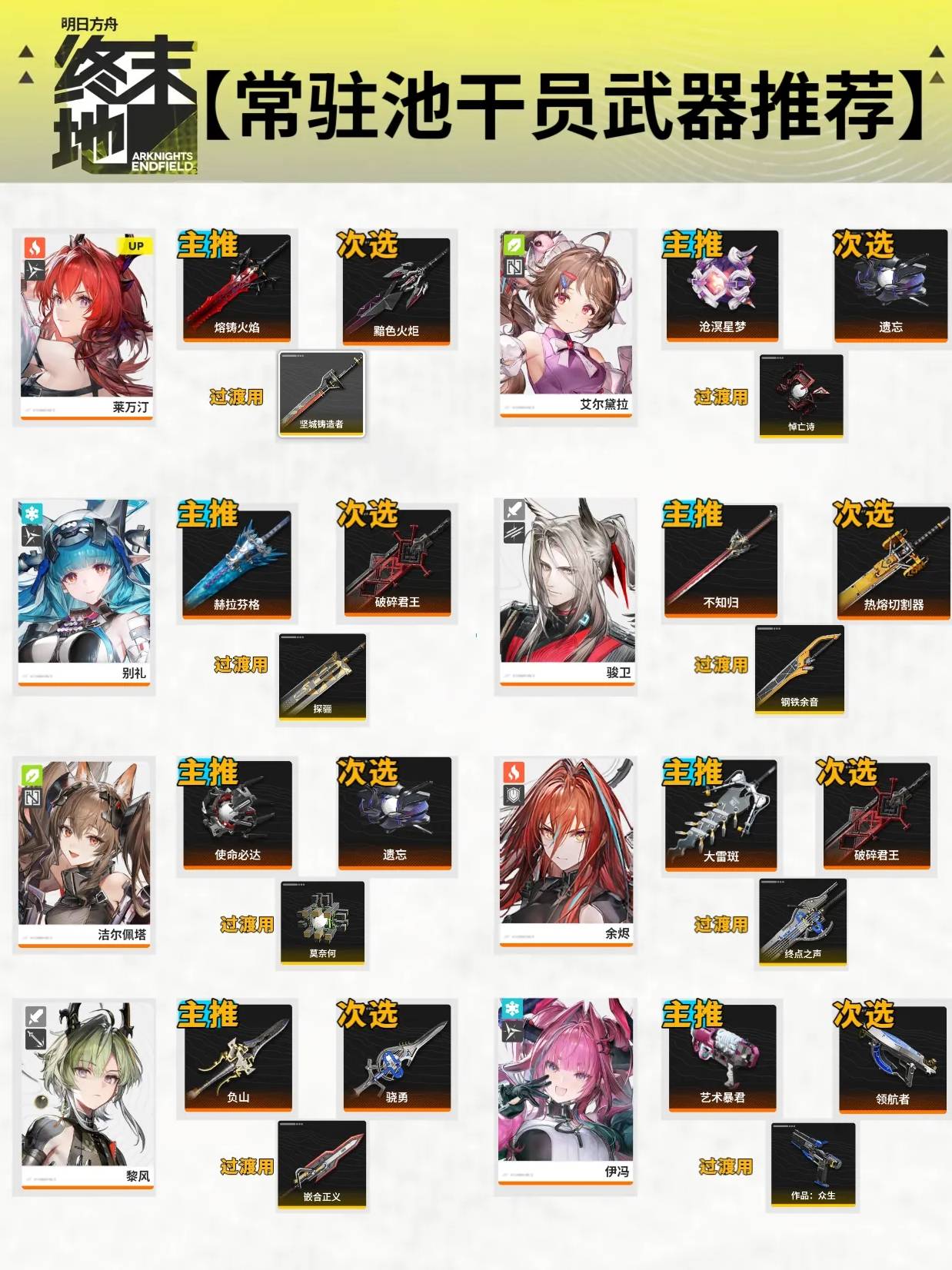 正文摘要:《明日方舟終末地》6星常駐幹員武器搭配 快速閱讀精華 🚀 核心原則: 每個幹員都有獨特定位,武器選擇必須與其核心技能和戰術角色高度契合。優先考慮能最大化幹員優勢或彌補短板的武器屬性。 🔑 輸出型幹員: 物理輸出:主選高攻擊力、暴擊率、暴擊傷害的武器。術士輸出:主選技能傷害加成、能量回復效率、法術穿透的武器。 🛡️ 生存與輔助型幹員: 重裝幹員:主選生命值、防禦力、傷害減免的武器。輔助治療:主選治療量加成、能量回復、技能冷卻縮減的武器。 💡 進階策略: 不必盲目追求最高稀有度,屬性契合度遠比星級重要。根據不同關卡和敵人特性,靈活調整武器配置,達到資源效益最大化。 本文章目錄.article-toc { border: 1px solid #ddd; padding: 15px; background: #f9f9f9; border-radius: 6px; margin: 20px 0; width: 95%;}.toc-title { /* --- 以下是合併進來的 H2 樣式 --- */ font-size: 1.25em; /* 125% */ border-left: 5px solid #2A98DA; border-radius: 2px; padding: 5px 0px 5px 10px; font-weight: bold; margin: 0 0 15px 0; /* 調整了 margin,只留下方 15px */ color: #333; line-height: 1.5; background-color: #f8f8f8; /* --- 樣式合併結束 --- */}.toc-list { list-style: none; padding-left: 0;}.toc-list li { margin: 8px 0;}.toc-list a { color: #2A98DA; text-decoration: none;}.toc-list a:hover { text-decoration: underline;}.back-to-top { display: block; margin-top: 10px; font-size: 0.9em; color: #666;} 前言:為何武器選擇如此重要?document.currentScript.previousElementSibling.href = location.href.split('#')[0] + '#intro'; 武器選擇核心原則:打造最強幹員document.currentScript.previousElementSibling.href = location.href.split('#')[0] + '#principles'; 物理輸出型幹員:追求極致傷害document.currentScript.previousElementSibling.href = location.href.split('#')[0] + '#dps_physical'; 術士輸出型幹員:掌控元素洪流document.currentScript.previousElementSibling.href = location.href.split('#')[0] + '#dps_caster'; 重裝與生存型幹員:屹立不倒的壁壘document.currentScript.previousElementSibling.href = location.href.split('#')[0] + '#tank_survival'; 輔助與治療型幹員:團隊的堅實後盾document.currentScript.previousElementSibling.href = location.href.split('#')[0] + '#support_healer'; 總結與進階建議:武器搭配的藝術document.currentScript.previousElementSibling.href = location.href.split('#')[0] + '#conclusion'; 《明日方舟終末地》6星常駐幹員武器推薦_常見問題Q&Adocument.currentScript.previousElementSibling.href = location.href.split('#')[0] + '#faq'; 前言:為何武器選擇如此重要? 在《明日方舟終末地》的廣闊世界中,每一位六星常駐幹員都肩負著重要的戰術任務。然而,我們發現許多玩家在抽到心儀的六星幹員後,卻常對如何為他們搭配最佳武器感到困惑。不當的武器選擇不僅會限制幹員的潛力,更可能讓戰鬥變得事倍功半。本攻略團隊將深入分析,為您提供最專業、最實用的武器選擇建議,確保您的幹員能夠發揮最大潛力,輕鬆應對各種挑戰! 👉 GM後台版 遊戲 推薦 ⬇️⬇️⬇️ 快速玩各種二次元動漫手遊app 武器選擇核心原則:打造最強幹員 為六星常駐幹員選擇畢業武器,並非簡單地看星級高低,而是需要一套綜合性的策略。我們實測後歸納出以下幾個核心原則: 瞭解幹員定位與技能組: 首先,我們建議您詳細檢視每位六星幹員的職責與技能組。他們是負責單體爆發、羣體輸出、控場、治療還是承傷?這將直接決定武器的選擇方向。例如,一個主要依賴技能傷害的幹員,可能更需要技能傷害加成或能量回復的武器;而一個普攻型輸出,則會更青睞提升攻擊力與暴擊率的武器。 屬性契合度優先於稀有度: 武器提供的基礎屬性(攻擊力、生命值、防禦力等)與額外詞條(暴擊率、暴擊傷害、技能傷害加成、能量回復效率)必須與幹員的核心屬性及輸出/生存機制高度契合。我們實測後發現,即使是低星武器,只要詞條完美契合,有時表現甚至優於高星但不搭的武器。盲目追求稀有度,可能會導致資源浪費。 戰鬥環境考量與靈活應變: 不同的關卡或敵人特性,可能需要調整武器配置。某些情況下,您可能需要為輸出型幹員準備一把帶有生存屬性的武器,以應對高壓環境;而在需要極致爆發的場合,則可能需要堆疊純粹的傷害詞條。本攻略建議指揮官們,應根據實際戰場需求,靈活調整武器搭配。 資源效益最大化: 在遊戲初期或資源有限時,我們建議優先培養通用性強或能顯著提升核心幹員強度的武器。不必一步到位追求畢業武器,逐步優化、循序漸進纔是長遠之計。將有限的資源投入到能帶來最大效益的武器上,是我們本攻略強調的重點。 物理輸出型幹員:追求極致傷害 對於依靠物理攻擊造成主要傷害的六星常駐幹員,例如突擊手或部分重裝攻擊手,我們的建議是優先選擇能大幅提升攻擊力、暴擊率和暴擊傷害的武器。這些武器能讓他們在短時間內爆發出驚人的單體或羣體傷害。 核心屬性: 攻擊力%、暴擊率、暴擊傷害、普攻傷害加成。 推薦武器類型(範例): 重型步槍、雙手劍、強力手槍。 搭配思路: 最大化傷害防禦攻擊力與觸發暴擊的頻率。部分幹員若有特殊觸發效果,可考慮附帶特定條件觸發增益的武器。 術士輸出型幹員:掌控元素洪流 術士型幹員主要依賴技能造成元素或法術傷害。因此,為他們選擇武器時,我們應將重點放在提升技能傷害、能量回復效率以及法術穿透上。快速累積能量並釋放強大技能,是術士型幹員的核心戰術。 核心屬性: 技能傷害加