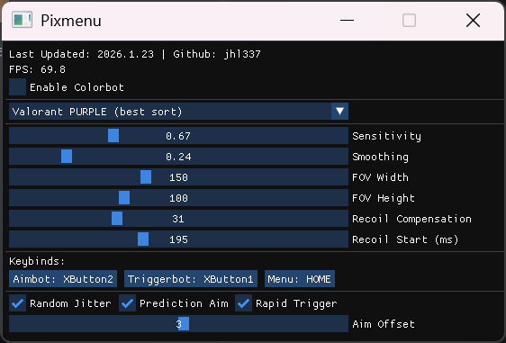 正文摘要:replyreload += ',' + 2429841; 《特戰英豪》Pixmenu 外部輔助工具 快速閱讀精華 🚀 核心亮點: 🛡️ 極致安全機制: 採用不讀寫記憶體(No memory reading)的外部技術,大幅降低封號風險。🎮 支援多款熱門 FPS: 特戰英豪 (Valorant)鬥陣特攻 2 (Overwatch 2)三角洲行動 (Delta Force) ⚙️ 功能強大且可調: 內建選單,支援自動瞄準、板機連點、後座力控制與預判瞄準。 本文章目錄.article-toc { border: 1px solid #ddd; padding: 15px; background: #f9f9f9; border-radius: 6px; margin: 20px 0; width: 95%;}.toc-title { /* --- 以下是合併進來的 H2 樣式 --- */ font-size: 1.25em; /* 125% */ border-left: 5px solid #2A98DA; border-radius: 2px; padding: 5px 0px 5px 10px; font-weight: bold; margin: 0 0 15px 0; /* 調整了 margin,只留下方 15px */ color: #333; line-height: 1.5; background-color: #f8f8f8; /* --- 樣式合併結束 --- */}.toc-list { list-style: none; padding-left: 0;}.toc-list li { margin: 8px 0;}.toc-list a { color: #2A98DA; text-decoration: none;}.toc-list a:hover { text-decoration: underline;}.back-to-top { display: block; margin-top: 10px; font-size: 0.9em; color: #666;} 前言:為什麼選擇 Pixmenu?document.currentScript.previousElementSibling.href = location.href.split('#')[0] + '#intro'; Pixmenu 核心功能介紹document.currentScript.previousElementSibling.href = location.href.split('#')[0] + '#features'; Pixmenu 安裝與設定教學document.currentScript.previousElementSibling.href = location.href.split('#')[0] + '#setup_guide'; 工具檔案下載點 🔽document.currentScript.previousElementSibling.href = location.href.split('#')[0] + '#download_point'; 常見問題 Q&Adocument.currentScript.previousElementSibling.href = location.href.split('#')[0] + '#faq'; 前言:為什麼選擇 Pixmenu? 大家在打《特戰英豪》或《鬥陣特攻 2》這類 FPS 遊戲時,是不是常覺得槍法不夠硬,或者反應總比對手慢半拍?想要找個輔助程式來練練手感,卻又整天提心吊膽,怕被反作弊系統(Vanguard)偵測到而永久封號? 別擔心,你的煩惱我們都懂。今天要介紹的這款 **Pixmenu**,就是為了解決這個核心痛點而生的。與傳統的高風險「記憶體注入式」外掛不同,Pixmenu 是一款基於 **C++ 開發的開源顏色瞄準機器人 (Colorbot)**。它最大的特色就是 **「完全不讀取、也不寫入遊戲記憶體」**,也不需要安裝任何驅動程式。 簡單來說,它就像是一雙幫你盯著螢幕的「AI 眼睛」,透過辨識敵人身上的顏色(例如紅色輪廓),模擬滑鼠移動來幫助你瞄準。因為它是在遊戲外部運作,理論上比傳統外掛安全許多,是目前許多追求「穩健上分」玩家的首選工具。接下來,我們會手把手教大家怎麼設定這個神器,讓你的準度瞬間提升! ⚠️ 重要提醒: 雖然 Pixmenu 採用外部識別技術,相對安全,但任何輔助工具都存在被遊戲官方針對的風險。建議大家先在小帳號進行測試與參數調整,確認穩定後再決定如何使用。 Pixmenu 核心功能介紹 Pixmenu 雖然體積輕巧,但功能卻非常齊全,基本上涵蓋了 FPS 玩家最需要的幾項核心能力。我們實際測試後,整理了以下幾個重點功能: **自動瞄準輔助 (Aim Assist)**:這是最核心的功能。程式會自動偵測螢幕範圍內的敵人顏色,並將準心平滑地移動到目標身上。你可以調整平滑度 (Smooth),讓瞄準看起來更像人類手動操作,避免被隊友或對手看出破綻。**自動板機 (Triggerbot)**:反應慢半拍的救星!當你的準心接觸到敵人顏色的瞬間,程式會自動幫你按下開火鍵,對於拿「間諜 (Operator)」這類狙擊槍的玩家來說,這簡直是神技。**急速連射 (Rapid-fire)**:透過軟體模擬極高頻率的點擊,讓半自動武器也能像全自動一樣輸出。**後座力控制 (Recoil Control)**:幫你自動壓槍,讓子彈散佈更集中。**預判瞄準 (Prediction Aim)**:這是比較進階的功能,AI 會嘗試計算敵人的移動軌跡,提前將準心移動到敵人可能出現的位置。 👉 GM後台版 遊戲 推薦 ⬇️⬇️⬇️ 快速玩各種二次元動漫手遊app Pixmenu 安裝與設定教學 很多新手看到 C++ 或開源工具就會卻步,覺得很難設定。其實 Pixmenu 已經內建了圖形化選單 (Config Menu),操作起來非常直覺。跟著我們的步驟做,三分鐘就能搞定! 第一步:事前準備 確保你的電腦已經安裝了必要的運行庫(通常是 Visual C++ Redistributable,如果無法開啟請檢查這點)。將遊戲設定改為 **「無邊框視窗 (Borderless Window)」** 或 **「視窗模式」**。 【小知識】 為什麼要改視窗模式?因為這類顏色瞄準工具是透過「截取螢幕畫面」來分析顏色的。如果是「全螢幕獨佔」模式,程式可能無法正確抓取畫面,導致瞄準失效。確認遊戲中敵人的輪廓顏色設定。Pixmenu 需要依據你設定的顏色(例如紫色或黃色)來鎖定敵人。 第二步:啟動與調整 下載並解壓縮我們提供的檔案。以「系統管理員身分」執行 Pixmenu 主程式。進入遊戲訓練場,按下鍵盤上的對應熱鍵(通常是 Insert 或 Delete,視版本而定)呼叫出設定選單。**調整靈敏度與顏色閾值**:這是最關鍵的一步。你需要根據你的滑鼠 DPI 和遊戲內靈敏度,微調輔助的移動速度。 💡 專家建議: 不要一開始就開到最強。建議將「平滑度 (Smooth)」調高一點,讓準心移動慢一點、自然一點,這樣既不容易被系統判定異常,你的肌肉記憶也能慢慢適應。 工具檔案下載點 🔽 我們為大家整理了最新的 Pixmenu 執行檔,不需要繁瑣的編譯過程,下載後依照上述教學即可使用。 所有站內附件皆會附上安全掃描報告請會員查看純淨度百分比後判斷使用(adsbygoogle = window.adsbygoogle || []).push({});相