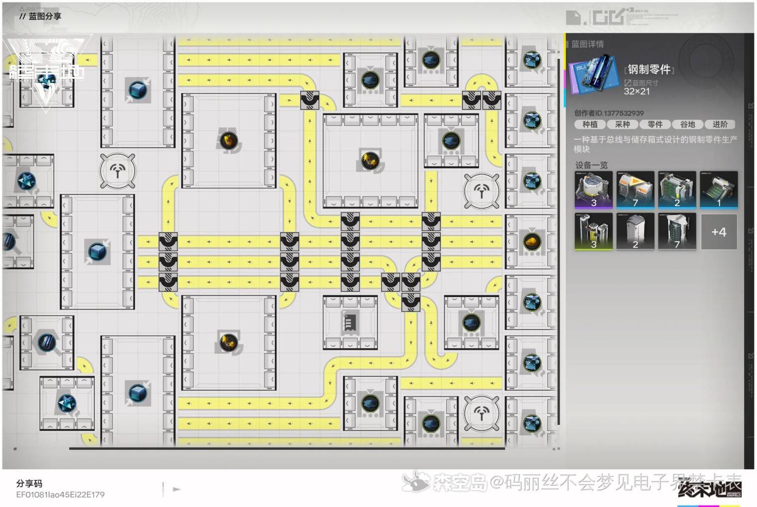 正文摘要:《明日方舟:終末地》鋼製零件藍圖攻略 快速閱讀精華 🚀 核心目標: 在武陵地區高效生產「鋼製零件」。🔑 推薦藍圖: 32x21 三線滿速鋼製零件生產模組。💡 藍圖分享碼: EF01081Iao45Ei22E179✅ 設計優點: 砂葉自循環,不依賴外部輸入。三倍管線產出,滿足設備製作需求。 ⚠️ 注意事項: 額外佔用一條 3 格總線。 本文章目錄.article-toc { border: 1px solid #ddd; padding: 15px; background: #f9f9f9; border-radius: 6px; margin: 20px 0; width: 95%;}.toc-title { /* --- 以下是合併進來的 H2 樣式 --- */ font-size: 1.25em; /* 125% */ border-left: 5px solid #2A98DA; border-radius: 2px; padding: 5px 0px 5px 10px; font-weight: bold; margin: 0 0 15px 0; /* 調整了 margin,只留下方 15px */ color: #333; line-height: 1.5; background-color: #f8f8f8; /* --- 樣式合併結束 --- */}.toc-list { list-style: none; padding-left: 0;}.toc-list li { margin: 8px 0;}.toc-list a { color: #2A98DA; text-decoration: none;}.toc-list a:hover { text-decoration: underline;}.back-to-top { display: block; margin-top: 10px; font-size: 0.9em; color: #666;} 前言:高效鋼製零件的重要性document.currentScript.previousElementSibling.href = location.href.split('#')[0] + '#intro'; 32x21 三線滿速鋼製零件藍圖心得分享document.currentScript.previousElementSibling.href = location.href.split('#')[0] + '#blueprint_detail'; - 藍圖優缺點分析document.currentScript.previousElementSibling.href = location.href.split('#')[0] + '#pros_cons'; 常見問題Q&Adocument.currentScript.previousElementSibling.href = location.href.split('#')[0] + '#faq'; 前言:高效鋼製零件的重要性 在《明日方舟:終末地》的廣袤世界中,鋼製零件是我們在武陵地區進行基礎建設與物品製作不可或缺的重要材料。無論是升級設施、打造裝備,還是推進主線任務,高效穩定的鋼製零件供應都是確保基地順暢運作的關鍵。然而,許多玩家都曾為如何建立一個既快速又省心的鋼製零件生產線而苦惱。本攻略將為您揭示一個經過我們實測驗證的「滿速鋼製零件藍圖」,幫助您一勞永逸地解決生產效率問題! 32x21 三線滿速鋼製零件藍圖心得分享 我們發現一套高效的 32x21 三線滿速鋼製零件生產模組,能夠完美解決零件供應的燃眉之急。這套藍圖採用了巧妙的總線與儲存箱式設計,旨在提供最大限度的產能。 您可以使用以下藍圖分享碼直接匯入:EF01081Iao45Ei22E179 這個模組的設計核心在於其高度自動化與資源的內部循環。透過精密的佈局,它確保了從原材料到最終成品的順暢流動,極大地提升了生產效率,保證您的基地能夠源源不絕地獲得所需的鋼製零件。 👉 GM後台版 遊戲 推薦 ⬇️⬇️⬇️ 快速玩各種二次元動漫手遊app 藍圖優缺點分析 經過我們的分析與實測,這套藍圖展現出以下顯著的優點與少許需要注意的缺點: 💪 優點: 砂葉自循環: 生產過程中所需的砂葉能夠實現內部循環供應,完全不依賴外部輸入,大幅降低了資源管理的複雜性,讓您無需擔心原材料供應中斷。 三倍管線產出: 模組的設計確保了極高的產出效率,其三倍於標準管線的生產速度,足以滿足後期設備製作的大量需求,讓您的基地發展如虎添翼。 ⚠️ 缺點: 額外佔用總線: 為了實現高效率與自循環,此藍圖會額外佔用一條 3 格的總線空間。在初期規劃基地佈局時,請務必將此因素納入考量,以避免空間不足的問題。 《明日方舟:終末地》重點回顧 高效生產鋼製零件,請善用藍圖分享碼:EF01081Iao45Ei22E179。此藍圖具備砂葉自循環與三倍管線產出優勢,是解決零件需求的最佳方案。規劃基地時,請注意藍圖會額外佔用 3 格總線空間,需提前規劃。 以下廣告滑動後還有帖子內容var custom_call_MIR = function (params) {if ( params === null || params.hasAd === false ) {var divRowSide;for (let index = 0; index < ONEADs.length; index++) {if (ONEADs[index].pub.player_mode === "mobile-inread") {divRowSide = ONEADs[index].pub.slotobj;}}var ins = document.createElement('ins');ins.className = 'clickforceads';ins.setAttribute('style', 'display:inline-block;');ins.setAttribute('data-ad-zone', '18264');divRowSide.appendChild(ins);var js = document.createElement('script');js.async = true;js.type = 'text/javascript';js.setAttribute('src', '//cdn.holmesmind.com/js/init.js');js.onload = function(){console.log('[ONEAD MIR] ClickForce Loaded');};divRowSide.appendChild(js);}};var _ONEAD = {};_ONEAD.pub = {};_ONEAD.pub.slotobj = document.getElementById("oneadMIRDFPTag");_ONEAD.pub.slots = ["div-onead-ad"];_ONEAD.pub.uid = "1000509";_ONEAD.pub.external_url = "https://onead.onevision.com.tw/";_ONEAD.pub.scopes = ["spotbuy", "speed"];_ONEAD.pub.player_mode_div = "div-onead-ad";_ONEAD.pub.player_mode = "mobile-inread";_ONEAD.pub.queryAdCallback = custom_call_MIR;var ONEAD_pubs = ONEAD_pubs || [];ONEAD_pubs.push(_ONEAD);var truvidScript = document.createElement('script'); truvidScript.async = true; truvidScript.setAttribute('data-cfasync','false'); truvidScript.type = 'text/javascript'; truvidScript.src = '//stg.truvidplayer.com/index.php?sub_user_id=597&widget_id=3309&playlist_id=2381&m=a&cb=' + (Math.random() * 10000000000000000); var currentScript = document.currentScript || document.scripts[document.scripts.length - 1]; currentScript.parentNode.insertBefore(truvidScript, currentScript.nextSibling); 鋼製零件藍圖常見問題Q&A Q:鋼製零件主要用途是什麼? A:鋼製零件是《明日方舟:終末地》武陵地區的重要基礎材料,廣泛用於各類設施的建設與升級、裝備的製作以及部分任務物品的合成。它是推動基地發展和探索進程的關鍵資源。 Q:這個藍圖的生產效率如何? A:本攻略推薦的 32x21 三線滿速藍圖
