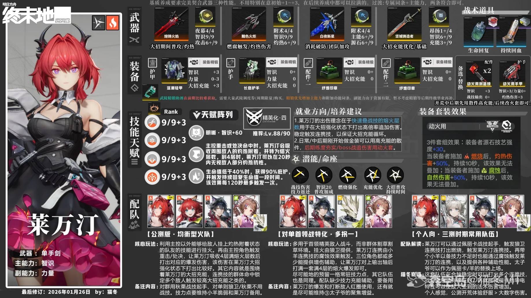正文摘要:《明日方舟:終末地》萊萬汀 公測版本 快速閱讀精華 🔥 角色定位: 爆發型火屬性羣體輸出 (AOE DPS),擅長範圍清怪。🚀 核心策略: 頻繁開啟終極技能,最大化羣體傷害與戰鬥爽感。⚙️ 推薦配裝: 散件充能套:優先堆疊能量回復,加速大招冷卻,確保輸出不斷檔。 🤝 陣容搭配: 搭配增傷輔助:進一步提升萊萬汀的爆發輸出。搭配聚怪角色:優化萊萬汀的羣體攻擊範圍,讓傷害效益最大化。 本文章目錄.article-toc { border: 1px solid #ddd; padding: 15px; background: #f9f9f9; border-radius: 6px; margin: 20px 0; width: 95%;}.toc-title { /* --- 以下是合併進來的 H2 樣式 --- */ font-size: 1.25em; /* 125% */ border-left: 5px solid #2A98DA; border-radius: 2px; padding: 5px 0px 5px 10px; font-weight: bold; margin: 0 0 15px 0; /* 調整了 margin,只留下方 15px */ color: #333; line-height: 1.5; background-color: #f8f8f8; /* --- 樣式合併結束 --- */}.toc-list { list-style: none; padding-left: 0;}.toc-list li { margin: 8px 0;}.toc-list a { color: #2A98DA; text-decoration: none;}.toc-list a:hover { text-decoration: underline;}.back-to-top { display: block; margin-top: 10px; font-size: 0.9em; color: #666;} 萊萬汀角色定位與核心打法document.currentScript.previousElementSibling.href = location.href.split('#')[0] + '#lev_intro'; - 萊萬汀推薦配裝整理document.currentScript.previousElementSibling.href = location.href.split('#')[0] + '#lev_build'; - 萊萬汀陣容搭配思路document.currentScript.previousElementSibling.href = location.href.split('#')[0] + '#lev_team'; 常見問題Q&Adocument.currentScript.previousElementSibling.href = location.href.split('#')[0] + '#faq'; 萊萬汀角色定位與核心打法 《明日方舟:終末地》的指揮官們,想必對「萊萬汀」這位火屬性猛將不陌生吧!她以其強大的羣體傷害能力,在戰場上總是能掀起一陣火海。本篇攻略將深入探討,如何在《明日方舟:終末地》的公測版本中,將萊萬汀的潛力發揮到極致,從配裝到陣容搭配,手把手教你打造最強火傷戰神,讓你輕鬆解決清怪效率低下的煩惱! 萊萬汀的核心優勢在於她的「羣體傷害」與「火屬性」爆發。我們實測後發現,她的終極技能是造成大量範圍傷害的關鍵。因此,我們的首要目標就是確保她能盡可能頻繁地使用大招。在當前的公測版本中,這意味著我們需要特別關注她的能量回復效率,讓火焰的洗禮永不間斷。 萊萬汀推薦配裝整理 針對萊萬汀的核心打法,本攻略強烈建議指揮官們優先考慮「散件充能套」。 👉 GM後台版 遊戲 推薦 ⬇️⬇️⬇️ 快速玩各種二次元動漫手遊app 正如圖中所示,透過搭配散件裝備來堆疊「能量充能」屬性,可以顯著加快萊萬汀終極技能的累積速度。為什麼要這樣做?我們發現,更頻繁的大招不僅能帶來更流暢、更具爽感的戰鬥體驗,更能確保你在面對大量敵人時,擁有源源不絕的清場能力,有效解決你的輸出空窗期問題。相比於單純堆疊攻擊力,這種策略在實戰中的整體效益更佳,因為高頻率的終極技能可以彌補單次傷害的潛在不足,並且能更靈活地應對戰場變化。 萊萬汀陣容搭配思路 作為一名強力的火屬性羣體輸出,萊萬汀在陣容搭配上擁有很高的靈活性。為了最大化她的傷害效益,我們建議可以考慮以下搭配思路: 搭配增傷輔助: 選擇能提供攻擊力、暴擊率或元素傷害加成的輔助型幹員,如某些治療或輔助角色,可以讓萊萬汀的火焰傷害更上一層樓,特別是在爆發階段。 搭配聚怪角色: 萊萬汀的羣體傷害需要敵人聚集才能發揮最大效果。搭配能將敵人拉攏或控場的幹員,能有效優化她的輸出環境,確保她的每一次大招都能命中更多目標。 補足生存能力: 若隊伍生存壓力較大,可考慮搭配治療或防禦型幹員,例如重裝或醫療幹員,確保萊萬汀能安心輸出,避免她在釋放技能前就遭到擊倒。 適當的隊伍搭配,將能讓萊萬汀成為你隊伍中不可或缺的清場核心! 《明日方舟:終末地》萊萬汀重點回顧 🔥 核心定位: 萊萬汀是《明日方舟:終末地》中不可或缺的火屬性羣體輸出利器,以其終極技能主宰戰場,高效清理敵人。🚀 培養重點: 在公測版本,將「能量充能」作為首要屬性,透過散件充能套裝來確保大招頻繁釋放,最大化輸出。💪 戰術優勢: 頻繁的大招能顯著提升清怪效率與戰鬥爽感,讓你面對大量敵人時遊刃有餘,有效解決輸出瓶頸。 以下廣告滑動後還有帖子內容var custom_call_MIR = function (params) {if ( params === null || params.hasAd === false ) {var divRowSide;for (let index = 0; index < ONEADs.length; index++) {if (ONEADs[index].pub.player_mode === "mobile-inread") {divRowSide = ONEADs[index].pub.slotobj;}}var ins = document.createElement('ins');ins.className = 'clickforceads';ins.setAttribute('style', 'display:inline-block;');ins.setAttribute('data-ad-zone', '18264');divRowSide.appendChild(ins);var js = document.createElement('script');js.async = true;js.type = 'text/javascript';js.setAttribute('src', '//cdn.holmesmind.com/js/init.js');js.onload = function(){console.log('[ONEAD MIR] ClickForce Loaded');};divRowSide.appendChild(js);}};var _ONEAD = {};_ONEAD.pub = {};_ONEAD.pub.slotobj = document.getElementById("oneadMIRDFPTag");_ONEAD.pub.slots = ["div-onead-ad"];_ONEAD.pub.uid = "1000509";_ONEAD.pub.external_url = "https://onead.onevision.com.tw/";_ONEAD.pub.scopes = ["spotbuy", "speed"];_ONEAD.pub.player_mode_div = "div-onead-ad";_ONEAD.pub.player_mode = "mobile-inread";_ONEAD.pub.queryAdCallback = custom_call_MIR;var ONEAD_pubs = ONEAD_pubs || [];ONEAD_pubs.push(_ONEAD);var truvidScript = document.createElement('script'); truvidScript.async = true; truvidScri