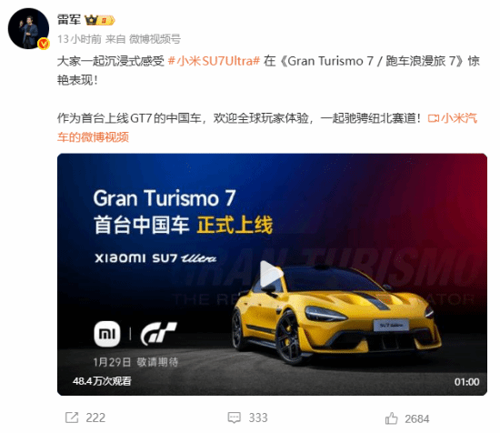 《跑車浪漫旅7》重量級更新!小米SU7 Ultra疾速登場,中國首款電動超跑震撼入庫GT7!