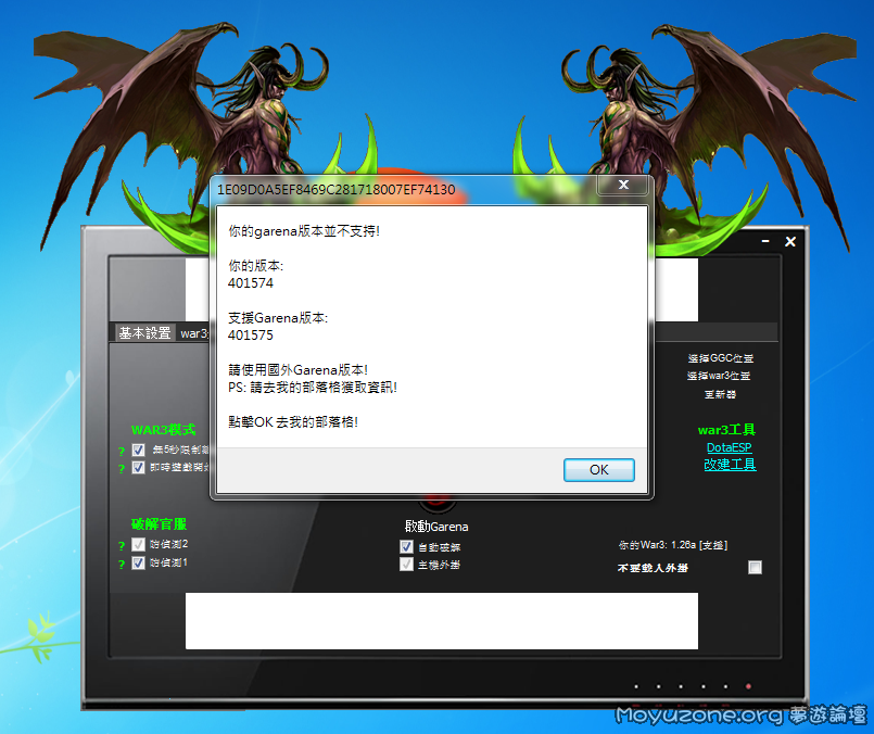 本帖最後由 ga520372 於 2011-5-13 03:28 編輯 對不起~我有發在討論區 為什麼我點下Garena啟動 都會出現 "這個網頁的指令碼發生錯誤" 然後 Garena 登入進去Garena 右上角一排下來 都是空白紅色的 而且右上角沒有圖像 左邊選擇遊戲魔獸RPG 之後都沒有信長 三國 Dota RPG 給你選擇= = 不然就是 全部都沒問題 唯讀進去ggc 進入別人房間 無法進去 像是被黑單那樣 每間房間都無法進去 我開的話 別人也無法進來 不然就是 可以進去 但是開始遊戲之後 都會出現 "你所使用的版本不是正版" 什麼的 一堆的ˊˋ |