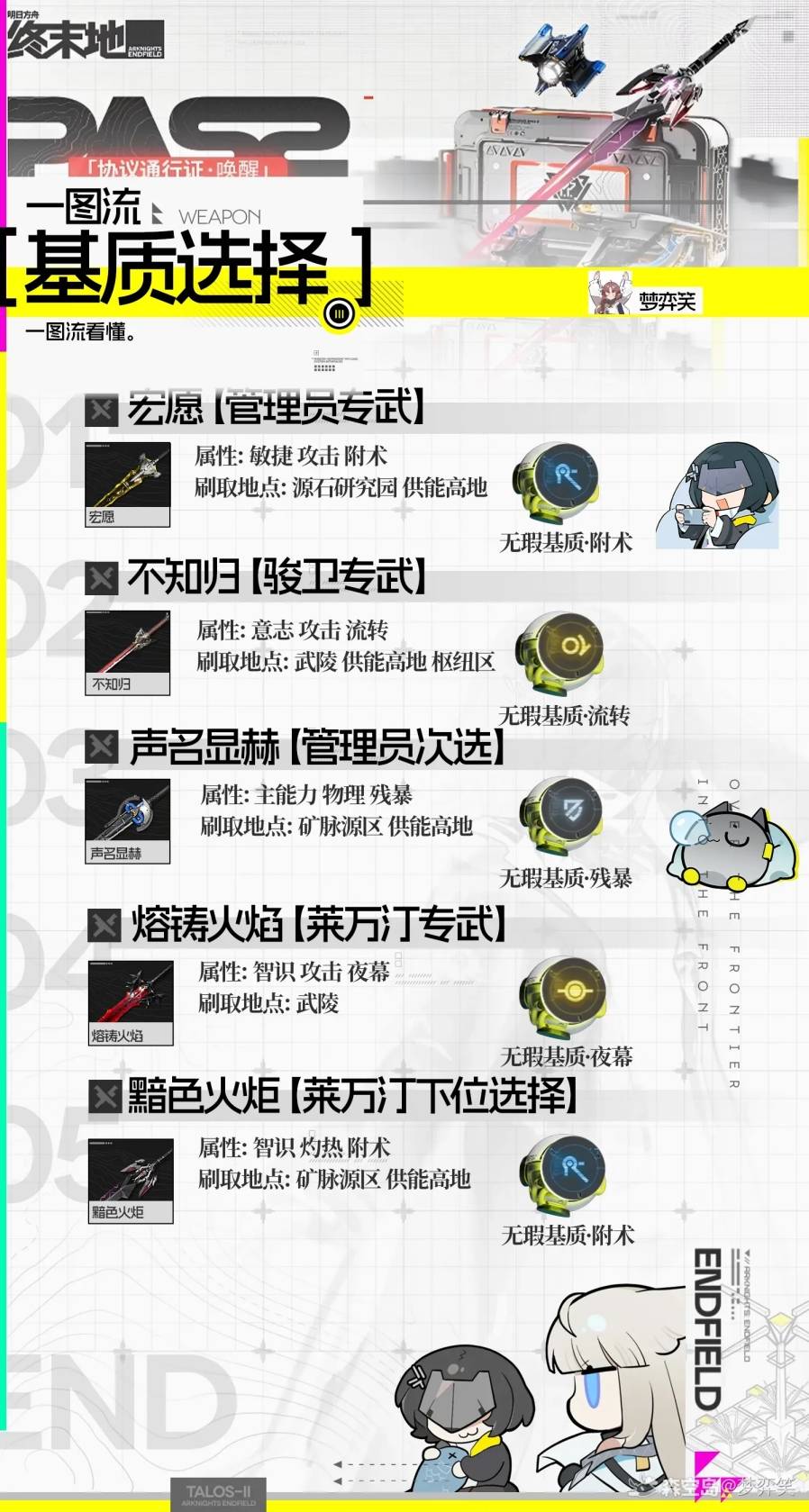 正文摘要:《明日方舟:終末地》武器基質刷取 快速閱讀精華 🚀 核心目標: 快速理解各武器屬性所需基質,掌握高效刷取地點。💡 攻略重點: 利用「一圖流」視覺化攻略,迅速找到目標基質。瞭解基質與武器屬性間的關聯,避免資源浪費。優化刷取路線,大幅提升農取效率。 💪 提升戰力: 有效獲取基質,是強化武器、提升戰隊實力的關鍵一步! 本文章目錄.article-toc { border: 1px solid #ddd; padding: 15px; background: #f9f9f9; border-radius: 6px; margin: 20px 0; width: 95%;}.toc-title { /* --- 以下是合併進來的 H2 樣式 --- */ font-size: 1.25em; /* 125% */ border-left: 5px solid #2A98DA; border-radius: 2px; padding: 5px 0px 5px 10px; font-weight: bold; margin: 0 0 15px 0; /* 調整了 margin,只留下方 15px */ color: #333; line-height: 1.5; background-color: #f8f8f8; /* --- 樣式合併結束 --- */}.toc-list { list-style: none; padding-left: 0;}.toc-list li { margin: 8px 0;}.toc-list a { color: #2A98DA; text-decoration: none;}.toc-list a:hover { text-decoration: underline;}.back-to-top { display: block; margin-top: 10px; font-size: 0.9em; color: #666;} 《明日方舟:終末地》武器基質怎麼刷?全屬性、點位一次搞懂!document.currentScript.previousElementSibling.href = location.href.split('#')[0] + '#intro'; 告別盲目刷圖!《明日方舟:終末地》武器基質核心問題全解document.currentScript.previousElementSibling.href = location.href.split('#')[0] + '#core_problem'; 《明日方舟:終末地》高效武器基質「一圖流」刷取指南document.currentScript.previousElementSibling.href = location.href.split('#')[0] + '#farm_routes'; 《明日方舟:終末地》重點回顧document.currentScript.previousElementSibling.href = location.href.split('#')[0] + '#conclusion'; 《明日方舟:終末地》武器基質常見問題Q&Adocument.currentScript.previousElementSibling.href = location.href.split('#')[0] + '#faq'; 《明日方舟:終末地》武器基質怎麼刷?全屬性、點位一次搞懂! 在《明日方舟:終末地》的廣袤世界中,武器基質(Weapon Matrix)是強化幹員裝備不可或缺的核心材料。然而,面對種類繁多的武器屬性與散落在地圖各處的刷取點位,許多拓荒者們時常感到困惑,不知道該如何有效率地農取所需基質。為此,本攻略團隊特別整理了一份專業且清晰的「一圖流」刷取指南,旨在幫助所有玩家快速掌握武器基質的獲取策略,告別盲目刷圖,將時間與精力投入到最有效益的農取路徑上! 告別盲目刷圖!《明日方舟:終末地》武器基質核心問題全解 我們發現,許多玩家在遊戲初期常遇到的核心煩惱,就是不清楚哪種武器需要哪種基質,以及這些基質的最佳刷取地點在哪裡。如果沒有明確的指引,玩家很可能會在不對的地點耗費寶貴的體力與時間,導致資源浪費,延緩隊伍的成長進度。本攻略深入分析了武器基質與其對應的武器屬性,旨在提供一套系統性的解決方案。透過本篇攻略,您將學會如何根據您幹員的武器屬性需求,精確定位並高效刷取所需基質,讓您的拓荒之路更加順遂。 《明日方舟:終末地》高效武器基質「一圖流」刷取指南 經過我們實戰測試與資料整理,以下提供各類武器基質的刷取屬性與推薦點位「一圖流」指南。這份視覺化攻略將幫助您一目瞭然地掌握所有關鍵資訊,讓您能針對性地進行農取,大幅提升效率! 我們的建議是,在每次出發前,先確定您要提升的武器屬性,然後再對照下面的圖表,規劃出最直接、最有效率的刷取路線。 《明日方舟:終末地》重點回顧 精準對應武器屬性:務必確認您的武器需要哪種基質,再進行刷取。善用「一圖流」導航:本攻略提供的視覺化指南,是您高效農取基質的最佳工具。規劃刷取路徑:根據基質點位,規劃最省時省力的路線,最大化您的體力效益。 以下廣告滑動後還有帖子內容var custom_call_MIR = function (params) {if ( params === null || params.hasAd === false ) {var divRowSide;for (let index = 0; index < ONEADs.length; index++) {if (ONEADs[index].pub.player_mode === "mobile-inread") {divRowSide = ONEADs[index].pub.slotobj;}}var ins = document.createElement('ins');ins.className = 'clickforceads';ins.setAttribute('style', 'display:inline-block;');ins.setAttribute('data-ad-zone', '18264');divRowSide.appendChild(ins);var js = document.createElement('script');js.async = true;js.type = 'text/javascript';js.setAttribute('src', '//cdn.holmesmind.com/js/init.js');js.onload = function(){console.log('[ONEAD MIR] ClickForce Loaded');};divRowSide.appendChild(js);}};var _ONEAD = {};_ONEAD.pub = {};_ONEAD.pub.slotobj = document.getElementById("oneadMIRDFPTag");_ONEAD.pub.slots = ["div-onead-ad"];_ONEAD.pub.uid = "1000509";_ONEAD.pub.external_url = "https://onead.onevision.com.tw/";_ONEAD.pub.scopes = ["spotbuy", "speed"];_ONEAD.pub.player_mode_div = "div-onead-ad";_ONEAD.pub.player_mode = "mobile-inread";_ONEAD.pub.queryAdCallback = custom_call_MIR;var ONEAD_pubs = ONEAD_pubs || [];ONEAD_pubs.push(_ONEAD);var truvidScript = document.createElement('script'); truvidScript.async = true; truvidScript.setAttribute('data-cfasync','false'); truvidScript.type = 'text/javascript'; truvidScript.src = '//stg.truvidplayer.com/index.php?sub_user_id=597&widget_id=3309&playlist_id=2381&m=a&cb=' + (Math.random() * 10000000000000000); var currentScript = document.currentScript || document.scripts[document.scripts.length - 1]; currentScript.parentNode.insertBefore(truvidScript, currentScript.nextSibling); 《明日方舟:終末地》武器基質常見問題Q&A Q:武器基質到底是什麼?它有什麼用? A:武器基質是《明日方舟:終末地》中用於強化武器的關鍵材料。每種武器基質都對應著特定的武器屬性,當您使用正確的基質進