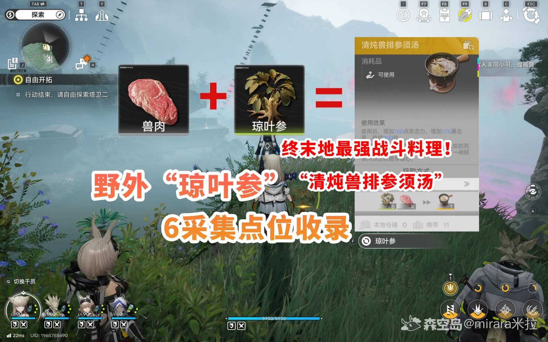 正文摘要:《明日方舟:終末地》瓊葉參採集攻略 快速閱讀精華 🚀 核心用途: 製作高效戰鬥料理「清燉獸排骨參須湯」,提升實戰表現。🌱 獲取方式: 農場種植:在武陵田地可穩定栽培。野外採集:每天投入約3分鐘,即可輕鬆採集超過14個瓊葉參。💡 效率祕訣: 結合種植與野外採集,確保瓊葉參供應不中斷。 本文章目錄.article-toc { border: 1px solid #ddd; padding: 15px; background: #f9f9f9; border-radius: 6px; margin: 20px 0; width: 95%;}.toc-title { /* --- 以下是合併進來的 H2 樣式 --- */ font-size: 1.25em; /* 125% */ border-left: 5px solid #2A98DA; border-radius: 2px; padding: 5px 0px 5px 10px; font-weight: bold; margin: 0 0 15px 0; /* 調整了 margin,只留下方 15px */ color: #333; line-height: 1.5; background-color: #f8f8f8; /* --- 樣式合併結束 --- */}.toc-list { list-style: none; padding-left: 0;}.toc-list li { margin: 8px 0;}.toc-list a { color: #2A98DA; text-decoration: none;}.toc-list a:hover { text-decoration: underline;}.back-to-top { display: block; margin-top: 10px; font-size: 0.9em; color: #666;} 瓊葉參獲取方式總覽:告別食材荒document.currentScript.previousElementSibling.href = location.href.split('#')[0] + '#intro'; - 精準點位分享:瓊葉參野外採集路線document.currentScript.previousElementSibling.href = location.href.split('#')[0] + '#collection_points'; 《明日方舟:終末地》瓊葉參採集 重點回顧document.currentScript.previousElementSibling.href = location.href.split('#')[0] + '#conclusion'; 《明日方舟:終末地》瓊葉參_常見問題Q&Adocument.currentScript.previousElementSibling.href = location.href.split('#')[0] + '#faq'; 瓊葉參獲取方式總覽:告別食材荒 在《明日方舟:終末地》的廣袤世界中,想要製作出頂級的戰鬥料理「清燉獸排骨參須湯」來強化隊伍?那麼,關鍵食材瓊葉參的穩定供應就顯得至關重要了!許多玩家常會為了找不到足夠的瓊葉參而煩惱,但我們實測後發現,其實有兩種高效的方法能讓你輕鬆入手! 首先,最穩定的方式是在武陵的田地中進行種植。這是一個長期且可預期的來源,只要定期維護,就能確保農場持續產出。 其次,也是本篇攻略要著重分享的,就是野外採集!這不僅是獲取瓊葉參的快速途徑,更能讓你每天僅需花費短短3分鐘的時間,就能輕鬆採集到至少14個以上的瓊葉參。這對於急需料理素材的指揮官來說,無疑是一大福音。接下來,就讓我們帶你一探究竟,精準掌握瓊葉參的野外採集點位! 精準點位分享:瓊葉參野外採集路線 我們深入探索了終末地的廣大地圖,為您繪製出最高效的瓊葉參野外採集路線。以下是我們為各位指揮官整理的精準點位,請跟著圖片指示,保證讓您滿載而歸! 首先,抵達這個區域後,請留意地面上的植被分佈,瓊葉參通常會生長在比較顯眼的位置。 透過這條路線,我們團隊成員平均能在極短時間內收集到大量瓊葉參,大大緩解了料理素材的壓力。建議各位指揮官每天固定巡邏一次,確保資源永續。 《明日方舟:終末地》瓊葉參採集 重點回顧 🔑 瓊葉參是「清燉獸排骨參須湯」的必要材料。🔄 可透過武陵田地種植或野外採集獲得。⏱️ 每日野外採集僅需約3分鐘,可輕鬆獲取14個以上。 以下廣告滑動後還有帖子內容var custom_call_MIR = function (params) {if ( params === null || params.hasAd === false ) {var divRowSide;for (let index = 0; index < ONEADs.length; index++) {if (ONEADs[index].pub.player_mode === "mobile-inread") {divRowSide = ONEADs[index].pub.slotobj;}}var ins = document.createElement('ins');ins.className = 'clickforceads';ins.setAttribute('style', 'display:inline-block;');ins.setAttribute('data-ad-zone', '18264');divRowSide.appendChild(ins);var js = document.createElement('script');js.async = true;js.type = 'text/javascript';js.setAttribute('src', '//cdn.holmesmind.com/js/init.js');js.onload = function(){console.log('[ONEAD MIR] ClickForce Loaded');};divRowSide.appendChild(js);}};var _ONEAD = {};_ONEAD.pub = {};_ONEAD.pub.slotobj = document.getElementById("oneadMIRDFPTag");_ONEAD.pub.slots = ["div-onead-ad"];_ONEAD.pub.uid = "1000509";_ONEAD.pub.external_url = "https://onead.onevision.com.tw/";_ONEAD.pub.scopes = ["spotbuy", "speed"];_ONEAD.pub.player_mode_div = "div-onead-ad";_ONEAD.pub.player_mode = "mobile-inread";_ONEAD.pub.queryAdCallback = custom_call_MIR;var ONEAD_pubs = ONEAD_pubs || [];ONEAD_pubs.push(_ONEAD);var truvidScript = document.createElement('script'); truvidScript.async = true; truvidScript.setAttribute('data-cfasync','false'); truvidScript.type = 'text/javascript'; truvidScript.src = '//stg.truvidplayer.com/index.php?sub_user_id=597&widget_id=3309&playlist_id=2381&m=a&cb=' + (Math.random() * 10000000000000000); var currentScript = document.currentScript || document.scripts[document.scripts.length - 1]; currentScript.parentNode.insertBefore(truvidScript, currentScript.nextSibling); 《明日方舟:終末地》瓊葉參_常見問題Q&A Q:瓊葉參在遊戲中的主要用途是什麼? A:瓊葉參是製作高效戰鬥料理「清燉獸排骨參須湯」的關鍵材料,這道料理能為您的隊伍提供重要的增益效果。 Q:除了野外採集,還有其他穩定獲取瓊葉參的方式嗎? A:是的,您可以在遊戲中的武陵區域,利用田地進行瓊葉參的種植,這是一個長期且穩定的供應來源。 Q:野外採集瓊葉參大約需要花費多少時間? A:根據我們的實測,每天投入大約3分鐘,您就能在野外輕鬆採集到至少14個以上的瓊葉參,效率非常高。 Q:瓊葉參通常會生長在哪些類型的地形或區域? A:瓊葉參在野外通常會分佈在植被較為茂盛、或是岩石/灌木叢旁的區域。跟隨本攻略提供的點位圖,能幫助您更精準地找到它們。 Q:採集瓊葉參