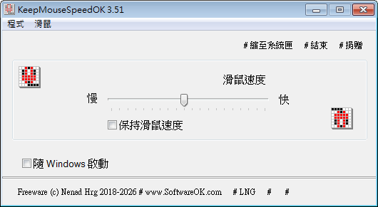 正文摘要:《KeepMouseSpeedOK》核心主題 快速閱讀精華 🚀 滑鼠速度救星: 一鍵鎖定滑鼠遊標速度,防止 Windows 系統偷偷亂改你的設定! 免安裝綠色版,下載解壓縮就能直接用,不殘留垃圾檔案。 介面超簡單,直接調整速度條或快速開啟系統滑鼠設定。 常駐在系統匣,隨時點開就能調整或鎖定,超級方便。 本文章目錄.article-toc { border: 1px solid #ddd; padding: 15px; background: #f9f9f9; border-radius: 6px; margin: 20px 0; width: 95%;}.toc-title { /* --- 以下是合併進來的 H2 樣式 --- */ font-size: 1.25em; /* 125% */ border-left: 5px solid #2A98DA; border-radius: 2px; padding: 5px 0px 5px 10px; font-weight: bold; margin: 0 0 15px 0; /* 調整了 margin,只留下方 15px */ color: #333; line-height: 1.5; background-color: #f8f8f8; /* --- 樣式合併結束 --- */}.toc-list { list-style: none; padding-left: 0;}.toc-list li { margin: 8px 0;}.toc-list a { color: #2A98DA; text-decoration: none;}.toc-list a:hover { text-decoration: underline;}.back-to-top { display: block; margin-top: 10px; font-size: 0.9em; color: #666;} 軟體規格與介紹document.currentScript.previousElementSibling.href = location.href.split('#')[0] + '#info'; 軟體截圖document.currentScript.previousElementSibling.href = location.href.split('#')[0] + '#screenshot'; 附件下載 🔽document.currentScript.previousElementSibling.href = location.href.split('#')[0] + '#download'; 【語 言】:多國語言 (含繁體中文) 【軟體名稱】:KeepMouseSpeedOK 【版本資訊】:v3.51 【軟體大小】:52.3 KB 【更新日期】:1 小時前 【使用權限】:免安裝版 【系統支持】:Windows 【軟體介紹】: 你是不是常常覺得 Windows 系統會自己亂改滑鼠遊標的移動速度,用起來超不順手?這款由 Nenad Hrg 開發的《KeepMouseSpeedOK》小工具,就是專門為瞭解決這個惱人問題而生的! 它的功能很單純但超實用,就是幫你「調整並鎖定」滑鼠指標的速度。有些 Windows 版本會在背景自動變更滑鼠速度,導致你每次用起來感覺都不一樣。《KeepMouseSpeedOK》可以讓你設定好自己最習慣的速度,然後把它「固定」住,系統就沒辦法再亂改了,完美解決操作不便的問題。 軟體使用起來非常直覺,介面乾淨簡單。你可以直接拉動速度條來調整快慢,或是點一下按鈕直接開啟系統內建的滑鼠內容設定視窗。它會以一個小圖示常駐在桌面右下角的系統匣裡,隨時點開就能用,不管是想快速切換不同情境下的滑鼠速度,還是單純要鎖定當前設定,都非常方便穩定。 【軟體截圖】: 👉 GM後台版 遊戲 推薦 ⬇️⬇️⬇️ 快速玩各種二次元動漫手遊app 【附件下載】: KeepMouseSpeedOK_Portable.zip ◎ 本人呼籲會員們不要將本站資源用於盈利和/或非法目的。 ◎ 本人亦不承擔會員將本站資源用於盈利和/或非法目的之任何後果和/或法律責任。 ◎ 本人支持原版,尊重著作權人。如需長期使用,請購買原廠正版,遵守著作權相關法律。 ◎ 本文章內容僅供測試頻寬無販售行為,請於下載後24小時以內將檔案刪除。 ◎ 本圖像文件皆從網上搜集轉載/不承擔任何技術及版權問題。 ◎ 解鎖版軟體有機會被防毒軟體偵測有毒,打開時請先把防毒軟體關閉。 |