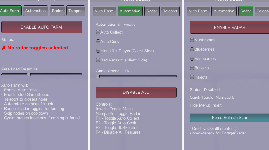 正文摘要:replyreload += ',' + 2432981; 《心動小鎮》Heartopia Buddy 輔助功能 快速閱讀精華 🛠️ 核心功能: 自動採集 (Auto Farm)地圖瞬移 (Teleport)自動拾取 (Auto Pick)全圖透視 (Map Hacks) ⚠️ 安全警告: 嚴禁在公開大廳 (Public Lobbies) 使用建議僅在私人小鎮 (Private Town) 開啟功能過度使用瞬移或加速可能導致封號 📥 必備工具: MelonLoader (模組加載器)Heartopia Buddy.dll (插件本體) 本文章目錄.article-toc { border: 1px solid #ddd; padding: 15px; background: #f9f9f9; border-radius: 6px; margin: 20px 0; width: 95%;}.toc-title { /* --- 以下是合併進來的 H2 樣式 --- */ font-size: 1.25em; /* 125% */ border-left: 5px solid #2A98DA; border-radius: 2px; padding: 5px 0px 5px 10px; font-weight: bold; margin: 0 0 15px 0; /* 調整了 margin,只留下方 15px */ color: #333; line-height: 1.5; background-color: #f8f8f8; /* --- 樣式合併結束 --- */}.toc-list { list-style: none; padding-left: 0;}.toc-list li { margin: 8px 0;}.toc-list a { color: #2A98DA; text-decoration: none;}.toc-list a:hover { text-decoration: underline;}.back-to-top { display: block; margin-top: 10px; font-size: 0.9em; color: #666;} 前言:重拾小鎮生活的輕鬆感document.currentScript.previousElementSibling.href = location.href.split('#')[0] + '#intro'; v4.1.0 Beta 功能詳解document.currentScript.previousElementSibling.href = location.href.split('#')[0] + '#features'; MelonLoader 安裝與注入教學document.currentScript.previousElementSibling.href = location.href.split('#')[0] + '#install'; 遊戲內參數設置指南document.currentScript.previousElementSibling.href = location.href.split('#')[0] + '#settings'; 防封號與安全使用規範document.currentScript.previousElementSibling.href = location.href.split('#')[0] + '#safety'; 🔽 輔助檔案下載document.currentScript.previousElementSibling.href = location.href.split('#')[0] + '#download'; 常見問題 Q&Adocument.currentScript.previousElementSibling.href = location.href.split('#')[0] + '#faq'; 前言:重拾小鎮生活的輕鬆感 各位《心動小鎮》的島民們,久等了!許多玩家敲碗已久的 **Heartopia Buddy** 終於釋出了最新的 **v4.1.0 (Beta)** 版本。作為一款主打慢節奏生活的社交模擬遊戲,後期的資源採集往往會變得枯燥乏味。 這款輔助工具經過多次測試與優化,目前的版本已經相當穩定。它能幫助大家擺脫重複作業的疲勞,讓你更專注於享受與朋友佈置家園、互動的樂趣。只要遵守使用規範,我們就能在不破壞遊戲平衡的前提下,輕鬆體驗這款 Unity 引擎打造的可愛遊戲。 v4.1.0 Beta 功能詳解 這次的更新主要集中在提升穩定性與自動化功能的優化,以下是本次版本的介面預覽: Teleport (瞬移): 快速移動到地圖上的指定資源點或位置。Auto Farm (自動採集): 這是本次更新的亮點,可以自動進行資源收集。Pick (自動拾取): 開啟後可自動吸取周圍掉落的物品,省去來回跑動的時間。Map (透視/地圖功能): 在地圖上顯示所有資源點,甚至支援傳送。 MelonLoader 安裝與注入教學 本輔助基於 MelonLoader 框架運行,請務必按照以下步驟操作,以免發生錯誤: 下載 MelonLoader: 首先需要下載並安裝 MelonLoader (通用 Unity 模組加載器)。選擇遊戲目標: 執行 MelonLoader 安裝程式,在目標選擇中找到並選取《心動小鎮》(Heartopia) 的遊戲執行檔 (.exe)。確認資料夾: 安裝完成後,你的遊戲根目錄下會自動生成一個名為 Mods 的資料夾。放入插件: 將下載好的 Heartopia buddy.dll 檔案,直接拖放進這個 Mods 資料夾中。啟動遊戲: 直接執行遊戲即可。呼叫選單: 進遊戲後,按下鍵盤上的 Insert (Ins) 鍵即可開啟或關閉輔助選單。 遊戲內參數設置指南 為了獲得最佳體驗並降低風險,進入遊戲後的設置 (Settings) 請參考以下建議: Gameplay (遊戲性設置): Cooking (烹飪): 建議設定為 OFF (關閉),目前版本可能不穩定。Pick (拾取): 設定為 ON (開啟),啟用自動吸物功能。Map (地圖): 設定為 ON/ON,開啟地圖透視與相關功能。 實際操作演示影片: .video-container { position: relative; padding-bottom: 56.25%; padding-top: 30px; height: 0; overflow: hidden;}.video-container iframe,.video-container object,.video-container embed { position: absolute; top: 0; left: 0; width: 100%; height: 100%;}外連至此YOUTUBE影片連結 防封號與安全使用規範 這部分非常重要,請所有玩家務必仔細閱讀!為了維護遊戲環境與保護您的帳號安全: 禁止在公開大廳使用: 絕對不要在有其他路人的 Public Lobby 使用瞬移 (Teleport)、加速 (Speedhack) 或自動採集 (Auto Farm)。檢舉風險: 在公開場合使用高調外掛,極高機率會被其他玩家檢舉並導致封號。私人小鎮專用: 如果您需要長時間掛機刷資源,請務必 創建自己的私人小鎮 (Create Your Own Town) 再進行操作。保持低調: 請低調使用,不要破壞其他玩家的遊戲體驗,讓我們共同維護這個溫馨的小鎮環境。 🔽 輔助檔案下載 此處包含 Heartopia Buddy v4.1.0 相關檔案與 Gathering Manager。 所有站內附件皆會附上安全掃描報告請會員查看純淨度百分比後判斷使用(adsbygoogle = window.adsbygoogle || []).push({});相關檔案須知:取得檔案前,請先詳細閱讀文章內容避免不必要錯誤與誤會發生。也可多參考文章討論樓層內容了解附件檔案相關討論資訊。 【此文章部分內容隱藏中】 解除隱藏說明教學點擊下方 繼續閱讀文章 後請仔細觀看文章內容 並依照指示進行下一步最後完成解除隱藏後系統會回到此文章自動顯示隱藏內容~繼續閱讀 常見問題 Q&A Q:為什麼我按了 Insert 鍵,選單沒有出現? 請檢查 MelonLoader 是否正確安裝。啟動遊戲時,應該會先看