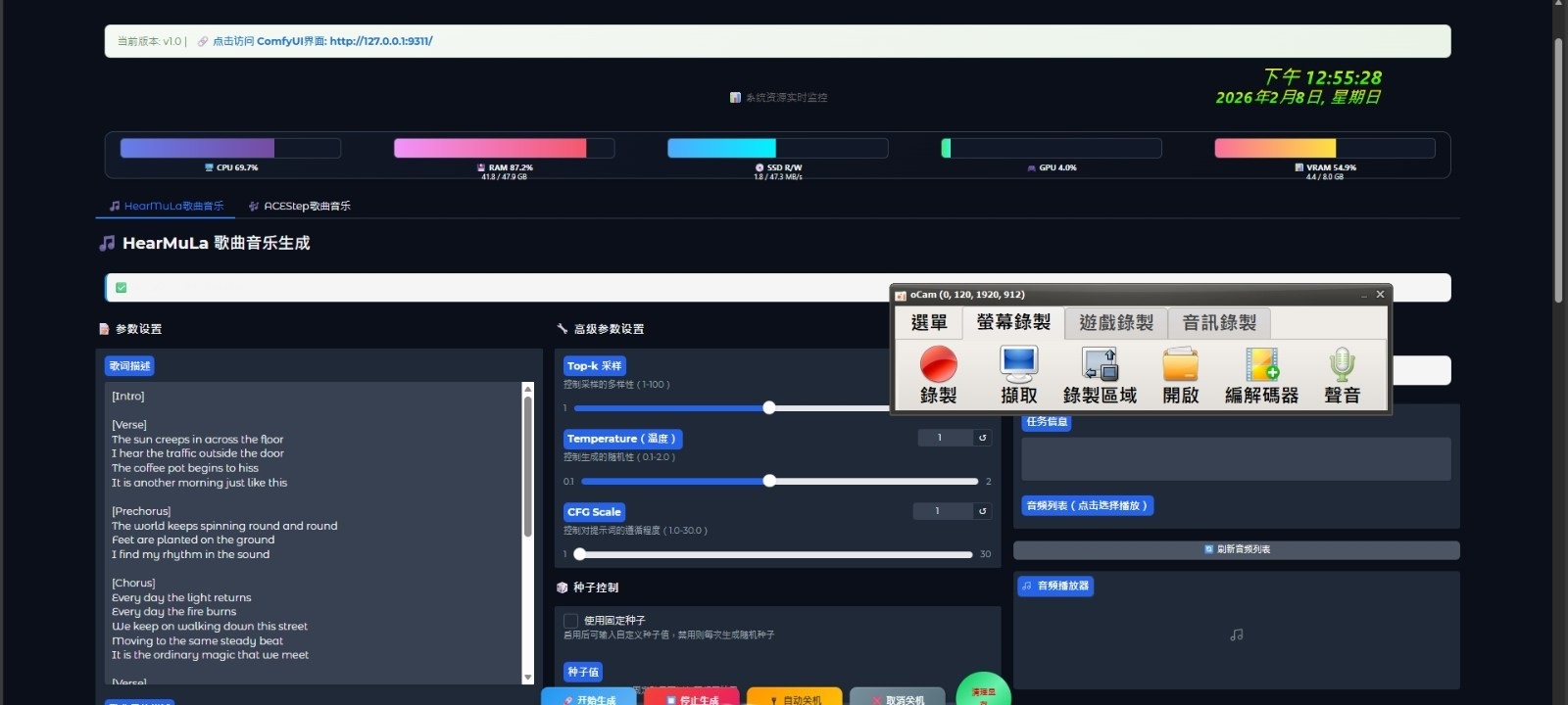 正文摘要:《ACEStep+HearMuLa》核心主題 快速閱讀精華 🚀 音樂生成超便利: ACE-Step 1.5 與 HearMuLa (WebUI) 兩大工具合而為一,一次搞定! 一鍵啟動設計,免去複雜設定步驟,新手也能輕鬆上手。 強大的 AI 音樂與歌曲生成功能,釋放你的創作潛能。 .article-toc { border: 1px solid #ddd; padding: 15px; background: #f9f9f9; border-radius: 6px; margin: 20px 0; width: 90%;}.article-toc br { display: none;}.toc-title { /* --- 以下是合併進來的 H2 樣式 --- */ font-size: 1.25em; /* 125% */ border-left: 5px solid #2A98DA; border-radius: 2px; padding: 5px 0px 5px 10px; font-weight: bold; margin: 0 0 15px 0; /* 調整了 margin,只留下方 15px */ color: #333; line-height: 1.5; background-color: #f8f8f8; /* --- 樣式合併結束 --- */}.toc-list { list-style: none; padding-left: 0;}.toc-list li { margin: 8px 0;}.toc-list a { color: #2A98DA; text-decoration: none;}.toc-list a:hover { text-decoration: underline;}.back-to-top { display: block; margin-top: 10px; font-size: 0.9em; color: #666;}本文章目錄 軟體規格資訊document.currentScript.previousElementSibling.href = location.href.split('#')[0] + '#info'; 軟體截圖document.currentScript.previousElementSibling.href = location.href.split('#')[0] + '#screenshot'; 附件下載 🔽document.currentScript.previousElementSibling.href = location.href.split('#')[0] + '#download'; 【語 言】:網譯版 【軟體名稱】:ACEStep+HearMuLa (ACE-Step1.5+HearMuLa WebUI) 【版本資訊】:2合1 【軟體大小】:28.5 GB 【更新日期】:4 小時前 【使用權限】:免費下載 【系統支持】:Windows PC 【軟體介紹】: 這款《ACEStep+HearMuLa》是一款功能強大的 AI 音樂生成工具整合包,特別適合對音樂創作有興趣的朋友。它將 ACE-Step 1.5 和 HearMuLa (WebUI) 兩套工具打包在一起,變成一個「2合1」的懶人包,最大的特色就是「一鍵啟動」,省去了使用者需要分別安裝、設定環境變數等繁瑣步驟的麻煩。 對於想要嘗試 AI 生成音樂或歌曲的使用者來說,這個整合包提供了非常方便的入門途徑。你不需要具備深厚的程式背景,只要按照基本的步驟操作,就能啟動工具並開始體驗 AI 音樂創作的樂趣。無論是想生成背景音樂、旋律片段,或是探索新的聲音可能性,這套工具都能提供強大的支持。 【軟體截圖】: 👉 GM後台版 遊戲 推薦 ⬇️⬇️⬇️ 快速玩各種二次元動漫手遊app 【附件下載】: 0208 |