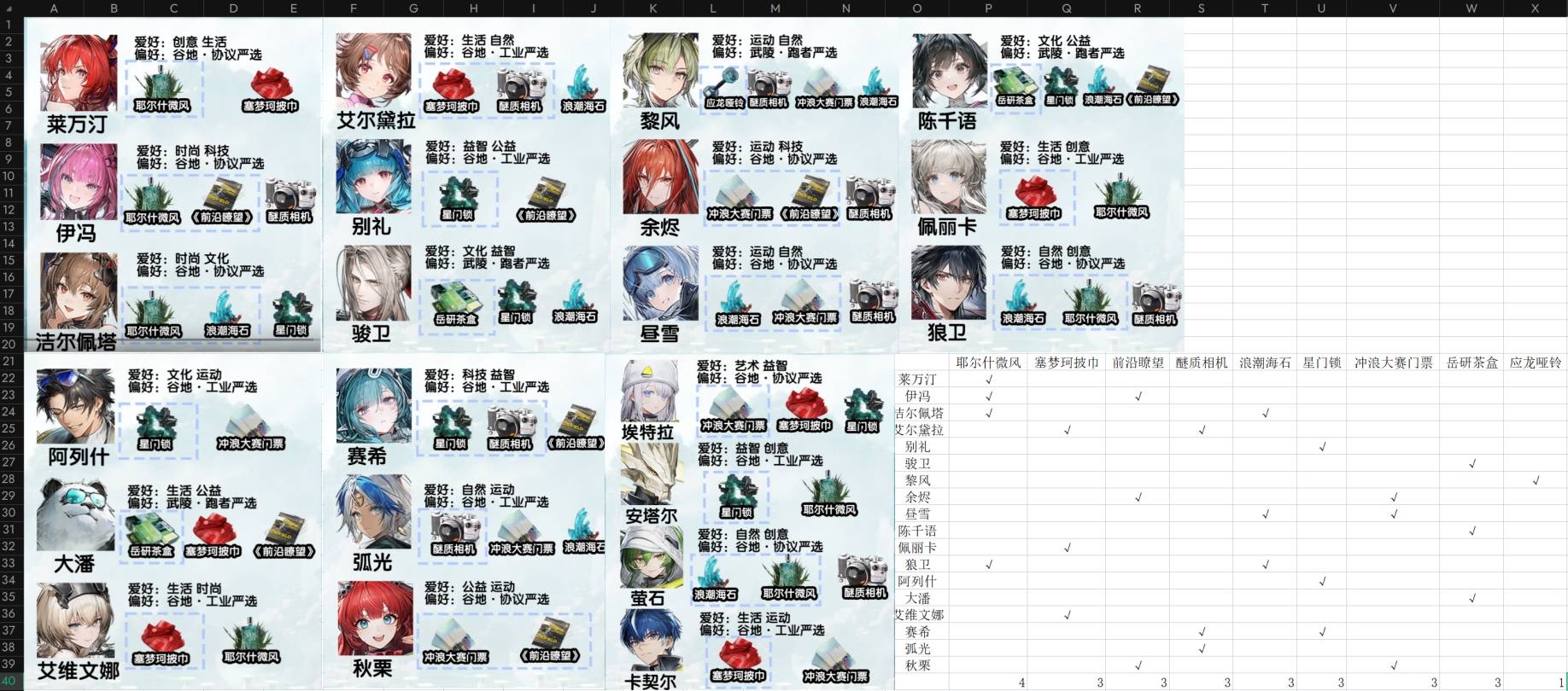 正文摘要:《明日方舟 終末地》幹員禮物喜好 快速閱讀精華 🔑 核心目標: 透過贈送幹員喜愛的禮物,快速提升好感度,解鎖專屬劇情與能力加成!🔍 喜好清單哪裡找? 請參考本文中的詳細圖表,我們為您整理了目前已知的所有幹員禮物偏好。 💡 送禮小撇步: 優先贈送最愛禮物,效益最高。留意每日任務與商店刷新,獲取稀有禮物。送禮不只提升好感,更能加速幹員潛能開發! 🚀 快速傳送門: 立即查看幹員禮物喜好列表常見問題Q&A 本文章目錄.article-toc { border: 1px solid #ddd; padding: 15px; background: #f9f9f9; border-radius: 6px; margin: 20px 0; width: 95%;}.toc-title { /* --- 以下是合併進來的 H2 樣式 --- */ font-size: 1.25em; /* 125% */ border-left: 5px solid #2A98DA; border-radius: 2px; padding: 5px 0px 5px 10px; font-weight: bold; margin: 0 0 15px 0; /* 調整了 margin,只留下方 15px */ color: #333; line-height: 1.5; background-color: #f8f8f8; /* --- 樣式合併結束 --- */}.toc-list { list-style: none; padding-left: 0;}.toc-list li { margin: 8px 0;}.toc-list a { color: #2A98DA; text-decoration: none;}.toc-list a:hover { text-decoration: underline;}.back-to-top { display: block; margin-top: 10px; font-size: 0.9em; color: #666;} 《明日方舟 終末地》幹員禮物喜好:全面整理document.currentScript.previousElementSibling.href = location.href.split('#')[0] + '#gift_preferences'; 《明日方舟 終末地》幹員禮物_常見問題Q&Adocument.currentScript.previousElementSibling.href = location.href.split('#')[0] + '#faq'; 《明日方舟 終末地》幹員禮物喜好:全面整理 在《明日方舟 終末地》這款遊戲中,與您並肩作戰的每位幹員都擁有獨特的個性與故事。而「送禮」正是加深彼此連結、提升幹員好感度(或稱信賴度)的關鍵途徑。這不僅能解鎖更多專屬劇情,還能強化幹員的作戰能力,讓您的帝江號團隊更具凝聚力! 我們深知玩家們最煩惱的就是:「到底要送什麼禮物才能送到幹員心坎裡?」、「盲目送禮會不會浪費珍貴資源?」。別擔心,本攻略團隊經過實測與資料彙整,為您整理出最全面的幹員禮物喜好清單,幫助您精準送禮,效益最大化。 幹員禮物偏好圖表總覽 我們發現,每位幹員對於禮物的偏好都有所不同,有些是他們的興趣所在,有些則可能喚起他們的回憶。以下是我們精心整理的幹員禮物喜好詳細圖表,請務必仔細參考,這將是您攻略所有幹員心防的致勝關鍵! 我們建議玩家們在遊戲初期就開始著手管理幹員的好感度,這將對您在《明日方舟 終末地》的整體遊戲體驗產生顯著的正向影響。精準的送禮,是您成為頂尖指揮官不可或缺的一環! 以下廣告滑動後還有帖子內容var custom_call_MIR = function (params) {if ( params === null || params.hasAd === false ) {var divRowSide;for (let index = 0; index < ONEADs.length; index++) {if (ONEADs[index].pub.player_mode === "mobile-inread") {divRowSide = ONEADs[index].pub.slotobj;}}var ins = document.createElement('ins');ins.className = 'clickforceads';ins.setAttribute('style', 'display:inline-block;');ins.setAttribute('data-ad-zone', '18264');divRowSide.appendChild(ins);var js = document.createElement('script');js.async = true;js.type = 'text/javascript';js.setAttribute('src', '//cdn.holmesmind.com/js/init.js');js.onload = function(){console.log('[ONEAD MIR] ClickForce Loaded');};divRowSide.appendChild(js);}};var _ONEAD = {};_ONEAD.pub = {};_ONEAD.pub.slotobj = document.getElementById("oneadMIRDFPTag");_ONEAD.pub.slots = ["div-onead-ad"];_ONEAD.pub.uid = "1000509";_ONEAD.pub.external_url = "https://onead.onevision.com.tw/";_ONEAD.pub.scopes = ["spotbuy", "speed"];_ONEAD.pub.player_mode_div = "div-onead-ad";_ONEAD.pub.player_mode = "mobile-inread";_ONEAD.pub.queryAdCallback = custom_call_MIR;var ONEAD_pubs = ONEAD_pubs || [];ONEAD_pubs.push(_ONEAD);var truvidScript = document.createElement('script'); truvidScript.async = true; truvidScript.setAttribute('data-cfasync','false'); truvidScript.type = 'text/javascript'; truvidScript.src = '//stg.truvidplayer.com/index.php?sub_user_id=597&widget_id=3309&playlist_id=2381&m=a&cb=' + (Math.random() * 10000000000000000); var currentScript = document.currentScript || document.scripts[document.scripts.length - 1]; currentScript.parentNode.insertBefore(truvidScript, currentScript.nextSibling); 《明日方舟 終末地》幹員禮物_常見問題Q&A Q:為什麼要送禮物給幹員?提升好感度有什麼用? A:送禮物給幹員可以提升他們的好感度(或稱信賴度)。好感度提升後,不僅能解鎖幹員的個人劇情、背景故事,還能獲得幹員的基礎屬性加成、解鎖特殊語音,甚至可能影響某些潛在的遊戲事件與結局走向,讓您的團隊實力更上一層樓! Q:禮物要怎麼獲得?是不是很難取得? A:遊戲內獲取禮物的管道很多元,並不難。您可以在帝江號的商店購買、完成每日任務、參與限時活動獲得獎勵,或者在探索不同地塊時隨機發現。有些稀有禮物可能需要特定的活動或挑戰才能取得,但大部分常用禮物都可以在遊戲中穩定獲得。 Q:每個幹員的禮物喜好會變動嗎? A:根據我們的觀察與目前遊戲版本,幹員的禮物喜好通常是固定不變的。一旦確定了他們的偏好,就可以持續地送出他們最喜歡的禮物。不過,遊戲未來若有大型更新,我們也會持續追蹤並更新相關資訊。 Q:如果送錯禮物給不喜歡的幹員會有什麼影響? A:送錯禮物通常不會有負面影響,但效益會比較低。幹員收到不喜歡的禮物時,增加的好感度會比收到喜歡的禮物少很多,甚至可能沒有任何好感度提升。因此,為了最大化資源利用,強烈建議您參考本攻略提供的喜好清單來送禮。 Q:除了送禮,還有其他方式可以提升幹員好