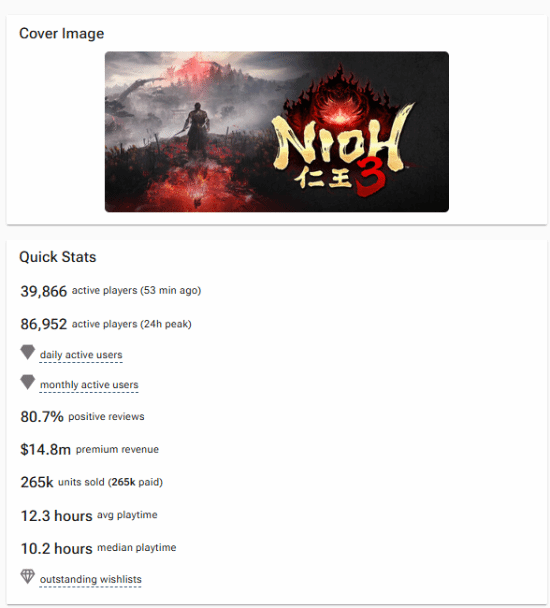 正文摘要:魂系大作《仁王3》Steam開局驚艷!預估銷量突破26萬份,線上人數飆新高,這份成績單你信嗎? 自從《仁王3》正式發售以來,這款廣受期待的魂系動作遊戲迅速成為遊戲圈的熱門話題。各方數據網站紛紛披露其初期表現,其中Steam平臺的預估銷售數字更是令人咋舌。究竟這些驚人的成績代表了什麼?又是否真切反映了遊戲的市場潛力呢? Steam預估銷量揭祕:開局紅盤,銷售額突破4.7億新人民幣? 根據數據網站VGI的統計,在《仁王3》正式上線短短三天內,其Steam平臺的預估銷量已飆升至26.5萬份。這項數據同時推估銷售額鋼彈1,480萬美元,約合新人民幣4.7億元(根據1美元兌32元新人民幣粗略計算)。這樣的成績無疑為《仁王3》在PC平臺的發行,描繪出一個亮眼的開局。 無論如何,《仁王3》無疑已經成功地在遊戲市場中劃下了一道深刻的印記。其所帶來的現象級討論和玩家參與度,都預示著這款遊戲在未來一段時間內,仍將是眾所矚目的焦點。各位玩家們對這些數據有什麼看法呢?您認為《仁王3》的實際表現是否與這些預估數字相符?歡迎在留言區分享您的見解! 以下廣告滑動後還有帖子內容var custom_call_MIR = function (params) {if ( params === null || params.hasAd === false ) {var divRowSide;for (let index = 0; index < ONEADs.length; index++) {if (ONEADs[index].pub.player_mode === "mobile-inread") {divRowSide = ONEADs[index].pub.slotobj;}}var ins = document.createElement('ins');ins.className = 'clickforceads';ins.setAttribute('style', 'display:inline-block;');ins.setAttribute('data-ad-zone', '18264');divRowSide.appendChild(ins);var js = document.createElement('script');js.async = true;js.type = 'text/javascript';js.setAttribute('src', '//cdn.holmesmind.com/js/init.js');js.onload = function(){console.log('[ONEAD MIR] ClickForce Loaded');};divRowSide.appendChild(js);}};var _ONEAD = {};_ONEAD.pub = {};_ONEAD.pub.slotobj = document.getElementById("oneadMIRDFPTag");_ONEAD.pub.slots = ["div-onead-ad"];_ONEAD.pub.uid = "1000509";_ONEAD.pub.external_url = "https://onead.onevision.com.tw/";_ONEAD.pub.scopes = ["spotbuy", "speed"];_ONEAD.pub.player_mode_div = "div-onead-ad";_ONEAD.pub.player_mode = "mobile-inread";_ONEAD.pub.queryAdCallback = custom_call_MIR;var ONEAD_pubs = ONEAD_pubs || [];ONEAD_pubs.push(_ONEAD);var truvidScript = document.createElement('script'); truvidScript.async = true; truvidScript.setAttribute('data-cfasync','false'); truvidScript.type = 'text/javascript'; truvidScript.src = '//stg.truvidplayer.com/index.php?sub_user_id=597&widget_id=3309&playlist_id=2381&m=a&cb=' + (Math.random() * 10000000000000000); var currentScript = document.currentScript || document.scripts[document.scripts.length - 1]; currentScript.parentNode.insertBefore(truvidScript, currentScript.nextSibling); 常見問題 Q&A Q:根據報導,《仁王3》在Steam平臺的預估銷量是多少? 《仁王3》在正式上線三天後,Steam平臺的預估銷量已達到26.5萬份。 Q:這些銷量數據是否為官方發布的準確數字? 報導中提到,這些數據來自數據網站VGI的估算值,並非官方發布的絕對準確數據,建議讀者多方查證。 Q:目前《仁王3》在Steam上的最高同時在線玩家數是多少? 根據的數據,《仁王3》的最高同時在線玩家峯值已達到87,922人。 Q:報導指出,《仁王3》是否超越了其他光榮特庫摩遊戲的紀錄? 是的,《仁王3》已超越了《臥龍:蒼天隕落》的同時在線玩家峯值紀錄,成為光榮特庫摩在Steam平臺上熱度最高的遊戲。 Q:為何VGI網站未提供PlayStation 5平臺的銷量數據? 報導中並未解釋VGI網站未提供PS5銷量數據的原因,僅提及該網站目前沒有這部分的資訊。 社羣推廣文案 🔥 魂系玩家注意!《仁王3》Steam開局炸裂,數字會說話! 🔥 才上線三天,預估銷量就衝破 26.5萬份!😱 線上人數更是超越《臥龍》,創下光榮特庫摩在Steam的新紀錄!鋼彈87,922名玩家同時在線廝殺! 這份「成績單」是真的嗎?還是僅供參考? 雖然VGI數據是估算,但這熱度已經夠驚人了!你覺得《仁王3》真的這麼猛嗎? 快來分享你的看法,看看這股魂系旋風能持續多久!#仁王3 #Nioh3 #Steam遊戲 #魂系大作 #遊戲銷量 #玩家社羣 #臥龍 |