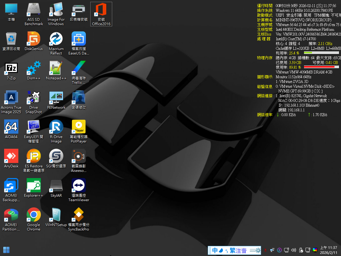 正文摘要:《Windows 11 PE》核心主題 快速閱讀精華 🚀 電腦救援必備神器: 基於 Windows 11 25H2 最新版本製作,系統維護更給力! 內建 Office 辦公軟體,緊急處理文件沒問題。 繁體中文介面,操作直覺又親切。 由 benq800a 大師指導更新,品質有保證。 本文章目錄.article-toc { border: 1px solid #ddd; padding: 15px; background: #f9f9f9; border-radius: 6px; margin: 20px 0; width: 95%;}.toc-title { /* --- 以下是合併進來的 H2 樣式 --- */ font-size: 1.25em; /* 125% */ border-left: 5px solid #2A98DA; border-radius: 2px; padding: 5px 0px 5px 10px; font-weight: bold; margin: 0 0 15px 0; /* 調整了 margin,只留下方 15px */ color: #333; line-height: 1.5; background-color: #f8f8f8; /* --- 樣式合併結束 --- */}.toc-list { list-style: none; padding-left: 0;}.toc-list li { margin: 8px 0;}.toc-list a { color: #2A98DA; text-decoration: none;}.toc-list a:hover { text-decoration: underline;}.back-to-top { display: block; margin-top: 10px; font-size: 0.9em; color: #666;} 規格化資訊document.currentScript.previousElementSibling.href = location.href.split('#')[0] + '#info'; 軟體截圖document.currentScript.previousElementSibling.href = location.href.split('#')[0] + '#screenshot'; 附件下載 🔽document.currentScript.previousElementSibling.href = location.href.split('#')[0] + '#download'; 【語 言】:繁體中文 【軟體名稱】:Win11PE_25H2.26200.7840_zh-TW_20260211.iso 【版本資訊】:v25H2.26200.7840 (2026/02/11) 【軟體大小】:2.12 GB 【更新日期】:2026/02/11 【使用權限】:免費版 (WinPE 救援工具) 【系統支持】:可開機之 PC 電腦 【軟體介紹】: 這是一款功能強大的 Windows 11 PE 救援光碟映像檔,非常適合用來進行電腦系統的維護、故障排除、資料救援或是重灌前的準備工作。 這次的版本是基於最新的 Windows 11 25H2 版本 (組合 26200.7840) 所製作,並由經驗豐富的 benq800a 大師指導更新,確保了工具的穩定性和相容性。最棒的是,它已經內建了 Office 辦公軟體,讓你在救援環境中也能臨時開啟或編輯重要的文件檔案,不用擔心檔案格式不支援的問題。 整個介面都是繁體中文,對於遊戲的使用者來說完全沒有語言障礙,操作起來非常順手。無論你是電腦維修人員,還是想自己動手解決電腦問題的進階使用者,這個 Win11 PE 工具都是你工具箱裡不可或缺的得力助手。 【軟體截圖】: 👉 GM後台版 遊戲 推薦 ⬇️⬇️⬇️ 快速玩各種二次元動漫手遊app 【附件下載】: Win11PE_25H2.26200.7840_zh-TW_20260211.iso |