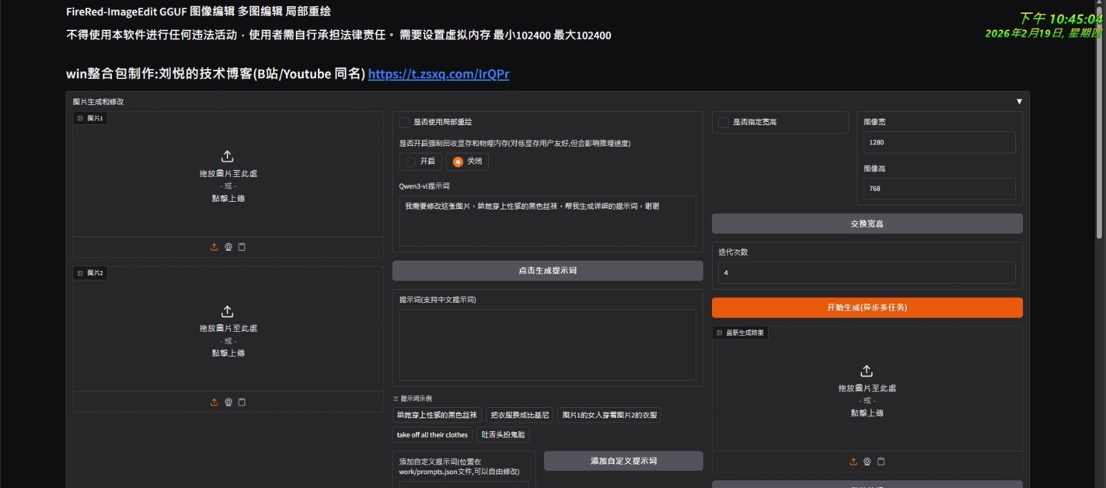 正文摘要:《FireRed-ImageEdit》核心主題 快速閱讀精華 🚀 強大AI圖像編輯工具: 基於ComfyUI,提供一鍵啟動的便利性,免去複雜設定。 支援NSFW內容生成與局部重繪,精準編輯圖片特定區域。 8GB顯存即可運作,並支援新一代50系列顯示卡。 內建自動提示詞、批量任務佇列,提升創作效率。 可自訂整理度,並進行多圖同時編輯。 .article-toc { border: 1px solid #ddd; padding: 15px; background: #f9f9f9; border-radius: 6px; margin: 20px 0; width: 90%;}.article-toc br { display: none;}.toc-title { /* --- 以下是合併進來的 H2 樣式 --- */ font-size: 1.25em; /* 125% */ border-left: 5px solid #2A98DA; border-radius: 2px; padding: 5px 0px 5px 10px; font-weight: bold; margin: 0 0 15px 0; /* 調整了 margin,只留下方 15px */ color: #333; line-height: 1.5; background-color: #f8f8f8; /* --- 樣式合併結束 --- */}.toc-list { list-style: none; padding-left: 0;}.toc-list li { margin: 8px 0;}.toc-list a { color: #2A98DA; text-decoration: none;}.toc-list a:hover { text-decoration: underline;}.back-to-top { display: block; margin-top: 10px; font-size: 0.9em; color: #666;}本文章目錄 軟體規格與介紹document.currentScript.previousElementSibling.href = location.href.split('#')[0] + '#info'; 軟體截圖document.currentScript.previousElementSibling.href = location.href.split('#')[0] + '#screenshot'; 附件下載 🔽document.currentScript.previousElementSibling.href = location.href.split('#')[0] + '#download'; 【語 言】:多國語言 【軟體名稱】:FireRed-ImageEdit-GGUF 【版本資訊】:GGUF (v0220) 【軟體大小】:30.5 GB 【更新日期】:5 小時前 【使用權限】:一鍵啟動版 【系統支持】:Windows (需NVIDIA顯示卡,顯存8GB以上) 【軟體介紹】: FireRed-ImageEdit-GGUF 是一款功能強大的AI圖像生成與編輯工具,它最大的特色就是提供「一鍵啟動」的便利安裝方式,讓使用者免去繁複的環境設定步驟,快速進入AI繪圖的世界。這款軟體是基於知名的ComfyUI工作流程所打造,並封裝成GGUF格式,讓部署變得更加簡單。 在功能面上,它不僅支援一般的圖像生成,更提供了專業的「局部重繪」功能,讓你可以只針對圖片中的某個特定區域進行修改或重畫,而不影響其他部分,這對於細節調整和創意編輯來說非常實用。此外,它也明確支援NSFW(不適合工作場所)內容的生成,給予創作者更自由的發揮空間。 對於硬體要求相對親民,官方標示僅需8GB的顯示卡記憶體即可運作,並且已經支援新一代的NVIDIA 50系列顯示卡。軟體還內建了許多提升效率的功能,例如「自動提示詞」可以輔助你生成更準確的圖片描述,「批量任務佇列」則能讓你一次排定多個生成任務,節省等待時間。同時,它也允許使用者自訂輸出圖片的整理度,並能進行多張圖片同時編輯,功能相當全面。 【軟體截圖】: 👉 GM後台版 遊戲 推薦 ⬇️⬇️⬇️ 快速玩各種二次元動漫手遊app 【附件下載】: 下載 0220 |