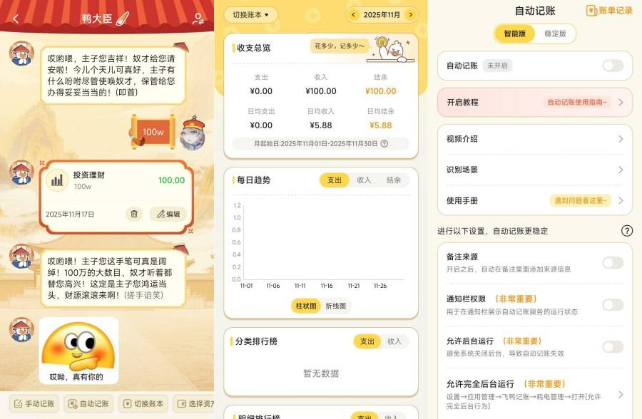 正文摘要:《飛鴨AI記帳》核心主題 快速閱讀精華 🚀 智慧理財超輕鬆: 支援微信、支付寶等多場景自動記帳,懶人必備! 語音一鍵錄入,說句話就能記多筆帳,超方便。 可自訂AI陪聊角色,邊聊天邊記帳,告記帳枯燥感。 多帳本分類、資產總覽與預算提醒,搭配AI圖表,收支一目瞭然。 .article-toc { border: 1px solid #ddd; padding: 15px; background: #f9f9f9; border-radius: 6px; margin: 20px 0; width: 90%;}.article-toc br { display: none;}.toc-title { /* --- 以下是合併進來的 H2 樣式 --- */ font-size: 1.25em; /* 125% */ border-left: 5px solid #2A98DA; border-radius: 2px; padding: 5px 0px 5px 10px; font-weight: bold; margin: 0 0 15px 0; /* 調整了 margin,只留下方 15px */ color: #333; line-height: 1.5; background-color: #f8f8f8; /* --- 樣式合併結束 --- */}.toc-list { list-style: none; padding-left: 0;}.toc-list li { margin: 8px 0;}.toc-list a { color: #2A98DA; text-decoration: none;}.toc-list a:hover { text-decoration: underline;}.back-to-top { display: block; margin-top: 10px; font-size: 0.9em; color: #666;}本文章目錄 規格化資訊document.currentScript.previousElementSibling.href = location.href.split('#')[0] + '#info'; 軟體截圖document.currentScript.previousElementSibling.href = location.href.split('#')[0] + '#screenshot'; 附件下載 🔽document.currentScript.previousElementSibling.href = location.href.split('#')[0] + '#download'; 【語 言】:中文 【軟體名稱】:飛鴨AI記帳 【版本資訊】:v3.1.7 會員版 【軟體大小】:16MB 【更新日期】:2026-02-24 【使用權限】:會員版 【系統支持】:Android 2.2+ 及更高版本 【軟體介紹】: 這是一款號稱有溫度的智能財務工具!想要輕鬆養成理財習慣嗎?這款《飛鴨AI記帳》絕對是你的好幫手。它最大的特色就是支援多場景自動記帳,像是微信、支付寶等常用支付管道都能幫你自動抓取記錄,省去手動輸入的麻煩。 記帳方式也很多元,除了手動輸入,還可以用語音錄入,你只要說一句話,它就能幫你記下多筆帳目,超級便捷。更特別的是,它還內建了AI陪聊功能,你可以自訂喜歡的聊天角色,在聊天的過程中就把帳記好了,讓記帳這件枯燥的事多了點情緒價值。 在管理方面,它提供多帳本分類,讓你清楚區分生活開銷、旅遊基金等不同用途。還能進行全資產管控,設定預算提醒,避免超支。所有的收支數據都會透過AI生成視覺化圖表,讓你一眼就能看懂自己的財務狀況,輕鬆掌握金流,養成良好的理財習慣。 【軟體截圖】: 👉 GM後台版 遊戲 推薦 ⬇️⬇️⬇️ 快速玩各種二次元動漫手遊app 【附件下載】: UC網盤下載點 百度網盤下載點 (提取碼: npux) 夸克網盤下載點 藍奏雲下載點 藍奏地址打不開教學:lanzoul 改成lanzoux 就是把l替換成m或者w 即可正常訪問《123雲盤》免中國電話免註冊下載 APP安裝、免會員VIP高速下載BUG利用、檔案管理完整教學 PS:複製連結到瀏覽器打開下載! |