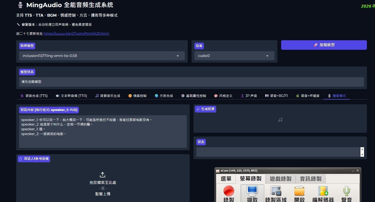正文摘要:《Ming-omni-tts》核心主題 快速閱讀精華 🚀 一鍵啟動超方便: 最新 2026-0226 版本,修正所有已知錯誤,穩定性再升級! 免繁複設定,一鍵啟動整合包,新手也能輕鬆上手。 支援生成語音、音樂、音效,多功能 AI 音訊工具。 .article-toc { border: 1px solid #ddd; padding: 15px; background: #f9f9f9; border-radius: 6px; margin: 20px 0; width: 90%;}.article-toc br { display: none;}.toc-title { /* --- 以下是合併進來的 H2 樣式 --- */ font-size: 1.25em; /* 125% */ border-left: 5px solid #2A98DA; border-radius: 2px; padding: 5px 0px 5px 10px; font-weight: bold; margin: 0 0 15px 0; /* 調整了 margin,只留下方 15px */ color: #333; line-height: 1.5; background-color: #f8f8f8; /* --- 樣式合併結束 --- */}.toc-list { list-style: none; padding-left: 0;}.toc-list li { margin: 8px 0;}.toc-list a { color: #2A98DA; text-decoration: none;}.toc-list a:hover { text-decoration: underline;}.back-to-top { display: block; margin-top: 10px; font-size: 0.9em; color: #666;}本文章目錄 軟體規格與介紹document.currentScript.previousElementSibling.href = location.href.split('#')[0] + '#info'; 軟體截圖document.currentScript.previousElementSibling.href = location.href.split('#')[0] + '#screenshot'; 附件下載 🔽document.currentScript.previousElementSibling.href = location.href.split('#')[0] + '#download'; 【語 言】:多國語言 【軟體名稱】:Ming-omni-tts 【版本資訊】:2026-0226 【軟體大小】:14.3 GB 【更新日期】:2026-02-26 【使用權限】:一鍵啟動整合包 【系統支持】:Windows PC 【軟體介紹】: 這款《Ming-omni-tts》是一款功能強大的 AI 音訊生成工具,最新版本號為 2026-0226。這次更新主要針對先前版本的所有錯誤進行了修正,讓軟體運行更加穩定流暢,大幅提升使用體驗。 對於想要快速體驗 AI 音訊生成功能的朋友來說,這個版本最大的亮點就是「一鍵啟動整合包」。開發者已經將所有必要的元件和設定都打包好了,你不需要再花時間去研究複雜的環境建置或依賴庫安裝,下載後基本上就能直接使用,非常適合剛入門的新手。 在功能方面,它支援生成多種類型的音訊內容,包括「語音合成」、「音樂生成」以及「音效製作」。無論你是需要為影片配音、創作背景音樂,還是設計遊戲音效,這款工具都能提供強大的 AI 輔助,讓音訊創作變得更加簡單有趣。 【軟體截圖】: 👉 GM後台版 遊戲 推薦 ⬇️⬇️⬇️ 快速玩各種二次元動漫手遊app 【附件下載】: Ming-omni-tts 2026-0226 一鍵啟動整合包 |