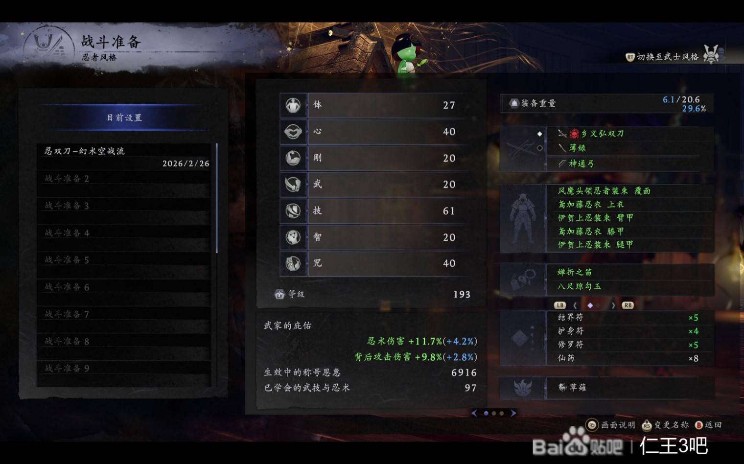 正文摘要:《仁王3》忍者雙刀無限空戰幻術流 快速閱讀精華 🚀 核心輸出:幻術傷害,同時喫滿「天舞刀」滯空增傷、空中加傷、背部加傷、異常加傷等多重乘區💪 武家守護靈:服部武家搭配草薙守護靈,最大化忍術與背傷加成🔑 武技核心:「天舞刀」奧義 + 「繁雨」滯空武技,建立資源循環體系⚡ 戰鬥優勢:滯空繞背規避傷害,專剋大體型妖怪,可實現真正意義上的無限空戰不落地 《仁王3》忍雙刀無限空戰幻術流 核心機制整理 我們實測後發現,這套配裝的精髓在於三重資源循環的巧妙串聯。首先,「繁雨」作為滯空武技能快速充能忍術與守護靈技;接著,忍術與守護靈技釋放時又會互相充能並回復精力;最後透過草薙守護靈技「天之滴」搭配奧傳級別幻術,完成守護靈技槽、忍術槽、繁雨所需精力三者的完美閉環。 這套體系讓忍雙刀在單一武器系統內就具備完整的擊殺能力,無需頻繁切換武器或依賴隊友支援。 《仁王3》忍雙刀無限空戰幻術流 實戰操作技巧 起手循環 首先啟動「天舞刀」奧義進入滯空狀態接著使用「繁雨」快速累積忍術與守護靈技能量釋放草薙「天之滴」或奧傳幻術進行爆發輸出利用技能回精效果維持滯空,重複步驟2-3 對策大型妖怪 我們發現這套打法特別適合應對大體型妖怪,原因有三: 滯空繞背可規避地面範圍技空中減傷詞條提升生存背部攻擊乘區穩定觸發 操作門檻相對親民,只要掌握節奏即可實現真正意義上的無限空戰不落地。 《仁王3》忍雙刀無限空戰幻術流 常見問題Q&A 以下廣告滑動後還有帖子內容var custom_call_MIR = function (params) {if ( params === null || params.hasAd === false ) {var divRowSide;for (let index = 0; index < ONEADs.length; index++) {if (ONEADs[index].pub.player_mode === "mobile-inread") {divRowSide = ONEADs[index].pub.slotobj;}}var ins = document.createElement('ins');ins.className = 'clickforceads';ins.setAttribute('style', 'display:inline-block;');ins.setAttribute('data-ad-zone', '18264');divRowSide.appendChild(ins);var js = document.createElement('script');js.async = true;js.type = 'text/javascript';js.setAttribute('src', '//cdn.holmesmind.com/js/init.js');js.onload = function(){console.log('[ONEAD MIR] ClickForce Loaded');};divRowSide.appendChild(js);}};var _ONEAD = {};_ONEAD.pub = {};_ONEAD.pub.slotobj = document.getElementById("oneadMIRDFPTag");_ONEAD.pub.slots = ["div-onead-ad"];_ONEAD.pub.uid = "1000509";_ONEAD.pub.external_url = "https://onead.onevision.com.tw/";_ONEAD.pub.scopes = ["spotbuy", "speed"];_ONEAD.pub.player_mode_div = "div-onead-ad";_ONEAD.pub.player_mode = "mobile-inread";_ONEAD.pub.queryAdCallback = custom_call_MIR;var ONEAD_pubs = ONEAD_pubs || [];ONEAD_pubs.push(_ONEAD);var truvidScript = document.createElement('script'); truvidScript.async = true; truvidScript.setAttribute('data-cfasync','false'); truvidScript.type = 'text/javascript'; truvidScript.src = '//stg.truvidplayer.com/index.php?sub_user_id=597&widget_id=3309&playlist_id=2381&m=a&cb=' + (Math.random() * 10000000000000000); var currentScript = document.currentScript || document.scripts[document.scripts.length - 1]; currentScript.parentNode.insertBefore(truvidScript, currentScript.nextSibling); Q:沒有草薙守護靈可以玩這套嗎? 草薙是這套體系的核心,「天之滴」負責串聯整個資源循環。若無草薙,建議改玩地面型忍術流派或先推進度取得該守護靈。 Q:「繁雨」和「天舞刀」要優先點滿哪個? 建議先點滿「天舞刀」奧義解鎖滯空機制,再投資「繁雨」強化循環效率。兩者相輔相成,但奧義是啟動一切的基礎。 Q:這套打BOSS會不會輸出不足? 我們實測面對大型妖鬼類BOSS時,由於背部乘區穩定觸發,實際DPS相當可觀。但對人形BOSS需調整繞背節奏,建議搭配雷或水異常增加控場。 Q:裝備詞條有優先順序嗎? 忍術加傷 > 空中加傷 > 背部加傷 > 屬性加傷。異常加傷需配合具體幻術屬性選擇,建議先確定主力輸出幻術再堆疊對應異常。 Q:精力不夠用怎麼辦? 請檢查是否確實觸發了守護靈技與幻術的回精效果。循環中每次釋放技能都應有明顯精力回復,若仍不足可考慮裝備「精力消耗降低」或「攻擊回精」詞條。 《仁王3》忍雙刀無限空戰幻術流 重點回顧 核心邏輯:透過「繁雨」充能 → 釋放幻術/守護靈技回精 → 維持滯空循環關鍵配置:服部武家 + 草薙守護靈為不可替換的組合實戰優勢:高機動性、高生存、專精大型妖怪的特化解法 |