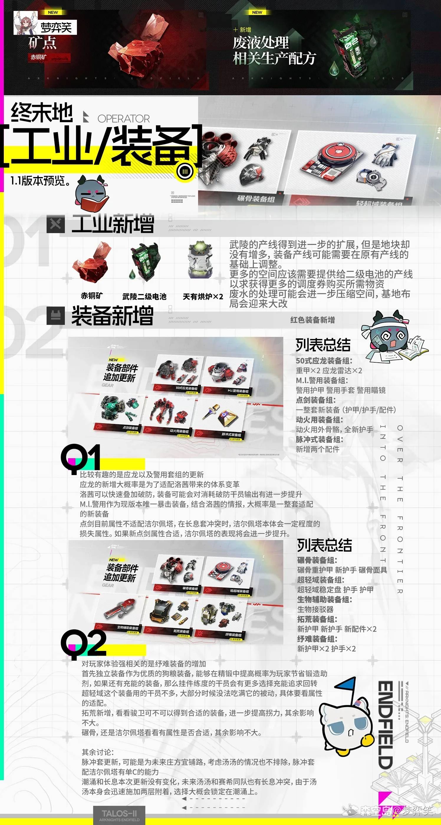 正文摘要:《明日方舟:終末地》1.1版本 快速閱讀精華 🚀 核心新增:赤銅礦礦脈 + 污水處理系統,產線格局大洗牌💪 裝備來源:新紅裝從赤銅礦產出,舊裝備「武陵原武器原件」可平調繼承🔑 產線警報:地塊未增但烘爐+2,配合二級電池需求,調度券產線需重新規劃⚠️ 闢謠重點:新紅裝屬性與舊裝備無差異,不存在「爆金幣」淘汰問題💡 配裝預測: 潮湧套:快速疊加兩層附着,單C配潔爾佩塔收益高脈衝套:更新後單C場景可考慮洛茜:警用套組(暴擊+物火混傷)適配度高 1.1版本工業系統改動總覽 我們實測梳理後發現,這次1.1版本對工業系統的改動比表面上更深層。除了大家一眼能看到的新材料,產線的邏輯重心其實發生了轉移。 👉 GM後台版 遊戲 推薦 ⬇️⬇️⬇️ 快速玩各種二次元動漫手遊app 首先,赤銅礦作爲全新戰略資源登場,直接綁定了新紅裝的生產鏈。這意味着老玩家囤積的武陵原武器原件雖然不會作廢——官方設計上是平調繼承機制——但新畢業裝的獲取路徑已經完全不同。 污水處理系統則是另一個容易被忽略的重點。我們推測這套系統可能涉及環保型產線的收益加成,或是特定高階材料的解鎖條件,具體機制有待上線後實測驗證。 產線調整策略:為什麼你的調度券又不夠了? 這是很多老玩家會遇到的痛點。我們分析後發現關鍵矛盾在於: 地塊零增長:可建設區域沒有擴展烘爐+2:冶煉產能上限提升二級電池需求:新裝備或新系統可能消耗大量電池 這三點疊加的結果就是——你必須重新規劃調度券產線。我們的建議是上線後優先測試「赤銅礦→新紅裝」與「原產線→電池」兩條路徑的資源衝突程度,再決定大規模改建時機。 新裝備深度整理:潮湧、脈衝、警用套組怎麼選? 新紅裝屬性闢謠 先打預防針:我們確認新紅裝基礎屬性與舊裝備處於同一數值區間,不存在「新裝全面碾壓舊裝」的逼氪設計。舊投資不會瞬間貶值,這點可以放心。 潮湧套:快速附着流的核心 湯湯提出的配裝思路我們相當認同: 機制優勢:快速疊加兩層元素附着觸發條件:一下攻擊即可喫滿被動加成最佳搭檔:潔爾佩塔(單C配置) 這套的核心價值在於附着效率的質變,適合追求爆發窗口期的打法。 脈衝套:更新後的單C新選項 脈衝套在1.1有數值或機制更新。我們評估後認爲,如果潮湧套的附着疊加在你的隊伍中難以穩定觸發,脈衝套的直傷穩定性可能是更務實的選擇——尤其是潔爾佩塔被其他隊伍借走時。 警用套組:洛茜的預定畢業裝? 根據現有情報,洛茜的傷害機制為: 暴擊率收益物理+火焰混合傷害 而警用套組在1.1恰好更新了一整套,屬性方向完全吻合。參考伊馮的實裝規律,這個推測的置信度相當高。當然,具體數值還是要等角色上線後實測。 《明日方舟:終末地》1.1工業裝備_常見問題Q&A 以下廣告滑動後還有帖子內容var custom_call_MIR = function (params) {if ( params === null || params.hasAd === false ) {var divRowSide;for (let index = 0; index < ONEADs.length; index++) {if (ONEADs[index].pub.player_mode === "mobile-inread") {divRowSide = ONEADs[index].pub.slotobj;}}var ins = document.createElement('ins');ins.className = 'clickforceads';ins.setAttribute('style', 'display:inline-block;');ins.setAttribute('data-ad-zone', '18264');divRowSide.appendChild(ins);var js = document.createElement('script');js.async = true;js.type = 'text/javascript';js.setAttribute('src', '//cdn.holmesmind.com/js/init.js');js.onload = function(){console.log('[ONEAD MIR] ClickForce Loaded');};divRowSide.appendChild(js);}};var _ONEAD = {};_ONEAD.pub = {};_ONEAD.pub.slotobj = document.getElementById("oneadMIRDFPTag");_ONEAD.pub.slots = ["div-onead-ad"];_ONEAD.pub.uid = "1000509";_ONEAD.pub.external_url = "https://onead.onevision.com.tw/";_ONEAD.pub.scopes = ["spotbuy", "speed"];_ONEAD.pub.player_mode_div = "div-onead-ad";_ONEAD.pub.player_mode = "mobile-inread";_ONEAD.pub.queryAdCallback = custom_call_MIR;var ONEAD_pubs = ONEAD_pubs || [];ONEAD_pubs.push(_ONEAD);var truvidScript = document.createElement('script'); truvidScript.async = true; truvidScript.setAttribute('data-cfasync','false'); truvidScript.type = 'text/javascript'; truvidScript.src = '//stg.truvidplayer.com/index.php?sub_user_id=597&widget_id=3309&playlist_id=2381&m=a&cb=' + (Math.random() * 10000000000000000); var currentScript = document.currentScript || document.scripts[document.scripts.length - 1]; currentScript.parentNode.insertBefore(truvidScript, currentScript.nextSibling); Q:舊裝備真的不會淘汰嗎? 我們覈實後的結論是:新紅裝與舊裝備數值同級,差異僅在特效機制。你的+15舊裝可以繼續用,但新角色可能有機制綁定新裝。 Q:赤銅礦要重新開礦點嗎? 目前情報顯示赤銅礦屬於新增礦脈類型,大概率需要探索新區域或完成特定任務解鎖採集權限。 Q:污水處理系統一定要建嗎? 從設計邏輯推測,這可能是高階產線的前置條件,或是環保評級系統的核心建築。建議優先建造測試收益。 Q:調度券產線怎麼改最划算? 我們的保守策略:先保留原電池產線,用新增的兩個烘爐測試赤銅礦冶煉效率,確認瓶頸後再大規模調整。 Q:洛茜一定用警用套嗎? 情報指向性很高,但「一定」不敢說死。如果上線後暴擊轉傷或元素附着的收益模型有變,潮湧套逆襲也不是不可能。 《明日方舟:終末地》1.1版本重點回顧 赤銅礦與污水處理系統是產線重構的核心變量,舊玩家需預留改建資源裝備選擇優先看機制匹配度:潮湧(附着速度)、脈衝(直傷穩定)、警用(暴擊混傷)新紅裝無屬性膨脹,但新角色可能有機制綁定,保留彈性配
