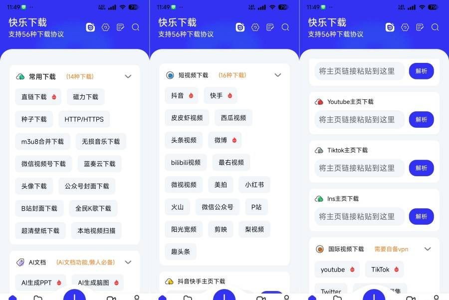 正文摘要:《快樂下載》核心主題 快速閱讀精華 🚀 爲什麼選擇快樂下載? 整合56種下載協議,磁力、直鏈、無損音樂通通搞定! 支援抖音、快手、B站等平臺短視頻去水印下載。 操作超簡單,複製鏈接即可開始高速下載。 界面簡潔,功能強大,一App滿足多種下載需求。 本文章目錄.article-toc { border: 1px solid #ddd; padding: 15px; background: #f9f9f9; border-radius: 6px; margin: 20px 0; width: 95%;}.toc-title { /* --- 以下是合併進來的 H2 樣式 --- */ font-size: 1.25em; /* 125% */ border-left: 5px solid #2A98DA; border-radius: 2px; padding: 5px 0px 5px 10px; font-weight: bold; margin: 0 0 15px 0; /* 調整了 margin,只留下方 15px */ color: #333; line-height: 1.5; background-color: #f8f8f8; /* --- 樣式合併結束 --- */}.toc-list { list-style: none; padding-left: 0;}.toc-list li { margin: 8px 0;}.toc-list a { color: #2A98DA; text-decoration: none;}.toc-list a:hover { text-decoration: underline;}.back-to-top { display: block; margin-top: 10px; font-size: 0.9em; color: #666;} 規格化資訊模板document.currentScript.previousElementSibling.href = location.href.split('#')[0] + '#info'; 軟件截圖document.currentScript.previousElementSibling.href = location.href.split('#')[0] + '#screenshot'; 附件下載 🔽document.currentScript.previousElementSibling.href = location.href.split('#')[0] + '#download'; 【語 言】:簡體中文 【軟件名稱】:快樂下載 (會員版) 【版本資訊】:v1.412 【軟件大小】:46 MB 【更新日期】:2026-03-09 【使用權限】:會員版 【系統支持】:Android 【軟件介紹】: 今天要跟大家分享這款超實用的下載神器——《快樂下載》會員版!它是一款功能超級強大的Android下載軟件,最大特色就是內建了高達56種下載協議,幾乎涵蓋了所有常見的下載需求。 無論你是想下載磁力鏈接、一般直鏈文件,還是想保存無損音樂,它都能輕鬆搞定。更厲害的是,它還是短視頻愛好者的福音!支援抖音、快手、皮皮蝦、B站等熱門平臺的短視頻去水印下載,讓你輕鬆收藏喜歡的影片。 軟件界面設計得非常簡潔明瞭,操作上完全沒有難度。你只需要複製想下載內容的鏈接,然後打開App,它通常就會自動偵測並開始下載了,非常方便。對於經常需要在手機上下載各種資源的朋友來說,這款整合了多種協議的《快樂下載》絕對能大幅提升你的效率! 【軟件截圖】: 👉 GM後台版 遊戲 推薦 ⬇️⬇️⬇️ 快速玩各種二次元動漫手遊app 【附件下載】: 快樂下載會員版 v1.412.apk 推薦->藍奏雲快速直連整理下載網址 藍奏地址打不開教學:lanzoul 改成lanzoux 就是把l替換成m或者w 即可正常訪問《123雲盤》免中國電話免註冊下載 APP安裝、免會員VIP高速下載BUG利用、檔案管理完整教學 |