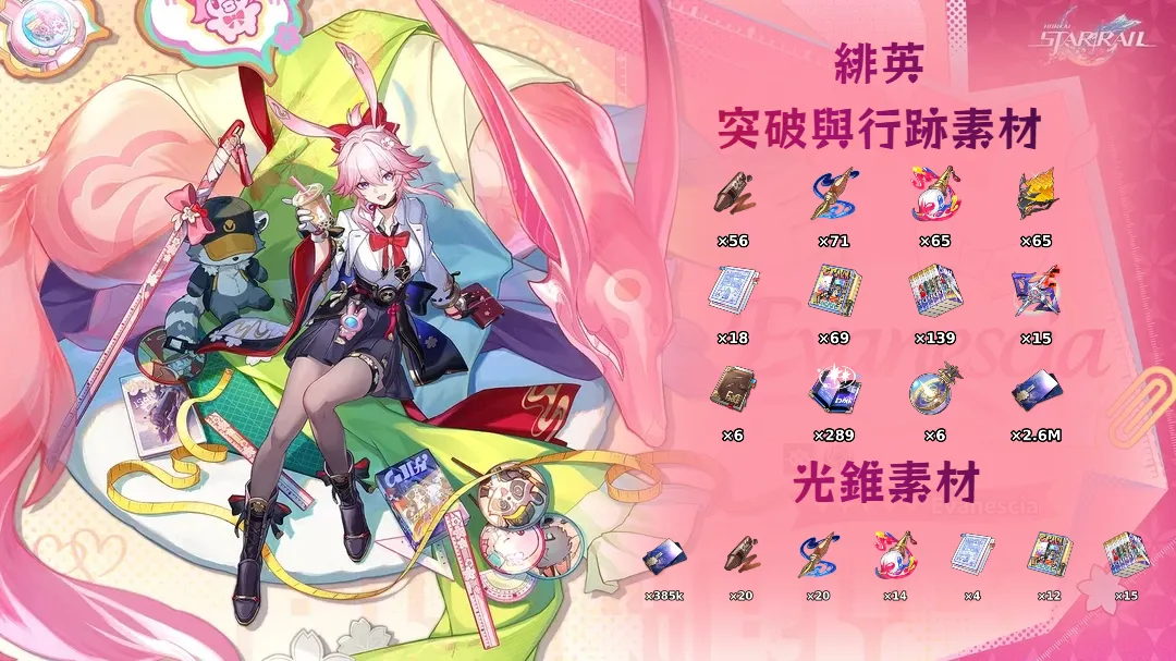 正文摘要:《崩壞:星穹鐵道》緋英養成素材快速閱讀精華 🚀 核心煩惱解決:緋英4.2版本上線前,我們幫你算好所有素材數量,讓你開拓力不浪費💰 信用點總需求:角色本體約257萬 + 專屬光錐38.5萬 = 295.5萬信用點📦 最大痛點素材:《絨絨號》典藏版合集需要119個(角色104個+光錐15個),建議現在開始刷⏰ 週本限制素材:滅流絕溢的緘默需要9個,每週限領3次,至少提早3週開始囤🎯 我們的建議:開拓力有限時,核心行跡先升7級,後面三級再慢慢補 本文章目錄.article-toc { border: 1px solid #ddd; padding: 15px; background: #f9f9f9; border-radius: 6px; margin: 20px 0; width: 95%;}.toc-title { /* --- 以下是合併進來的 H2 樣式 --- */ font-size: 1.25em; /* 125% */ border-left: 5px solid #2A98DA; border-radius: 2px; padding: 5px 0px 5px 10px; font-weight: bold; margin: 0 0 15px 0; /* 調整了 margin,只留下方 15px */ color: #333; line-height: 1.5; background-color: #f8f8f8; /* --- 樣式合併結束 --- */}.toc-list { list-style: none; padding-left: 0;}.toc-list li { margin: 8px 0;}.toc-list a { color: #2A98DA; text-decoration: none;}.toc-list a:hover { text-decoration: underline;}.back-to-top { display: block; margin-top: 10px; font-size: 0.9em; color: #666;} 緋英素材總覽與核心數據document.currentScript.previousElementSibling.href = location.href.split('#')[0] + '#overview'; 專屬光錐素材需求document.currentScript.previousElementSibling.href = location.href.split('#')[0] + '#lightcone'; 等級突破素材拆解document.currentScript.previousElementSibling.href = location.href.split('#')[0] + '#breaktdrough'; 行跡升級素材心得分享document.currentScript.previousElementSibling.href = location.href.split('#')[0] + '#traces'; 素材刷取優先順序建議document.currentScript.previousElementSibling.href = location.href.split('#')[0] + '#priority'; 常見問題Q&Adocument.currentScript.previousElementSibling.href = location.href.split('#')[0] + '#faq'; 緋英素材總覽與核心數據 緋英是《崩壞:星穹鐵道》4.2版本即將登場的限定五星物理屬性歡愉命途角色。我們實測整理後發現,這位角色的養成資源消耗相當可觀,如果你已經決定要抽,現在就可以開始預刷素材了。 素材刷取優先順序建議 根據我們的實戰經驗,建議依照以下順序規劃你的開拓力: 第一優先:滅流絕溢的緘默(週本) 每週限領3次,9個需要至少3週,現在就要開始打第二優先:《絨絨號》典藏版合集 角色+光錐共需119個,日常副本累積最慢,建議每天留體力刷第三優先:侵略凝塊(突破素材) 65個全部來自溟簇之形·凝滯虛影,等級70一次要35個最喫重第四優先:命運的足跡 活動、模擬宇宙、遺器本副產物,相對容易取得最後補齊:信用點與經驗書 花萼金藏可以短期集中刷,急用時再補 《崩壞:星穹鐵道》緋英養成重點回顧 緋英完整養成需要約295.5萬信用點(角色257萬+光錐38.5萬),是4.2版本資源消耗相當高的限定角色《絨絨號》典藏版合集是最大瓶頸,角色行跡就要104個,加上光錐共119個,建議從現在開始每日累積滅流絕溢的緘默受週本限制,9個需要至少3週,務必提前規劃 以下廣告滑動後還有帖子內容var custom_call_MIR = function (params) {if ( params === null || params.hasAd === false ) {var divRowSide;for (let index = 0; index < ONEADs.length; index++) {if (ONEADs[index].pub.player_mode === "mobile-inread") {divRowSide = ONEADs[index].pub.slotobj;}}var ins = document.createElement('ins');ins.className = 'clickforceads';ins.setAttribute('style', 'display:inline-block;');ins.setAttribute('data-ad-zone', '18264');divRowSide.appendChild(ins);var js = document.createElement('script');js.async = true;js.type = 'text/javascript';js.setAttribute('src', '//cdn.holmesmind.com/js/init.js');js.onload = function(){console.log('[ONEAD MIR] ClickForce Loaded');};divRowSide.appendChild(js);}};var _ONEAD = {};_ONEAD.pub = {};_ONEAD.pub.slotobj = document.getElementById("oneadMIRDFPTag");_ONEAD.pub.slots = ["div-onead-ad"];_ONEAD.pub.uid = "1000509";_ONEAD.pub.external_url = "https://onead.onevision.com.tw/";_ONEAD.pub.scopes = ["spotbuy", "speed"];_ONEAD.pub.player_mode_div = "div-onead-ad";_ONEAD.pub.player_mode = "mobile-inread";_ONEAD.pub.queryAdCallback = custom_call_MIR;var ONEAD_pubs = ONEAD_pubs || [];ONEAD_pubs.push(_ONEAD);var truvidScript = document.createElement('script'); truvidScript.async = true; truvidScript.setAttribute('data-cfasync','false'); truvidScript.type = 'text/javascript'; truvidScript.src = '//stg.truvidplayer.com/index.php?sub_user_id=597&widget_id=3309&playlist_id=2381&m=a&cb=' + (Math.random() * 10000000000000000); var currentScript = document.currentScript || document.scripts[document.scripts.length - 1]; currentScript.parentNode.insertBefore(truvidScript, currentScript.nextSibling); 緋英養成素材常見問題Q&A Q:緋英什麼時候上線?現在開始刷素材會不會太早? 我們建議現在就開始刷,尤其是滅流絕溢的緘默這種週本限制素材。緋英預計在4.2版本登場,提前3-4週準備剛剛好,其他常駐素材也可以邊刷邊囤。 Q:如果不抽專屬光錐,可以省多少素材? 可以省下38.5萬信用點,以及《絨絨號》系列素材共31個、童真蠟筆/造夢蘸鋼/夢現管錐各20/20/14個。但專屬光錐通常有最佳適配性,建議至少準備替代方案的光錐素材。 Q:侵略凝塊只能在「龍骸古城」斯緹科西亞刷嗎? 是的,侵略凝塊是溟簇之形·凝滯虛影的專屬掉落,位置固定在「龍骸古城」斯緹科西亞。建議解鎖該區域後,優先把開拓力投資在這裡。 Q:行跡先升哪個技能最划算? 我們建議優先順序為:戰技>終結技>天賦>歡愉技能>普攻。戰技和終結技是緋英的主要輸出手段,先升到7級確保基本戰力,後面三級等資源充裕再