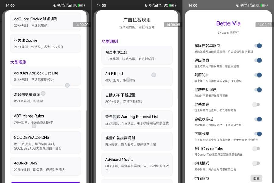 正文摘要:replyreload += ',' + 2446225;《BetterVia全能拓展模組》核心主題 快速閱讀精華 🔓 權限全開超自由: 解除網站白名單限制,突破瀏覽功能壁壘,暢享完整網頁服務! 超級隱身模式 + 截圖防護,雙重守護你的瀏覽隱私 🔒 按網址歸類Cookie,批次刪除/修改管理超高效! 下載視窗新增分享按鈕,檔案跨App分享一鍵搞定 🚀 相容腳本倉庫與去廣告規則,告別擾人廣告幹擾 🛠️ 安裝步驟超簡單: LSPosed中啟用模組,選擇適配Via瀏覽器 或直接使用免Root框架也能運行! 打開Via瀏覽器,在設定中找到BetterVia模組入口即可 本文章目錄.article-toc { border: 1px solid #ddd; padding: 15px; background: #f9f9f9; border-radius: 6px; margin: 20px 0; width: 95%;}.toc-title { /* --- 以下是合併進來的 H2 樣式 --- */ font-size: 1.25em; /* 125% */ border-left: 5px solid #2A98DA; border-radius: 2px; padding: 5px 0px 5px 10px; font-weight: bold; margin: 0 0 15px 0; /* 調整了 margin,只留下方 15px */ color: #333; line-height: 1.5; background-color: #f8f8f8; /* --- 樣式合併結束 --- */}.toc-list { list-style: none; padding-left: 0;}.toc-list li { margin: 8px 0;}.toc-list a { color: #2A98DA; text-decoration: none;}.toc-list a:hover { text-decoration: underline;}.back-to-top { display: block; margin-top: 10px; font-size: 0.9em; color: #666;} 規格化資訊document.currentScript.previousElementSibling.href = location.href.split('#')[0] + '#info'; 軟體截圖document.currentScript.previousElementSibling.href = location.href.split('#')[0] + '#screenshot'; 安裝教學心得分享document.currentScript.previousElementSibling.href = location.href.split('#')[0] + '#install'; 附件下載 🔽document.currentScript.previousElementSibling.href = location.href.split('#')[0] + '#download'; 規格化資訊模板 【語 言】:繁體中文(介面) 【軟體名稱】:BetterVia 全能拓展模組 【版本資訊】:v1.8.0 【軟體大小】:614.91KB 【更新日期】:2026-03-30 【使用權限】:修改版 / 需搭配LSPosed或免Root框架 【系統支持】:Android(需搭配Via瀏覽器使用) 【軟體介紹】: BetterVia 是一款專為 Via 瀏覽器設計的 Xposed 模組,能夠大幅擴展原生瀏覽器的功能邊界。如何安裝與設定?步驟心得分享如下! 這款模組的核心價值在於「權限解鎖」—— 許多網站會對輕量化瀏覽器設下白名單限制,導致部分功能無法正常使用。BetterVia 能夠有效突破這些技術壁壘,讓你暢享完整的網頁服務體驗。 在隱私防護方面,模組內建超級隱身模式與截圖防護雙重機制。無論是防止瀏覽紀錄外洩,或是避免敏感內容被截圖留存,都能全方位守護你的上網安全。 個性化設定也是一大亮點!一鍵更換主題、護眼模式調節,甚至能夠自訂屏蔽特定介面元件,打造真正專屬於你的瀏覽環境。下載功能同樣獲得強化 —— 下載視窗直接整合分享按鈕,檔案無需額外操作就能跨應用分享,流程更加順暢直覺。 Cookie 管理功能採用按網址歸類的邏輯,支援批次刪除與修改,對於重視資料管理的進階用戶來說相當實用。此外,模組還相容腳本倉庫與去廣告規則,可依個人需求自由拓展工具能力,徹底告別冗餘幹擾。 【軟體截圖】: 👉 GM後台版 遊戲 推薦 ⬇️⬇️⬇️ 快速玩各種二次元動漫手遊app 如何安裝 BetterVia 模組?步驟心得分享 方法一:LSPosed 框架(推薦) 確認手機已完成 Root 並安裝 LSPosed 框架 安裝 BetterVia 模組 APK 進入 LSPosed 管理器,啟用 BetterVia 模組 模組作用域選擇「Via 瀏覽器」 強制停止 Via 瀏覽器後重新開啟 進入 Via 設定 → 即可找到 BetterVia 模組入口 方法二:免 Root 框架 使用如 LSPatch、太極等免 Root 框架工具 將 Via 瀏覽器與 BetterVia 模組打包整合 安裝處理後的 APK 即可直接使用 無需 Root 權限,適合未解鎖裝置 【附件下載】: 所有站內附件皆會附上安全掃描報告請會員查看純淨度百分比後判斷使用(adsbygoogle = window.adsbygoogle || []).push({});相關檔案須知:取得檔案前,請先詳細閱讀文章內容避免不必要錯誤與誤會發生。也可多參考文章討論樓層內容了解附件檔案相關討論資訊。 【此文章部分內容隱藏中】 解除隱藏說明教學點擊下方 繼續閱讀文章 後請仔細觀看文章內容 並依照指示進行下一步最後完成解除隱藏後系統會回到此文章自動顯示隱藏內容~繼續閱讀 replyreload += ',' + 2446225; |