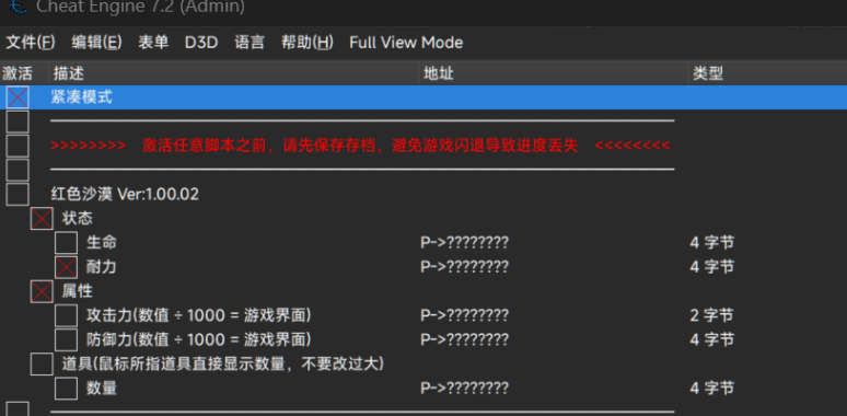 正文摘要:replyreload += ',' + 2447508; 《赤血沙漠》CE繁體中文化腳本 快速閱讀精華 🚀 版本資訊:CT腳本已更新至 v1.1.4,支援遊戲 1.0.2.00 版本(2026年4月4日官方更新後仍可正常使用)💪 核心功能: 無限生命、耐力、精神力瞬移功能(支援地面瞬移與高空飛行模式)固定座標瞬移(可記錄並傳送至指定地點)道具不減反增、拾取倍率調整角色屬性修改(攻擊力、防禦力、暴擊率、移動速度)飛龍屬性與狀態編輯營地捐贈、商人親密度、貢獻點快速累積🔑 快捷鍵設定:F11 可快速觸發瞬移功能⚠️ 重要提醒:CT腳本與MOD可能不相容,使用前請先備份存檔 本文章目錄.article-toc { border: 1px solid #ddd; padding: 15px; background: #f9f9f9; border-radius: 6px; margin: 20px 0; width: 95%;}.toc-title { /* --- 以下是合併進來的 H2 樣式 --- */ font-size: 1.25em; /* 125% */ border-left: 5px solid #2A98DA; border-radius: 2px; padding: 5px 0px 5px 10px; font-weight: bold; margin: 0 0 15px 0; /* 調整了 margin,只留下方 15px */ color: #333; line-height: 1.5; background-color: #f8f8f8; /* --- 樣式合併結束 --- */}.toc-list { list-style: none; padding-left: 0;}.toc-list li { margin: 8px 0;}.toc-list a { color: #2A98DA; text-decoration: none;}.toc-list a:hover { text-decoration: underline;}.back-to-top { display: block; margin-top: 10px; font-size: 0.9em; color: #666;}前言介紹document.currentScript.previousElementSibling.href = location.href.split('#')[0] + '#intro'; 安裝教學document.currentScript.previousElementSibling.href = location.href.split('#')[0] + '#install'; - 詳細步驟說明document.currentScript.previousElementSibling.href = location.href.split('#')[0] + '#install_step'; 功能詳解document.currentScript.previousElementSibling.href = location.href.split('#')[0] + '#features'; - 瞬移功能使用document.currentScript.previousElementSibling.href = location.href.split('#')[0] + '#features_teleport'; - 道具修改技巧document.currentScript.previousElementSibling.href = location.href.split('#')[0] + '#features_item'; 檔案下載點 🔽document.currentScript.previousElementSibling.href = location.href.split('#')[0] + '#download'; 常見問題Q&Adocument.currentScript.previousElementSibling.href = location.href.split('#')[0] + '#faq'; 前言介紹 《赤血沙漠》(Crimson Desert)是由 Pearl Abyss 開發的開放世界動作冒險遊戲,玩家將扮演傭兵團長克利夫(Kliff),在廣闊的派威爾大陸上展開冒險。遊戲融合了深度的戰鬥系統、豐富的探索要素與角色養成機制,但對於想要輕鬆體驗劇情或快速測試各種玩法的玩家來說,漫長的資源收集與角色成長過程可能會顯得較為耗時。 底下我們整理了一套完整的 CE繁體中文化腳本,透過 Cheat Engine 記憶體修改技術,讓你能夠自由調整角色屬性、道具數量、甚至實現地圖瞬移功能。這套腳本無需安裝任何內建模組,透過讀取遊戲記憶體資料實現非侵入式修改,涵蓋資源數量、角色屬性、裝備參數、坐騎特性等核心維度。 👉 GM後台版 遊戲 推薦 ⬇️⬇️⬇️ 快速玩各種二次元動漫手遊app ⚠️ 重要提醒:使用修改器之風險聲明 使用 Cheat Engine 修改遊戲記憶體可能導致遊戲崩潰或存檔損壞,使用前請務必備份您的存檔資料雖然《赤血沙漠》主要為單人遊戲,但部分功能可能觸發遊戲內建的防護機制,請自行評估使用風險CT腳本與其他 MOD 可能存在相容性問題,建議單獨使用 CT 腳本,避免與其他修改工具同時運作建議在離線模式下使用修改功能,以降低任何潛在風險 安裝教學 詳細步驟說明 首先,下載並安裝 Cheat Engine (CE修改器) 7.5 漢化版 中文版 或 《Cheat Engine》V7.6 中文化版超強記憶體解鎖工具:遊戲外掛製作神器!啟動《赤血沙漠》遊戲本體,進入遊戲主選單或實際遊戲畫面開啟 Cheat Engine,點擊左上角的電腦圖示,選擇 CrimsonDesert.exe 進程並附加下載本文提供的 CT 腳本檔案(CrimsonDesert1.1.4.CT)在 Cheat Engine 中,點擊 File → Load,選擇下載的 CT 檔案成功載入後,你會看到腳本功能列表,勾選 [ACTIVATE] 啟用主開關接著就可以根據需求勾選各項修改功能,或雙擊數值進行編輯 功能詳解 這套 CT 腳本經過多個版本迭代,目前已支援以下完整功能: 功能類別具體項目說明角色基礎無限生命、編輯生命上限鎖定生命值,可自由調整最大血量角色基礎無限耐力、編輯耐力上限耐力不減,可調整上限與恢復速度角色基礎無限精神力、編輯精神上限精神力相關數值鎖定與調整戰鬥屬性暴擊率、攻擊速度、移動速度、抗性強化角色戰鬥表現戰鬥屬性攻擊力、防禦力倍率大幅提升輸出或減傷能力道具系統道具不減反增使用道具時數量增加而非減少道具系統拾取道具倍率撿取物品時獲得倍數獎勵道具系統選中道具數量編輯直接修改指定道具數量移動功能瞬移功能(F11快捷鍵)快速傳送至指定位置移動功能固定座標瞬移記錄並傳送至預設座標點飛龍系統飛龍生命、耐力、狀態編輯坐騎屬性與攻擊防禦數值NPC互動商人親密度、普通NPC親密度贈送禮物時親密度大幅增加營地系統營地捐贈+9999單次捐贈大量資源貢獻系統貢獻點不減反增使用貢獻點時反而增加遊戲速度遊戲速度調整加速或減慢遊戲進行速度 瞬移功能使用 瞬移功能是這套腳本的一大亮點,目前提供三種模式: 基礎瞬移:啟用功能後按下 F11,可快速傳送至預設位置高空瞬移:適合需要飛行或跨越障礙的場合地面瞬移:v1.1.4 新增,系統會自動判斷目的地高度,決定是高空飛行或貼地移動 固定座標瞬移教學 開啟地圖,確認目前所在區塊座標(遊戲地圖分為 X軸:0 到 
