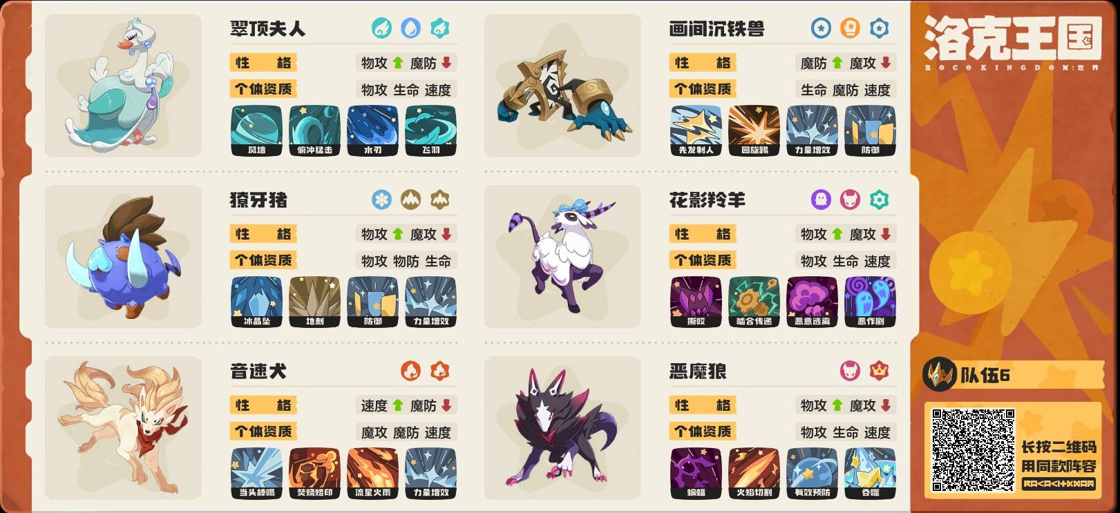 正文摘要:《洛克王國世界》核心主題 快速閱讀精華 🚀 實測勝率:本攻略陣容經實測可達 80% 大師段位勝率,適合衝分玩家直接抄作業💪 核心四天王: 天鵝:風系物攻輸出手,可輔助可主力沉鐵獸:強化隊剋星,先手製人+截拳雙管齊下火狗:高速物攻消印記,對草系機械繫特攻狼王:收割核心,蝙蝠+火切割+吞噬完整配招 🔑 搖擺位彈性:冰豬、羚羊可視環境替換為化蝶、首領花、海豹等強勢精靈⚡ 關鍵機制:掌握「增益傳遞」「先手打斷」「印記消除」三大核心戰術 本文章目錄.article-toc { border: 1px solid #ddd; padding: 15px; background: #f9f9f9; border-radius: 6px; margin: 20px 0; width: 95%;}.toc-title { /* --- 以下是合併進來的 H2 樣式 --- */ font-size: 1.25em; /* 125% */ border-left: 5px solid #2A98DA; border-radius: 2px; padding: 5px 0px 5px 10px; font-weight: bold; margin: 0 0 15px 0; /* 調整了 margin,只留下方 15px */ color: #333; line-height: 1.5; background-color: #f8f8f8; /* --- 樣式合併結束 --- */}.toc-list { list-style: none; padding-left: 0;}.toc-list li { margin: 8px 0;}.toc-list a { color: #2A98DA; text-decoration: none;}.toc-list a:hover { text-decoration: underline;}.back-to-top { display: block; margin-top: 10px; font-size: 0.9em; color: #666;} 核心陣容整理:四天王定位心得分享document.currentScript.previousElementSibling.href = location.href.split('#')[0] + '#core_team'; - 搖擺位精靈選擇與環境適配document.currentScript.previousElementSibling.href = location.href.split('#')[0] + '#swing_slots'; - 技能配招深度教學document.currentScript.previousElementSibling.href = location.href.split('#')[0] + '#skill_build'; - 替換方案與變陣思路document.currentScript.previousElementSibling.href = location.href.split('#')[0] + '#alt_options'; 常見問題Q&Adocument.currentScript.previousElementSibling.href = location.href.split('#')[0] + '#faq'; 核心陣容整理:四天王定位心得分享 《洛克王國世界》PVP 玩法需要玩家組合精靈隊伍並進行配招,我們實測後發現一套高勝率大師隊伍,能幫助還沒上大師的小洛克快速衝分。這套陣容包含版本熱門的四個精靈:天鵝、火狗、惡魔狼、沉鐵獸,加上兩個搖擺位豬豬和羚羊,靈活度極高。 👉 GM後台版 遊戲 推薦 ⬇️⬇️⬇️ 快速玩各種二次元動漫手遊app 1. 天鵝 — 雙面戰術核心 天鵝的特性可以將自身增益減益傳給下一隻入場的精靈,這意味著牠原本是輔助手定位。但我們反其道而行,讓牠攜帶風系高費物攻技能和水刃,轉型為強勢輸出手。 風牆技能為天鵝提供聯防應對功能,最後一個技能可選泡沫幻影或風隱。我們實測後推薦帶消增益的迅捷技能,有時有奇效;也可選先發壓對面血線,當對面差一絲血殺不掉時,先發的作用就體現出來了。 2. 沉鐵獸 — 強化隊剋星 這隻精靈不必多說,是強化隊最頭痛的父親級存在。左一手先發制人,右一手截拳或迴旋踢或冰爪,還能博弈一手強化自身猛猛錘對面,以及帶有效預防先發對面的先發,戰術價值無需多言。 3. 火狗 — 高速消印記專家 非常棒的高速物攻消印記精靈,換上後基本面對對面的草系、機械繫等剋制屬性精靈,對面一般只能換人不然根本扛不住。這時候就可以根據對面陣容,選擇要當頭、加 buff 或消印記,用了都說好。 4. 狼王 — 終結收割者 不必多說,蝙蝠、火切割、有效預防、吞噬,就照這個配技能。之後看情況放技能收割,或是打對面狀態再輪換出來收割,被動加的攻擊到後面多得簡直離譜。 搖擺位精靈選擇與環境適配 5. 冰豬 — 冰隊環境受益者 這隻精靈被限時冰隊抬了一手,出場率相較之前大幅提升。特性百分百提示你要帶地系技能,這裡帶的地刺真可說是地系最好用技能之一:應對+打斷只要三費,性價比無敵。 6. 羚羊 — 冷門黑馬 除了消能量隊以外,這隻精靈一般沒什麼人用,目前打到現在帶羚羊的就見過一次。機械血脈可以學嚙合,頂上頂的強化技能,基本一次嚙合速度就是全場最高。目前大熱的黑貓、巨獺、書魔自爆也都有抵抗,基本可以穩定換對面兩隻,而且剋制一手冰隊娃娃,真是高強度的精靈。 技能配招深度教學 天鵝:風系高費物攻 + 水刃 + 風牆 + 泡沫幻影/風隱/迅捷沉鐵獸:先發制人 + 截拳/迴旋踢/冰爪 + 強化技能 + 有效預防火狗:高速物攻技能為主,依對局選擇當頭、加 buff 或消印記狼王:蝙蝠 + 火切割 + 有效預防 + 吞噬(被動疊攻後期收割)冰豬:地刺(核心)+ 其他地系技能補充羚羊:嚙合(機械血脈必學)+ 對應剋制技能 替換方案與變陣思路 這個陣容的搖擺位可以根據個人理解與環境調整,我們推薦以下替換選項: 化蝶:幻系聯動核心,適合搭配星隕帕爾隊玩法(延伸閱讀:《洛克王國世界》星隕帕爾隊玩法心得)首領花:草系坦度擔當,反制水系陣容海豹:冰系補強,強化控場能力魷魚:幹擾型選擇,打亂對方節奏圓號魚:特殊戰術定位卡瓦重:重量級坦位,吸收傷害 陣容不唯一,有自己的理解,根據自己的習慣換自己喜歡的,有強度的精靈纔是最好的陣容。若想了解更多隊伍搭配思路,可參考我們的 各階段隊伍搭配攻略 與 風暴隊配置推薦。 新手玩家建議先閱讀 開荒陣容推薦 與 開服首日高效開荒攻略,打好基礎後再進入 PVP 競技場。對速度線有興趣的玩家,可參考 PVP 精靈速度線排行 掌握先手製勝關鍵。 以下廣告滑動後還有帖子內容var custom_call_MIR = function (params) {if ( params === null || params.hasAd === false ) {var divRowSide;for (let index = 0; index < ONEADs.length; index++) {if (ONEADs[index].pub.player_mode === "mobile-inread") 