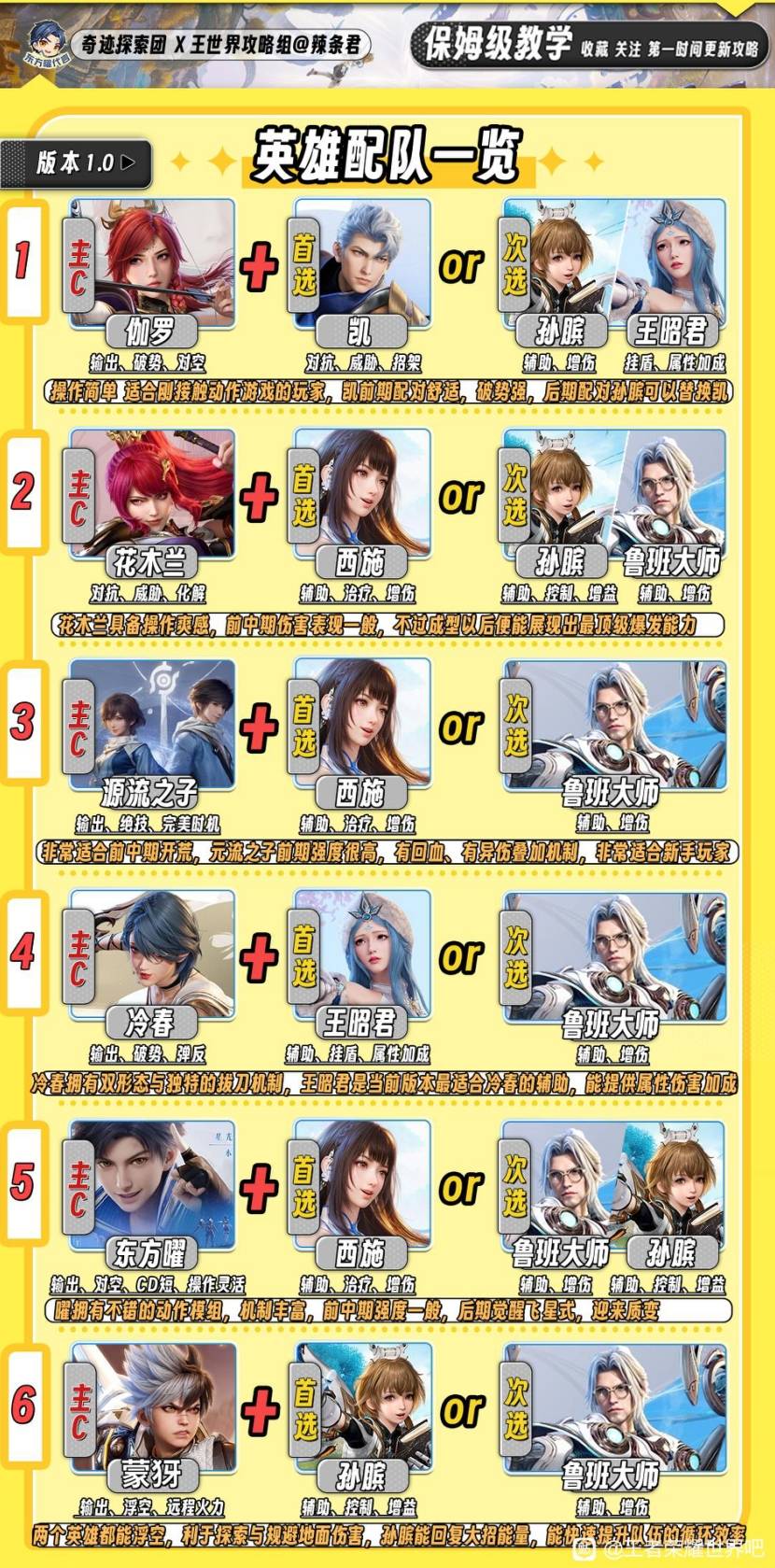 正文摘要:《王者榮耀世界》Ver.1.0 公測配隊攻略 快速閱讀精華 🚀 核心機制:雙人共鳴系統,戰鬥中可即時切換角色觸發連攜技能 前期(15級前):解鎖核心戰鬥機制,建立配隊基礎中期:持續解鎖機制補強,角色逐步成型後期:機制基本完善,後續僅提升數值倍率💪 新手首選T0組合: 凱+伽羅:破盾坦傷+遠程輸出,容錯率極高花木蘭+西施:高傷害近戰+聚怪增傷輔助🔑 配隊黃金法則:至少確保一名強攻角色維持輸出,對抗角色負責承傷控制,輔助角色提供增益與控場 .article-toc { border: 1px solid #ddd; padding: 15px; background: #f9f9f9; border-radius: 6px; margin: 20px 0; width: 90%;}.article-toc br { display: none;}.toc-title { /* --- 以下是合併進來的 H2 樣式 --- */ font-size: 1.25em; /* 125% */ border-left: 5px solid #2A98DA; border-radius: 2px; padding: 5px 0px 5px 10px; font-weight: bold; margin: 0 0 15px 0; /* 調整了 margin,只留下方 15px */ color: #333; line-height: 1.5; background-color: #f8f8f8; /* --- 樣式合併結束 --- */}.toc-list { list-style: none; padding-left: 0;}.toc-list li { margin: 8px 0;}.toc-list a { color: #2A98DA; text-decoration: none;}.toc-list a:hover { text-decoration: underline;}.back-to-top { display: block; margin-top: 10px; font-size: 0.9em; color: #666;}本文章目錄 PVE開荒實用配隊推薦document.currentScript.previousElementSibling.href = location.href.split('#')[0] + '#pve_team'; PVP競技強勢陣容分析document.currentScript.previousElementSibling.href = location.href.split('#')[0] + '#pvp_team'; 三大定位深度整理document.currentScript.previousElementSibling.href = location.href.split('#')[0] + '#position_guide'; 常見問題Q&Adocument.currentScript.previousElementSibling.href = location.href.split('#')[0] + '#faq'; PVE開荒實用配隊推薦|6套實戰陣容完整整理 我們實測後發現,《王者榮耀世界》的雙人共鳴系統是戰鬥核心——戰鬥中即時切換角色能觸發特殊連攜效果,這也是王者榮耀世界隊伍搭配的關鍵所在。以下是我們針對不同階段與操作習慣整理的6套實用陣容: 👉 GM後台版 遊戲 推薦 ⬇️⬇️⬇️ 快速玩各種二次元動漫手遊app 新手友好型:凱+伽羅(破盾遠程流) 凱(對抗):擁有嘲諷與格擋反制能力,專職吸收傷害、破除敵方護盾伽羅(強攻):長弓遠程輸出,BOSS靠近時可邊跑邊打,生存壓力極低適用場景:前期開荒、世界BOSS、高難副本初見操作難度:★☆☆☆☆ 手殘黨也能穩定輸出 進階輸出型:花木蘭+西施(聚怪爆發流) 花木蘭(對抗/強攻雙定位):雖歸類對抗,但傷害極高,實戰按強攻角色培養西施(輔助):聚怪控場+創造增傷區域,近戰角色的百搭輔助核心連攜:西施拉怪後花木蘭範圍斬擊,清場效率極佳適用場景:羣怪關卡、限時挑戰、材料副本速刷 遠程躺平流:王昭君+伽羅(雙弓安全輸出) 王昭君(輔助):給伽羅套盾,全程不貼臉戰鬥後期強化:搭配「旭日」輔助裝備,有護盾的伽羅額外獲得穿甲與增傷生存優勢:輸出與生存能力同時拉滿,最不容易暴斃的組合 爆發特化型:孫臏+伽羅(攻速增益流) 孫臏(輔助):時光回溯與攻速增益,大幅提升全隊爆發輸出伽羅(強攻):在孫臏增益下短時間內打出極限傷害適用場景:競速副本、BOSS弱點窗口期爆發 PVP競技強勢陣容分析|4V4與雙人模式適用 我們深入研究內測排行榜前100名的對戰數據後發現,王者榮耀世界PVP配隊並非單打獨鬥,而是三個人的化學反應——這裡的「三人」指的是你操控的雙人組合加上即時切換的戰術靈活性。 T0雙近戰高容錯隊:東方曜+凱+替補控場 核心邏輯:雙坦傷+多段位移,貼臉壓制遠程脆皮剋制對象:伽羅+后羿等雙射手陣容(直接控到死)注意事項:需防範西施+花木蘭的聚怪反打 控制鏈完美銜接:西施+任意近戰強攻 戰術價值:西施的聚怪創造輸出環境,配合高傷害角色秒殺關鍵目標排位優勢:在狹窄地形地圖勝率顯著提升 三大定位深度整理|搞懂角色才能配出最強隊 理解角色基礎定位是構建配隊的第一步,但真正的高效搭配,還需要深入洞察不同角色間的技能協同與屬性互補。 對抗(Tank/戰士) 核心能力:嘲諷、格擋反制、護盾破除戰場職責:承擔主要傷害、創造輸出空間、打斷敵方關鍵技能代表角色:凱(標準對抗)、花木蘭(對抗定位但強攻輸出) 強攻(DPS/輸出) 核心能力:高額傷害、屬性傷害、弱點打擊戰場職責:隊伍主要傷害來源,必須至少確保一名在隊代表角色:伽羅(遠程物理)、花木蘭(近戰混合) 輔助(Support) 核心能力:治療/護盾、增益效果、控場技能戰場職責:提升隊伍容錯率、創造戰術優勢代表角色:西施(聚怪增傷)、王昭君(護盾增益)、孫臏(攻速時光) 重要提醒:未上榜配隊並非不強,只是基於階段權衡後的取捨。我們建議玩家依照自身操作習慣與持有資源靈活搭配——適合自己的纔是最強陣容。 以下廣告滑動後還有帖子內容var custom_call_MIR = function (params) {if ( params === null || params.hasAd === false ) {var divRowSide;for (let index = 0; index < ONEADs.length; index++) {if (ONEADs[index].pub.player_mode === "mobile-inread") {divRowSide = ONEADs[index].pub.slotobj;}}var ins = document.createElement('ins');ins.className = 'clickforceads';ins.setAttribute('style', 'display:inline-block;');ins.setAttribute('data-ad-zone', '18264');divRowSide.appendChild(ins);var js = document.createElement('script');js.async = true;js.type = 'text/javascript';js.setAttribute('src', '//cdn.holmesmind.com/js/init.js');js.onload = function(){console.log('[ONEAD MIR] ClickForce Loaded');};divRowSide.appendChild(js);}};var _ONEAD = {};_ONEAD.pub = {};_ONEAD.pub.slotobj = document.getElementById("one