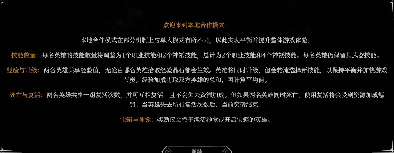 正文摘要:《巨人殺手:暗黑之潮》合作模式快速閱讀精華 🚀 核心變動:合作模式技能欄位縮減,普攻流強於技能流 單人:2個職業技能 + 3個神祗技能雙人:1個職業技能 + 2個神祗技能 💪 強勢角色:禁衛統領、血親殺手、返生之人、柯南🔑 關鍵機制:經驗共享同時升級、復活次數共用、寶箱僅給激活英雄⚔️ 推薦組合:返生之人+禁衛統領、柯南+血親殺手 .article-toc { border: 1px solid #ddd; padding: 15px; background: #f9f9f9; border-radius: 6px; margin: 20px 0; width: 90%;}.article-toc br { display: none;}.toc-title { /* --- 以下是合併進來的 H2 樣式 --- */ font-size: 1.25em; /* 125% */ border-left: 5px solid #2A98DA; border-radius: 2px; padding: 5px 0px 5px 10px; font-weight: bold; margin: 0 0 15px 0; /* 調整了 margin,只留下方 15px */ color: #333; line-height: 1.5; background-color: #f8f8f8; /* --- 樣式合併結束 --- */}.toc-list { list-style: none; padding-left: 0;}.toc-list li { margin: 8px 0;}.toc-list a { color: #2A98DA; text-decoration: none;}.toc-list a:hover { text-decoration: underline;}.back-to-top { display: block; margin-top: 10px; font-size: 0.9em; color: #666;}本文章目錄 合作模式機制整理document.currentScript.previousElementSibling.href = location.href.split('#')[0] + '#coop_mechanics'; 普攻流角色搭配推薦document.currentScript.previousElementSibling.href = location.href.split('#')[0] + '#character_builds'; 雙人組隊配置建議document.currentScript.previousElementSibling.href = location.href.split('#')[0] + '#team_combos'; 常見問題Q&Adocument.currentScript.previousElementSibling.href = location.href.split('#')[0] + '#faq'; 《巨人殺手:暗黑之潮》合作模式機制整理 我們實測後發現,《巨人殺手:暗黑之潮》的本地合作模式並非單純的「雙人同屏」,而是針對雙人體驗做了多項核心調整。想要順利通關,必須先理解這些機制變動。 技能欄位大幅縮減是最大差異。單人模式下每名英雄可攜帶2個職業技能與3個神祗技能,但合作模式調整為僅剩1個職業技能與2個神祗技能。這項改動直接影響了流派選擇——技能流在欄位受限的情況下難以發揮,普攻流因此成為更穩定的輸出手段。 👉 GM後台版 遊戲 推薦 ⬇️⬇️⬇️ 快速玩各種二次元動漫手遊app 神祗系統的雙人特性也值得注意。雖然技能欄位減少,但神祗數量仍維持三個,且兩名玩家的神祗選擇不會衝突,這意味著你們可以各自發展不同路線,互補戰鬥風格。 操作方面,雙人模式支援自由切換攻擊模式與瞄準模式。鍵盤玩家使用滑鼠右鍵與中鍵切換,手柄玩家則對應X鍵與Y鍵。這項設計讓走位與輸出的銜接更加流暢。 想深入瞭解十位神祗的完整技能與解鎖條件?我們整理了完整的神祗圖鑑攻略供你參考。 資源與生存機制同樣經過調整: 經驗值完全共享,兩人同時升級,技能選擇採輪流制復活次數為共享池,可互相救援,但同時死亡將觸發資源懲罰寶箱獎勵僅發放給當前激活的英雄,需留意分配 普攻流角色搭配與Build推薦 由於合作模式的技能欄位限制,我們建議優先選擇不依賴多技能聯動的普攻流角色。以下是我們實測後篩選出的強勢選擇: 禁衛統領是極為穩定的前排選項。高基礎攻擊力配合法球類被動技能,能在安全距離持續輸出。建議屬性優先堆疊攻速、暴擊率與攻擊傷害加成。 血親殺手同樣以普攻為核心,爆發能力出色。搭配適當的神祗技能後,清怪效率極高,適合擔任隊伍主力輸出。 返生之人具備優秀的續戰能力,被動機制讓容錯率大幅提升,是新手友好的選擇。 柯南則是相對特殊的案例。這名角色本身強度充足,對神祗技能的依賴度較低。我們推薦攜帶回血武器,搭配斯卡蒂神祗的「減少武器冷卻時間」效果,再配合自身原有的減CD天賦,即可形成幾乎無縫的輸出循環。 八大職業的完整技能樹與外觀皮膚解鎖方法,請參考我們的全職業圖鑑攻略。 通用配裝思路方面,合作模式的普攻流建議遵循以下優先級: 法球類被動技能(提供額外傷害來源)攻速屬性(提升整體輸出頻率)暴擊率與暴擊傷害(放大單次傷害)攻擊傷害加成(穩定提升基礎值)生存向屬性(根據關卡難度調整) 雙人組隊配置建議 根據上述角色特性,我們整理出兩組經過實戰驗證的搭配: 組合一:返生之人 + 禁衛統領 這是一組攻守兼備的經典配置。返生之人負責遊走輸出與容錯兜底,禁衛統領則穩定站場提供持續火力。兩者皆為普攻流,技能選擇壓力較小,適合初次挑戰合作模式的玩家。 組合二:柯南 + 血親殺手 雙輸出核心的暴力組合。柯南的自給自足特性讓他能獨立運作,血親殺手則專注於爆發清場。這組搭配對走位與節奏掌控要求較高,但通關效率也相對突出。 各區域試煉挑戰的解鎖條件與獎勵內容,可參考全地圖試煉與任務整理。 以下廣告滑動後還有帖子內容var custom_call_MIR = function (params) {if ( params === null || params.hasAd === false ) {var divRowSide;for (let index = 0; index < ONEADs.length; index++) {if (ONEADs[index].pub.player_mode === "mobile-inread") {divRowSide = ONEADs[index].pub.slotobj;}}var ins = document.createElement('ins');ins.className = 'clickforceads';ins.setAttribute('style', 'display:inline-block;');ins.setAttribute('data-ad-zone', '18264');divRowSide.appendChild(ins);var js = document.createElement('script');js.async = true;js.type = 'text/javascript';js.setAttribute('src', '//cdn.holmesmind.com/js/init.js');js.onload = function(){console.log('[ONEAD MIR] ClickForce Loaded');};divRowSide.appendChild(js);}};var _ONEAD = {};_ONEAD.pub = {};_ONEAD.pub.slotobj = document.getElementById("oneadMI