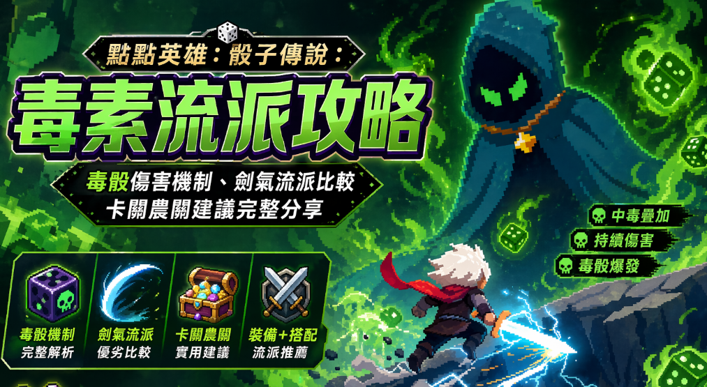 正文摘要:《點點英雄:骰子傳說》毒素流派 快速閱讀 剛解鎖毒素骰子卻覺得傷害變低了?先別急著放棄,毒素流派其實是這款遊戲裡爆發潛力最高的玩法之一,只是需要一點堆疊的耐心! ☠️ 毒素傷害特性:毒素與鎚子、大劍不同,越疊越強,單獨一個毒骰確實傷害普通,但多技能堆疊後可以秒殺Boss🎯 毒素流派核心技能: 橡果毒霧(Acorn Miasma):與「不進入出牌區」的骰子技能配合,每回合大量疊加毒層每次敵人行動觸發5層毒:範圍傷害首選,搭配橡果毒霧效果極佳 ⚔️ 毒素流建議:先以毒素為主力技能,搭配1-2個鎚子技能作為輔助保底輸出🎲 通用養成提醒:同一局內優先把主力技能升滿,換流派要趁早,不要湊一半再換💡 卡關策略:後期數值膨脹是這款遊戲的特色,卡關就回頭農前面的關卡累積資源 .article-toc { border: 1px solid #ddd; padding: 15px; background: #f9f9f9; border-radius: 6px; margin: 20px 0; width: 90%;}.article-toc br { display: none;}.toc-title { /* --- 以下是合併進來的 H2 樣式 --- */ font-size: 1.25em; /* 125% */ border-left: 5px solid #2A98DA; border-radius: 2px; padding: 5px 0px 5px 10px; font-weight: bold; margin: 0 0 15px 0; /* 調整了 margin,只留下方 15px */ color: #333; line-height: 1.5; background-color: #f8f8f8; /* --- 樣式合併結束 --- */}.toc-list { list-style: none; padding-left: 0;}.toc-list li { margin: 8px 0;}.toc-list a { color: #2A98DA; text-decoration: none;}.toc-list a:hover { text-decoration: underline;}.back-to-top { display: block; margin-top: 10px; font-size: 0.9em; color: #666;}本文章目錄遊戲簡介與玩法核心document.currentScript.previousElementSibling.href = location.href.split('#')[0] + '#intro'; 毒素骰子流派詳解document.currentScript.previousElementSibling.href = location.href.split('#')[0] + '#poison'; - 毒素技能搭配document.currentScript.previousElementSibling.href = location.href.split('#')[0] + '#poison_skill'; - 毒素流實戰心得document.currentScript.previousElementSibling.href = location.href.split('#')[0] + '#poison_tip'; 戰鬥機制與牌型傷害document.currentScript.previousElementSibling.href = location.href.split('#')[0] + '#battle'; 養成方向與推圖建議document.currentScript.previousElementSibling.href = location.href.split('#')[0] + '#build'; 常見問題Q&Adocument.currentScript.previousElementSibling.href = location.href.split('#')[0] + '#faq'; 遊戲簡介與玩法核心 《點點英雄:骰子傳說》(Dicero)出自《弓箭傳說》(Archero)同一廠商 HABBY,在介面與養成架構上有不少熟悉感。玩法核心是把「擲骰子的隨機性」和「撲克牌型的策略性」結合在一起——每回合透過擲出特定骰子組合來決定傷害輸出,牌型越大倍率越高。 👉 GM後台版 遊戲 推薦 ⬇️⬇️⬇️ 快速玩各種二次元動漫手遊app 乍看之下靠運氣,但搭配重骰機制、天賦選擇與技能流派之後,其實有相當深的策略空間。不同的技能路線(劍氣流、毒素流、鎚子流)玩起來體驗截然不同,這也是讓人上癮的原因。 毒素骰子流派詳解 很多剛解鎖毒素骰子的玩家第一反應都是「怎麼傷害變低了?」,這是正常現象。毒素和鎚子、大劍波這類直傷技能的邏輯不一樣——毒素的強度完全取決於技能堆疊層數,初期單獨用確實不划算,但一旦疊到位,打Boss的表現會讓你大吃一驚。 毒素技能搭配 底下整理了毒素流最值得優先選擇的核心技能組合: 技能名稱效果說明優先度橡果毒霧(Acorn Miasma)與「不進入出牌區」的骰子技能配合,每回合被動疊加大量毒層⭐⭐⭐ 最優先敵人行動觸發毒層技能每次敵人行動觸發5層毒,範圍傷害效果佳⭐⭐⭐ 最優先鎚子技能(1-2個)作為保底直傷輸出,毒素尚未疊滿時補足傷害缺口⭐⭐ 輔助用 【小知識】:橡果毒霧之所以強,是因為它能跟那些標示「不進入出牌區」的骰子技能形成連動——這些技能平時看起來沒什麼用,但搭配毒霧之後等於每回合都在被動積累毒層,不需要額外消耗出牌次數。 毒素流實戰心得 根據玩家社群的討論與實戰驗證,毒素流有幾個關鍵心得: 別在初期就判定毒素太弱:剛解鎖毒骰時一定會覺得傷害縮水,這是因為技能等級還低、堆疊數不夠。堅持疊到位之後,單Boss戰可以打出 5,000-6,000 以上的傷害。同一局優先把毒素技能疊深:毒素和大劍、鎚子不同,它是「越深越強」的類型,半吊子狀態反而最尷尬。如果這局隨機到好的毒素技能,就全力衝毒素路線。1-2個直傷技能當保險:不是每局都能抽到完美毒素技能,搭配1-2個鎚子或大劍波作為備選,避免遇到惡劣局面完全沒有輸出。無法跳過毒素選項:如果不想走毒素路線,目前遊戲機制內沒有「排除毒素技能」的設定,只能在出現時選擇其他選項跳過。這屬於 Roguelite 遊戲的隨機設計特性。 戰鬥機制與牌型傷害 不管走哪種流派,理解基本戰鬥框架都很重要。《點點英雄:骰子傳說》的傷害計算邏輯如下: 撲克牌型與倍率 一對:最基礎組合,傷害加成最低兩對:次級組合三條(三顆同點數):傷害明顯提升葫蘆(三條+一對):3.5倍傷害,進入爆發區間四條 / 五條:高倍率極限爆發順子(1-2-3-4-5):同屬高傷害牌型 每回合有 3次重骰機會,可以鎖定想保留的骰子只對剩餘的重擲。毒素流玩家特別需要注意:部分毒素技能與「不進入出牌區」的骰子互動,這些骰子不會影響你的牌型湊法,可以把它們當作被動附加效果來看待。 劍氣系統 除了毒素流,劍氣流是另一套爆發路線,適合喜歡瞬間高傷的玩家: 擲出 6點骰子可疊加劍氣湊出 葫蘆以上的大牌型也能積累劍氣裝備「劍誓」天賦後效