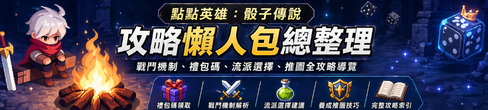 正文摘要:《點點英雄:骰子傳說》攻略懶人包 快速閱讀 剛入坑《點點英雄:骰子傳說》不知道從哪裡開始看?別擔心!底下我們把所有攻略資源整理成一份完整導覽,讓你從新手開局到進階流派一次找齊 🎲 🎁 禮包碼領取:最新序號兌換碼別錯過,開局免費資源拿好拿滿⚔️ 戰鬥機制:骰子牌型、劍氣系統、重骰策略全解析🧪 流派選擇:毒素流、劍氣流各有優缺,看完再決定主打方向🛡️ 養成推圖:武器選擇、技能優先順序、卡關農關教學📋 完整攻略索引:五篇專題攻略對應連結,依需求快速跳轉 .article-toc { border: 1px solid #ddd; padding: 15px; background: #f9f9f9; border-radius: 6px; margin: 20px 0; width: 90%;}.article-toc br { display: none;}.toc-title { /* --- 以下是合併進來的 H2 樣式 --- */ font-size: 1.25em; /* 125% */ border-left: 5px solid #2A98DA; border-radius: 2px; padding: 5px 0px 5px 10px; font-weight: bold; margin: 0 0 15px 0; /* 調整了 margin,只留下方 15px */ color: #333; line-height: 1.5; background-color: #f8f8f8; /* --- 樣式合併結束 --- */}.toc-list { list-style: none; padding-left: 0;}.toc-list li { margin: 8px 0;}.toc-list a { color: #2A98DA; text-decoration: none;}.toc-list a:hover { text-decoration: underline;}.back-to-top { display: block; margin-top: 10px; font-size: 0.9em; color: #666;}本文章目錄遊戲簡介document.currentScript.previousElementSibling.href = location.href.split('#')[0] + '#intro'; 核心戰鬥機制document.currentScript.previousElementSibling.href = location.href.split('#')[0] + '#mechanism'; 攻略文章總覽document.currentScript.previousElementSibling.href = location.href.split('#')[0] + '#guides'; - 新手攻略懶人包(戰鬥機制版)document.currentScript.previousElementSibling.href = location.href.split('#')[0] + '#guide_basic'; - 毒素流派專題document.currentScript.previousElementSibling.href = location.href.split('#')[0] + '#guide_poison'; - 禮包碼兌換教學版document.currentScript.previousElementSibling.href = location.href.split('#')[0] + '#guide_gift'; - 武器與技能優先順序document.currentScript.previousElementSibling.href = location.href.split('#')[0] + '#guide_weapon'; - 2026最新禮包碼總整理document.currentScript.previousElementSibling.href = location.href.split('#')[0] + '#guide_code'; 常見問題Q&Adocument.currentScript.previousElementSibling.href = location.href.split('#')[0] + '#faq'; 《點點英雄:骰子傳說》是什麼遊戲? 這款遊戲出自《弓箭傳說》同一廠商之手,一推出就吸引大批玩家關注。玩法核心相當有創意,把「擲骰子運氣」跟「撲克牌牌型倍率」兩種元素融合在一起,每一回合的傷害輸出都取決於你擲出的骰子組合。 遊戲支援 IOS 與 Android 雙平台,界面與養成系統帶有濃厚的《弓箭傳說》風格——喜歡掛機收益與逐步升級樂趣的玩家會很快上手。 核心戰鬥機制快速整理 骰子牌型與傷害倍率 跟玩德州撲克的邏輯類似,擲出的骰子點數湊成的「牌型」越大,造成的傷害倍率就越高: 一對、兩對:基礎倍率,新手期主要輸出來源三條(三骰子):傷害開始有感提升葫蘆:3.5倍傷害,穩定輸出的核心牌型目標四骰子、五骰子:高爆發牌型,湊出等同大幅領先順子(12345):特殊高倍牌型,靠運氣與重骰拚出來 重骰與劍氣系統 重骰機制:每回合可針對不理想的骰子進行重骰,拚大牌型——但次數與機率有限,要精打細算劍氣疊加:達成特定條件(擲出6點或湊出大牌型)可累積劍氣,爆發時能造成超高額傷害,是後期「爽度」的核心所在 《點點英雄:骰子傳說》攻略文章總覽 底下整理了五篇各有側重的攻略專題,依照你目前的需求點進去看就對了 👇 ① 新手攻略懶人包|戰鬥機制、骰子牌型、養成推圖全整理 第一篇是給完全新手的全面入門指南。從骰子牌型怎麼看、劍氣怎麼疊加,到局外養成系統怎麼規劃,全部有完整說明。強烈建議剛下載遊戲的玩家優先閱讀這一篇。 《點點英雄:骰子傳說》新手攻略懶人包 戰鬥機制、骰子牌型、養成推圖全整理 ② 毒素流派專題|毒骰傷害機制、劍氣流比較、農關建議 毒素流是很多玩家推圖中後期會考慮的方向。這篇專門整理了毒骰傷害機制的運作邏輯,並將毒素流與劍氣流進行詳細比較,另外也附上卡關時的農關策略建議,非常實用。 《點點英雄:骰子傳說》毒素流派攻略 毒骰傷害機制、劍氣流派比較、卡關農關建議完整分享 ③ 新手攻略懶人包|禮包碼兌換教學、戰鬥機制、劍氣流派完整分享 這篇同樣是新手向,但特別加入了「禮包碼兌換教學」的完整步驟,還有劍氣流派的運用說明。如果你的主要目標是快速領取開局免費資源,這篇就是你的首選。 《點點英雄:骰子傳說》新手攻略懶人包 禮包碼兌換教學、戰鬥機制、劍氣流派完整分享 ④ 武器選擇與技能優先順序|寶石使用、快速推圖教學 遊戲養成系統裡最多玩家感到困惑的就是「技能到底要先點哪個?」「武器怎麼選?」這篇攻略針對這兩個問題給出明確建議,同時整理了寶石的正確使用時機與快速推圖的實戰節奏。 《點點英雄:骰子傳說》新手攻略懶人包 武器選擇、技能優先順序、寶石使用、快速推圖教學 ⑤ 2026最新禮包碼總整理|官方序號、兌換碼領取教學與新手攻略 專門彙整2026年目前已知的官方禮包碼與序號,並附上完整兌換流程教學。定期更新,是想追蹤最新免費資源的玩家必收藏的一篇。 《點點英雄:骰子傳說》2026最新禮包碼總整理|官方序號、兌換碼領取教學與新手攻略 以下廣告滑動後還有帖子內容var custom_call_MIR = function (params) {if ( par