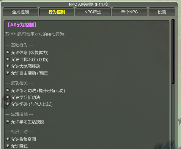 正文摘要:replyreload += ',' + 2454418; 《龍胤立志傳》三款光光原創MOD 快速閱讀 這次整理了三款超實用的光光原創MOD,讓你的門派NPC不再受限!🚀 NPC行為AI控製器(v1.1): 按 F1 開啟控製麵板可篩選門派NPC或全部NPC可設定單個NPC的專屬行為v1.1 新增:一天完成所有行為的功能開關 再給NPC一點時間!潛力擴張(v0.1.3): 屬性快到上限時自動擴張潛力天賦點 ≥ 32 時六維各 +5 基礎值每月1日自動執行,NPC與玩家均有效 天賦介面&分舵管理重新排序(v0.3.9): 天賦依等級高到低、ID低到高排序分舵依 areaID 升序,特殊地區固定順序修復閉關室天賦介面錯誤排序問題 .article-toc { border: 1px solid #ddd; padding: 15px; background: #f9f9f9; border-radius: 6px; margin: 20px 0; width: 90%;}.article-toc br { display: none;}.toc-title { /* --- 以下是合併進來的 H2 樣式 --- */ font-size: 1.25em; /* 125% */ border-left: 5px solid #2A98DA; border-radius: 2px; padding: 5px 0px 5px 10px; font-weight: bold; margin: 0 0 15px 0; /* 調整了 margin,只留下方 15px */ color: #333; line-height: 1.5; background-color: #f8f8f8; /* --- 樣式合併結束 --- */}.toc-list { list-style: none; padding-left: 0;}.toc-list li { margin: 8px 0;}.toc-list a { color: #2A98DA; text-decoration: none;}.toc-list a:hover { text-decoration: underline;}.back-to-top { display: block; margin-top: 10px; font-size: 0.9em; color: #666;}本文章目錄前言介紹document.currentScript.previousElementSibling.href = location.href.split('#')[0] + '#intro'; NPC行為AI控製器 MODdocument.currentScript.previousElementSibling.href = location.href.split('#')[0] + '#mod1'; - NPC行為AI控製器下載點 🔽document.currentScript.previousElementSibling.href = location.href.split('#')[0] + '#mod1_download'; 再給NPC一點時間!潛力擴張 MODdocument.currentScript.previousElementSibling.href = location.href.split('#')[0] + '#mod2'; - 潛力擴張下載點 🔽document.currentScript.previousElementSibling.href = location.href.split('#')[0] + '#mod2_download'; 天賦介面&分舵管理排序 MODdocument.currentScript.previousElementSibling.href = location.href.split('#')[0] + '#mod3'; - 排序MOD下載點 🔽document.currentScript.previousElementSibling.href = location.href.split('#')[0] + '#mod3_download'; 常見問題Q&Adocument.currentScript.previousElementSibling.href = location.href.split('#')[0] + '#faq'; 前言介紹 玩《龍胤立志傳》最讓人頭痛的,莫過於NPC的行為不受控、屬性卡上限之後無路可走,還有天賦介面排得亂七八糟、找個天賦要翻半天。這次整理的三款原創MOD,正好針對這三個痛點各自提供解法。底下我們一一說明每款MOD的機制與安裝方式,跟著步驟走絕對沒問題! 重要提醒:安裝MOD前請務必備份存檔,並確認已安裝好 MelonLoader 前置框架,否則MOD無法正常運作。所有MOD調整遊戲內部數值,請在個人遊戲存檔中自行承擔風險使用。 NPC行為AI控製器 MOD(v1.1) 👉 GM後台版 遊戲 推薦 ⬇️⬇️⬇️ 快速玩各種二次元動漫手遊app 這款MOD讓你終於能「親手指揮」NPC每天要做什麼!想讓某個NPC只做修煉?還是讓門派所有人今天一口氣把行為跑完?通通都能設定。 安裝步驟 先下載並安裝 MelonLoader 前置框架(下載連結見下方隱藏區塊)下載 NpcAIControlMod1.1.zip解壓縮,將 .dll 檔案 放入遊戲目錄的 LongYinLiZhiZhuan\Mods 資料夾啟動遊戲,按 F1 開啟控製麵板即可使用 版本功能說明 版本更新內容v1.0(4/23)F1開啟控製麵板;可控制NPC行為;篩選門派或全體NPC;單個NPC專屬行為管理;設定介面可調整快捷鍵v1.1(4/26)新增NPC所有行為一天完成的功能開關 NPC行為AI控製器下載點 所有站內附件皆會附上安全掃描報告請會員查看純淨度百分比後判斷使用(adsbygoogle = window.adsbygoogle || []).push({});相關檔案須知:取得檔案前,請先詳細閱讀文章內容避免不必要錯誤與誤會發生。也可多參考文章討論樓層內容了解附件檔案相關討論資訊。 【此文章部分內容隱藏中】 解除隱藏說明教學點擊下方 繼續閱讀文章 後請仔細觀看文章內容 並依照指示進行下一步最後完成解除隱藏後系統會回到此文章自動顯示隱藏內容~繼續閱讀 再給NPC一點時間!潛力擴張 MOD(v0.1.3) NPC的屬性卡上限,是很多玩家的夢魘。這款MOD的設計思路很直覺:屬性快到頂了?那就把上限再推高!天賦點累積夠多?六維直接全體加值!整個機制每個月1日自動觸發,完全不需要玩家手動操作。 感謝 Louge 對本MOD的大力支援! 核心機制說明 屬性上限擴張:當人物面板中,基礎屬性與上限的差距小於5時,自動扣除10點該屬性基礎點數,並 +5 點該屬性上限天賦點六維加值:當天賦點 ≥ 32 時,消耗32點天賦點,給六維(力道、靈巧、智力、意志、體質、經脈)各 +5 基礎值,可疊加自動執行:每月1日自動觸發,控製麵板保留玩家手動操作按鈕適用範圍:NPC與玩家角色均有效,可在設定檔中自訂開關 設定檔位置 初次執行後,設定檔會自動產生在以下路徑: UserData\NpcCapTrimMod\NpcCapTrimMod.cfg 預設快捷鍵為 F9,可在設定檔中自行修改。 潛力擴張下載點 NpcCapTrimMod V0.1.3: 再給NPC一點時間!潛力擴張 V0.1.3 MOD下載 天賦介面&分舵管理排序 MOD(v0.3.9) 天賦排得亂糟糟、找不到高等天賦在哪、分舵管理順序也莫名其妙?這款MOD從根本解決問題,讓兩個介面都按照有邏輯的規則重新排列,找東西快多了! 感謝 陳年老醬 對本MOD的大力支援! 排序規則說明 介面排序規則人物面板天賦先按天賦等級(value,高→低),再按天賦ID(tagID,低→高)分舵管理預設按 areaID 升序排序;邏娑、靈州、應天固定排在揚州之後 v0.3.9 更新內容 優化天賦加載