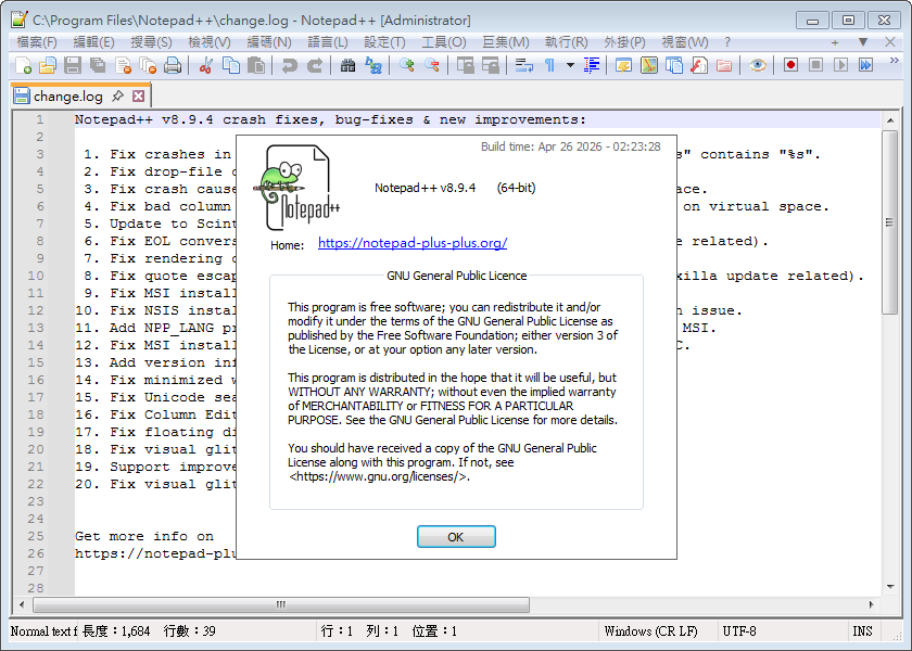 正文摘要:replyreload += ',' + 2454946;.article-toc { border: 1px solid #ddd; padding: 15px; background: #f9f9f9; border-radius: 6px; margin: 20px 0; width: 90%;}.article-toc br { display: none;}.toc-title { /* --- 以下是合併進來的 H2 樣式 --- */ font-size: 1.25em; /* 125% */ border-left: 5px solid #2A98DA; border-radius: 2px; padding: 5px 0px 5px 10px; font-weight: bold; margin: 0 0 15px 0; /* 調整了 margin,只留下方 15px */ color: #333; line-height: 1.5; background-color: #f8f8f8; /* --- 樣式合併結束 --- */}.toc-list { list-style: none; padding-left: 0;}.toc-list li { margin: 8px 0;}.toc-list a { color: #2A98DA; text-decoration: none;}.toc-list a:hover { text-decoration: underline;}.back-to-top { display: block; margin-top: 10px; font-size: 0.9em; color: #666;}本文章目錄 快速閱讀精華document.currentScript.previousElementSibling.href = location.href.split('#')[0] + '#quickview'; 軟體規格資訊document.currentScript.previousElementSibling.href = location.href.split('#')[0] + '#info'; 軟體截圖document.currentScript.previousElementSibling.href = location.href.split('#')[0] + '#screenshot'; 附件下載🔽document.currentScript.previousElementSibling.href = location.href.split('#')[0] + '#download'; 《Notepad++》核心主題 快速閱讀精華 🚀 輕巧高效,取代記事本首選: 由旅法遊戲人開發的開源免費軟體,C++ 打造效能超強! 支援多分頁、拖曳操作、多重視窗同步編輯,開發效率倍增。 內建語法高亮、程式碼摺疊、自動完成,寫程式更順手。 免安裝版隨身攜帶,即開即用超方便。 🔑 專業編輯功能一把抓: 支援 Regular Expression 搜尋取代,精準處理大量文字。 多種編碼格式轉換(ANSI、UTF-8、UCS-2),中文顯示不亂碼。 WYSIWYG 列印、書籤管理、自動偵測檔案變更。 完全免費,GPL 授權可安心使用。 軟體規格資訊 【語 言】:多語繁中 【軟體名稱】:Notepad++ 【版本資訊】:v8.9.4 【軟體大小】:5.73MB 【更新日期】:2025年1月 【使用權限】:免費開源(GPL 授權) 【系統支持】:Windows 【軟體介紹】: Notepad++ 是一款由旅法遊戲人創作的免費、輕巧且高效能文字編輯軟體,採用 C++ 語言設計並以 GPL 授權發行,完美取代微軟記事本。這款開放原始碼工具利用 win32 API 與 STL 架構,搭配功能強大的 Scintilla 編輯模組,不僅支援多分頁、拖曳操作、多重視窗同步編輯以及內部視窗自由移動,更具備中文搜尋取代、指定副檔名的目錄字串搜尋、WYSIWYG 列印、多國語言介面(中、日、韓、阿拉伯與希伯來文等)、以及書籤、放大縮小、自動偵測檔案狀態等貼心功能。除此之外,Notepad++ 還提供語法高亮與摺疊、用戶自定義程式語言(包含註解關鍵字與運算符號設定)、字詞自動完成功能、Regular Expression 搜尋取代,以及高亮度括號與縮排輔助,並支援多種編碼格式(如 ANSI、UTF-8 無 BOM 與 UCS-2)轉換,是開發者與一般使用者不可或缺的原始碼編輯好幫手。 【軟體截圖】: 👉 GM後台版 遊戲 推薦 ⬇️⬇️⬇️ 快速玩各種二次元動漫手遊app 【附件下載】: 所有站內附件皆會附上安全掃描報告請會員查看純淨度百分比後判斷使用(adsbygoogle = window.adsbygoogle || []).push({});相關檔案須知:取得檔案前,請先詳細閱讀文章內容避免不必要錯誤與誤會發生。也可多參考文章討論樓層內容了解附件檔案相關討論資訊。 【此文章部分內容隱藏中】 解除隱藏說明教學點擊下方 繼續閱讀文章 後請仔細觀看文章內容 並依照指示進行下一步最後完成解除隱藏後系統會回到此文章自動顯示隱藏內容~繼續閱讀 replyreload += ',' + 2454946; |