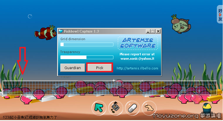 Fishbowl capture(英文) 自動撿寶程式(中英版請自行調) 自動撿寶程式 打開程式後,把自己要撿的寶物框起來. 點選pick. 他會自動幫你撿,但撿的