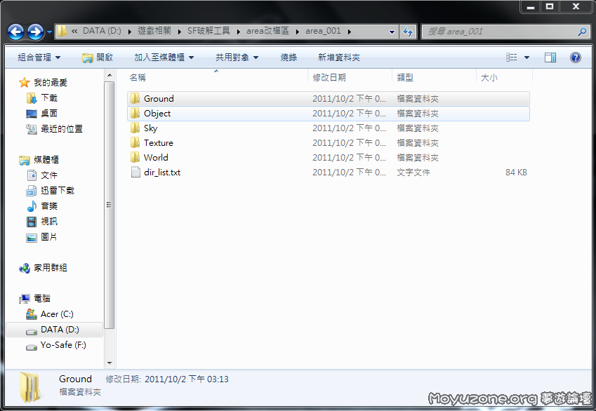 本帖最後由 zzz789789 於 2011-10-2 16:41 編輯 我把SF的area001檔解開後 裡面的osf檔可用記事本開啟 [Version] : X [Mapping Source Count] : X [Object Data Name] :
