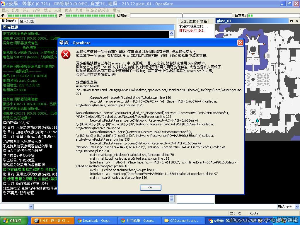 为什么我的openkore出现assertion failed?各位大大可以帮帮忙吗?