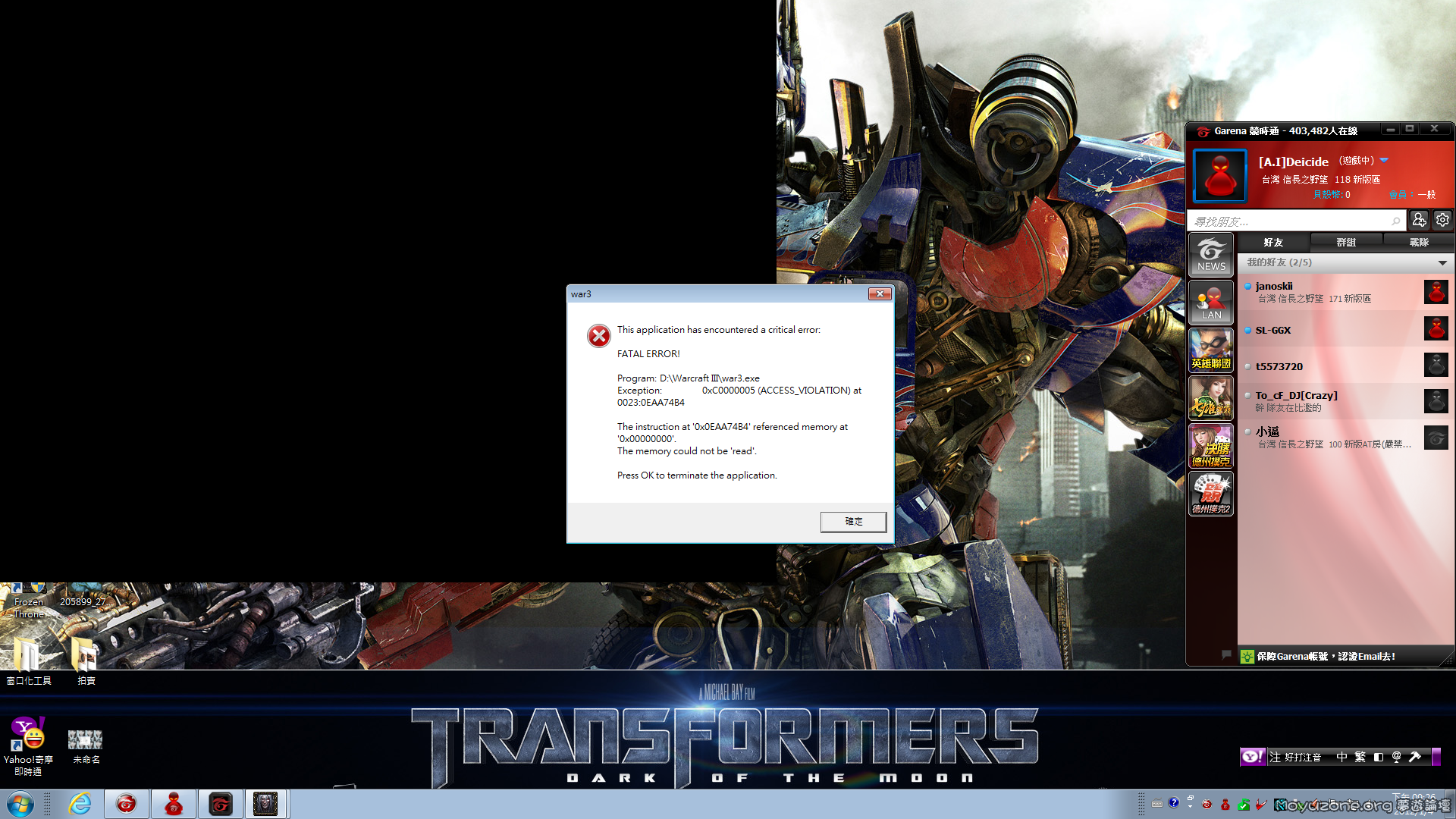 友人知道這是哪出錯嗎? 友戲都能正常玩一點啟動開圖就當機了