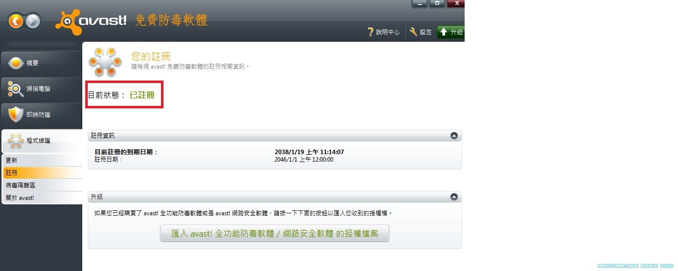 本帖最後由 小綜 於 2010-9-28 05:44 編輯 軟體名稱: avast! antivirus 免費防毒軟體 軟體版本: 5.0.677 軟體語言: 繁體中文(提供多種語言版本) 軟體性質: 免費軟體(非商業使用) 檔案大小: 40.5MB