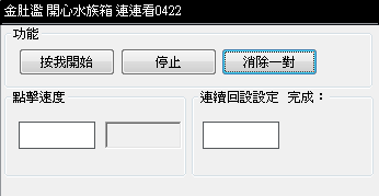 replyreload += ',' + 1290125; 本帖最後由 leokinging 於 2012-4-22 18:33 編輯 開心水族箱 自動連連看0422 可設定連續回合。 F3 = 開始 F4 = 停止鍵 所有站內附件皆會附上安全掃描報告請會
