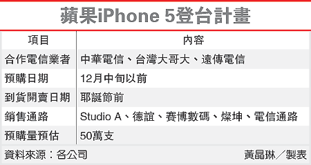 歐美感恩節買氣正旺,蘋果近期優先供應歐美對IPHONE 5的需求,台灣要到12月中旬才會展開預購,12月中下旬、耶誕節前登台開賣。 通路商表示,台灣市場對於iPhone 5有高度期待,搭配電信高資費方案,可望0元購機,預