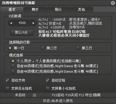 《輔助名稱》 勁舞團輔助-勁舞噴嚏 《更新內容》 V1202 1、增強穩定性 2、完善ALT斷P 3、支持後台遊戲 4、支持最小化遊戲 5、修復若干小BUG,提升效率! 新推出,歡迎下載試用 《勁舞噴嚏操作介紹》 如果沒註冊